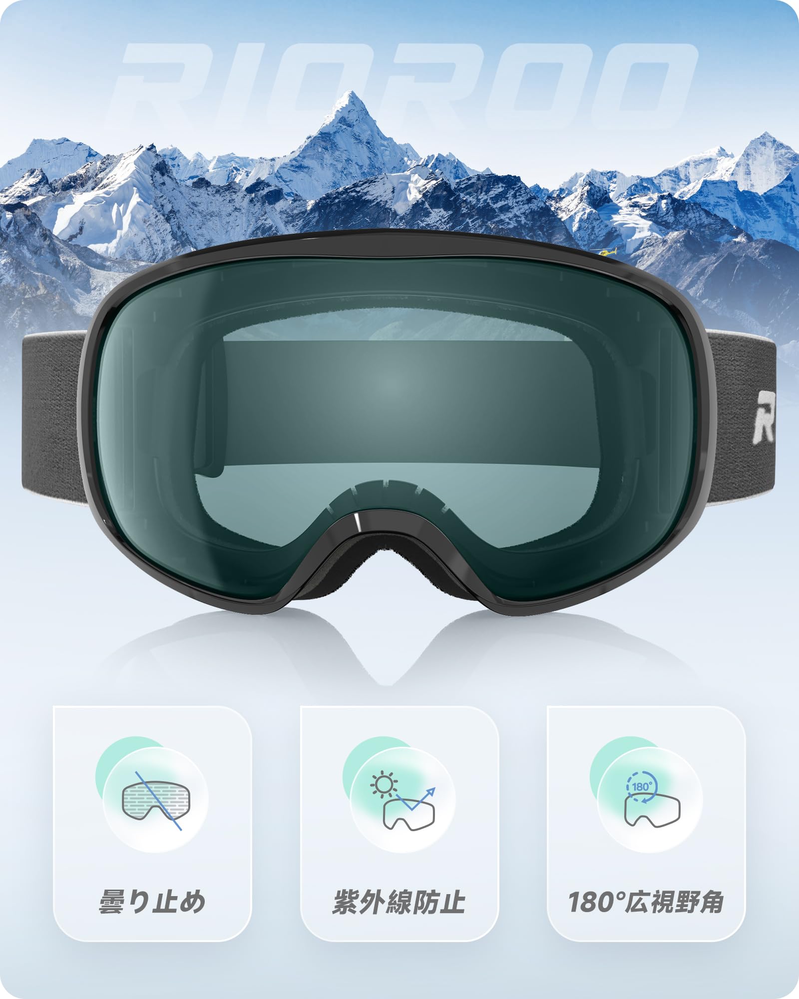 [RIOROO] スキーゴーグル スノボ ゴーグル OTGメガネ対応 レディース メンズ スノーボード ゴーグル 広視野 球面レンズ UV400保護 曇り止め 紫外線防止 防風/防雪 柔軟 耐衝撃 ヘルメット対応 晴れ/曇り/全天候対応 ジュニア 大人男女兼用