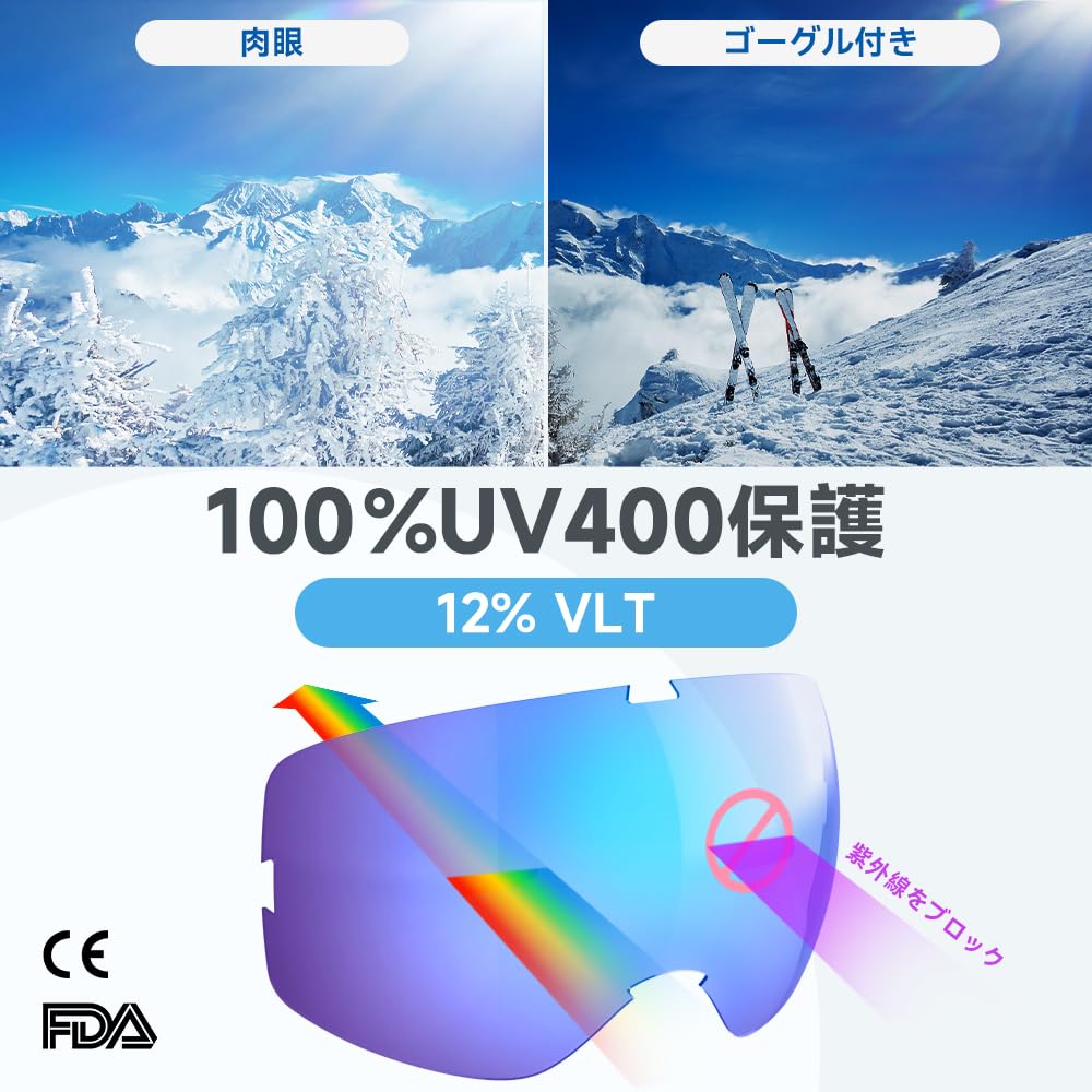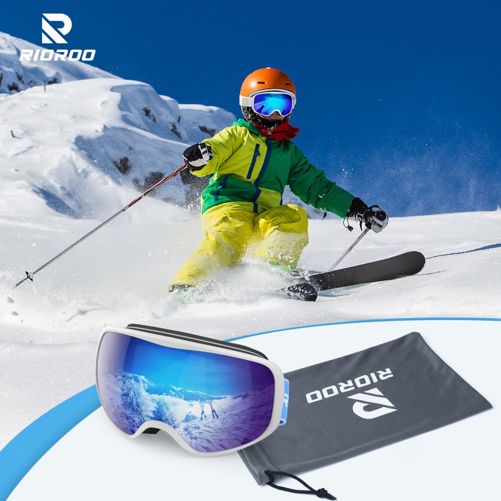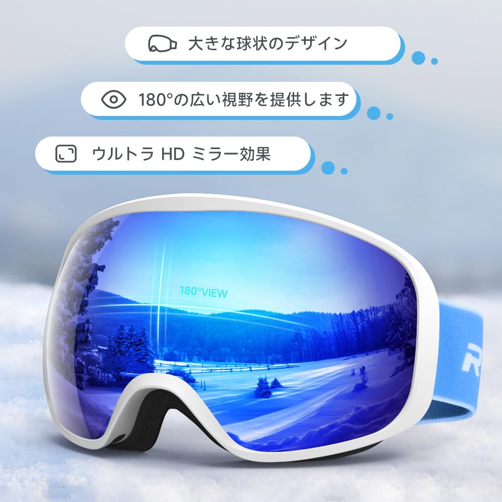 [RIOROO] スキーゴーグル スノボ ゴーグル OTGメガネ対応 レディース メンズ スノーボード ゴーグル 広視野 球面レンズ UV400保護 曇り止め 紫外線防止 防風/防雪 柔軟 耐衝撃 ヘルメット対応 晴れ/曇り/全天候対応 ジュニア 大人男女兼用