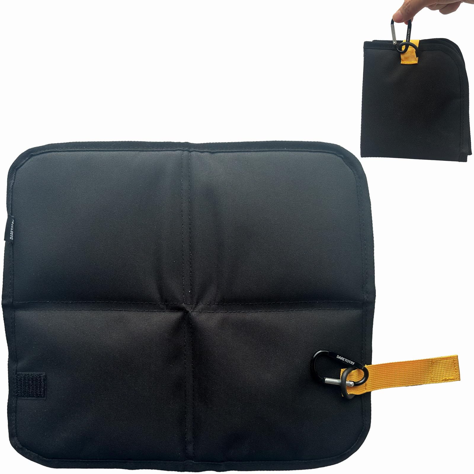 DARETOTRY【薄型・コンパクト設計】折りたたみ クッション カラビナ付き ポータブル 防水 防湿 熱/冷気遮断 アウトドア 屋外 野球観戦 運動会 登山 旅行 レジャー スポーツ観戦 スタジアム キャンプ 公園 花見 釣り用