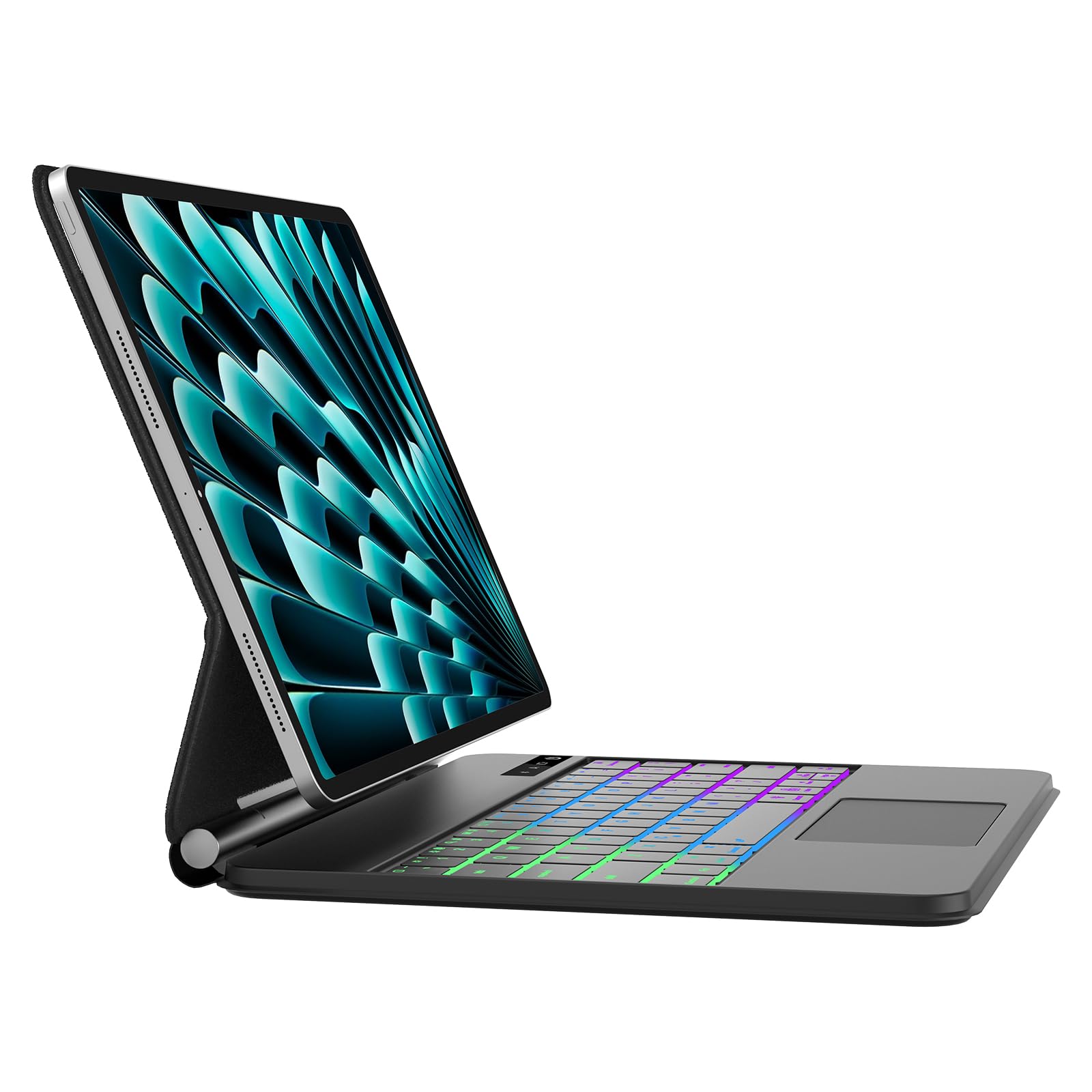 BORIYUAN iPad Air 13インチ (M3 M2) / iPad Pro 12.9インチ (第6/5/4/3世代) 兼用 キーボード ケース 磁気吸着 マジック キーボード フローティングデザイン 七色バックライト 英語配列 トラックパッド搭載