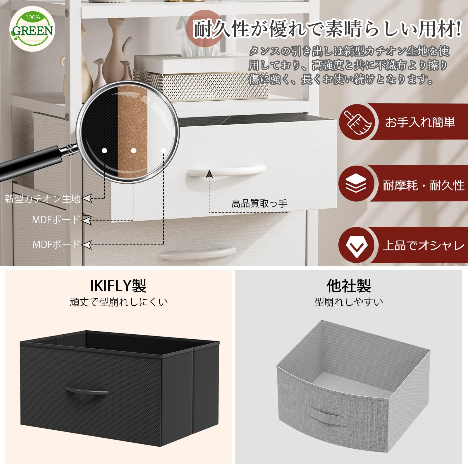 IKIFLY 収納 チェスト タンス 布製 洋服収納 箪笥 引き出し 衣裝ケース オシャレ たんす 洋服収納 リビング収納 寝室 木製天板 転倒防止 一人暮らし北欧風 3段6杯【幅88.5×奥行30×高さ76.3cm】 (ホワイト)