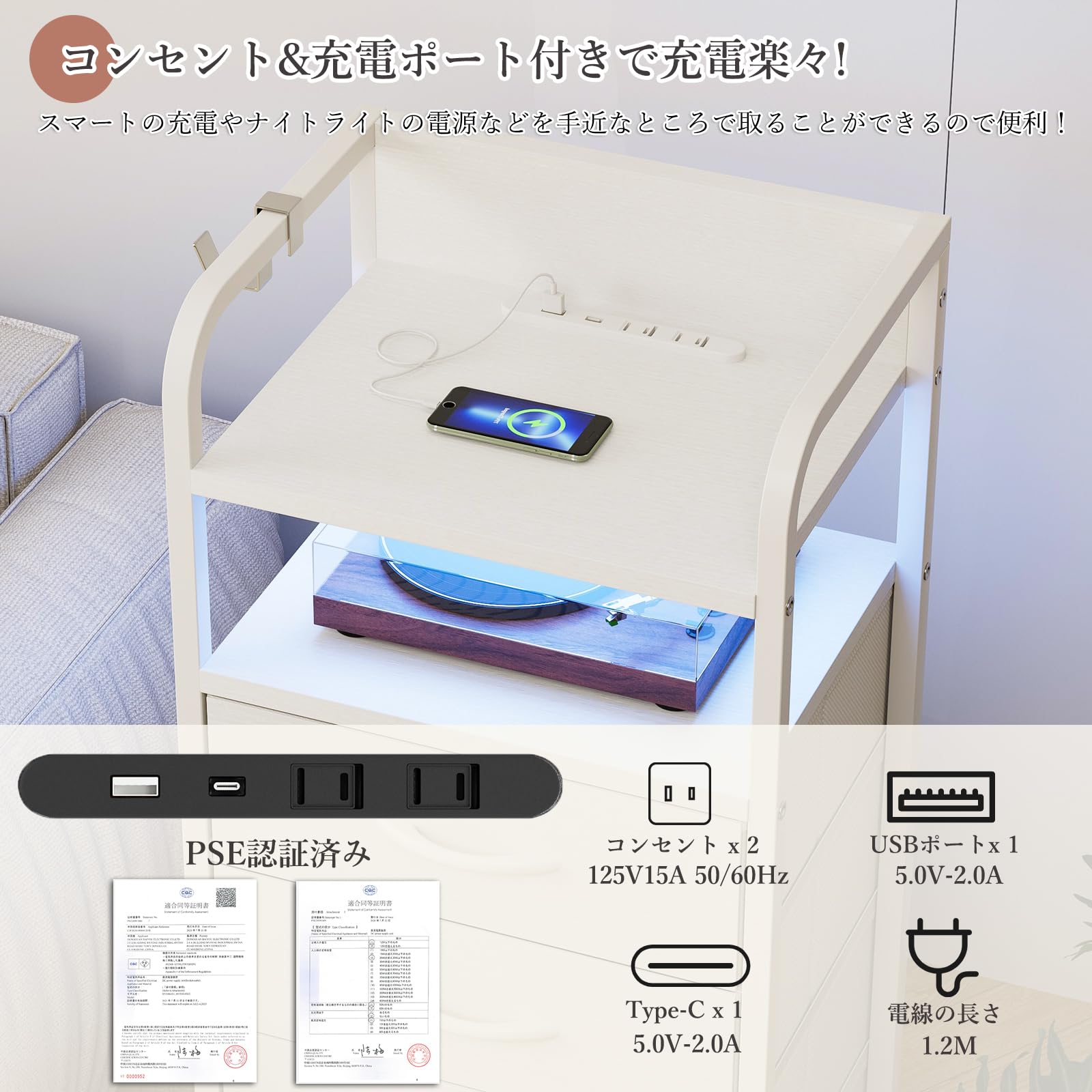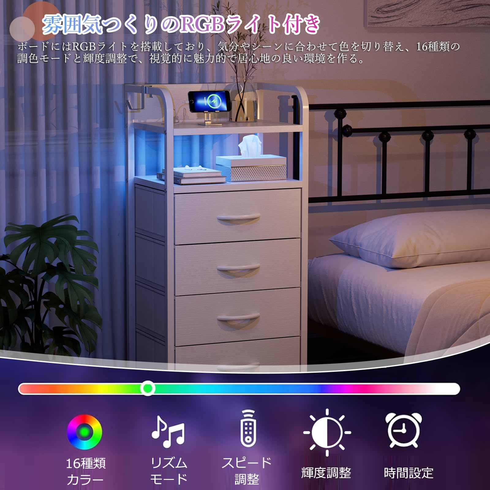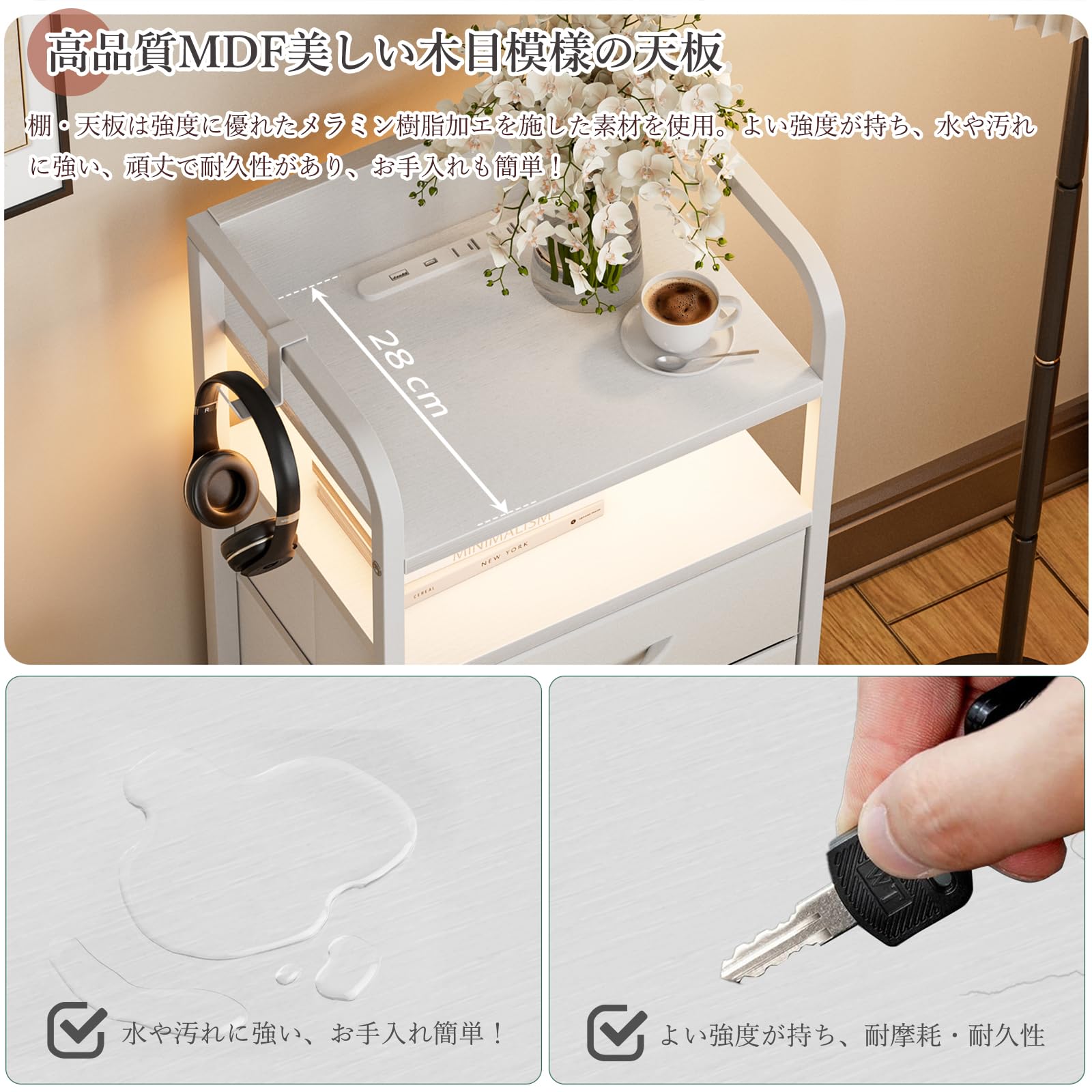 IKIFLY チェスト 棚付きタンス 収納チェスト LEDライト付き 引き出し 洋服収納 箪笥リビング収納 布製引き出し 寝室収納ケース USBポート 衣類収納 軽量 コンパクト 省スペース 薄型 スリム 転倒防止 組み立て簡単 2段階棚【幅40×奥行30×高さ83.5cm】ホワイト
