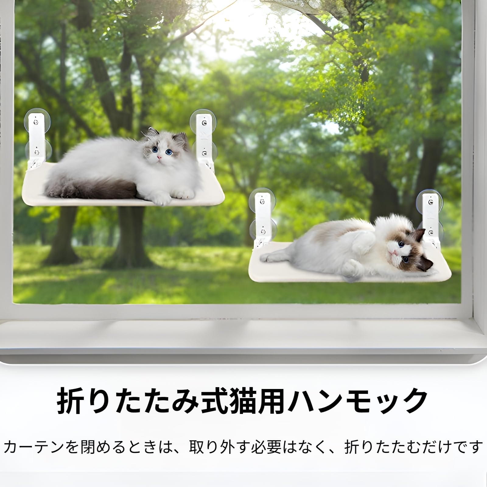 maodurful 猫 ハンモック 窓 猫 ベッド 吸盤式 強力な吸盤 窓掛け 窓際マット 折りたたみ 窓ハンモック 取り付け簡単 四季兼用 耐荷重15kg 日光浴 ネコ用 猫 キャット ねこ 室内用 睡眠 運動 休憩 吸盤式 ペットベッド (ベージュ, 大)