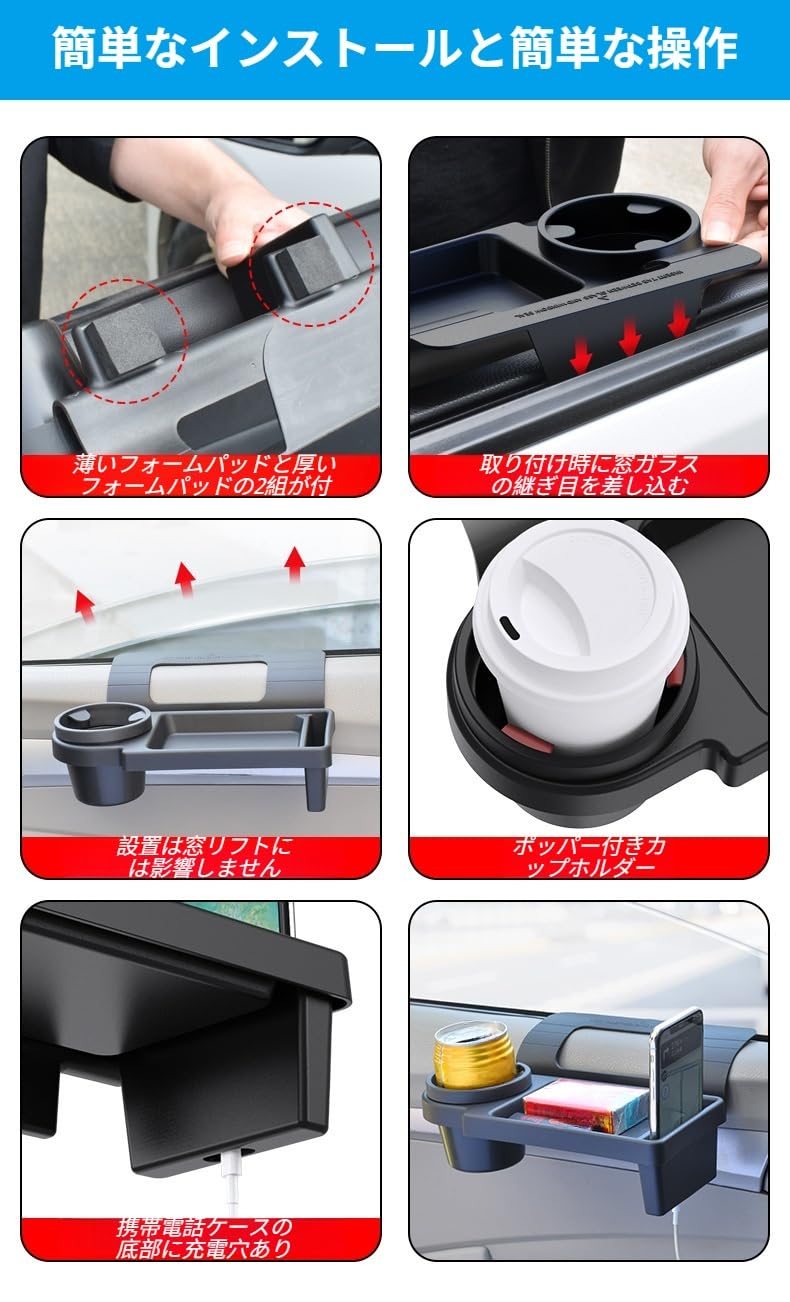 ■革命的な車内空間整理術■運転中のスマホ操作・飲み物管理・小物収納を一元化する画期的なソリューション。ABS樹脂製の軽量ボディ(重量僅か280g)が、ドアパネルに負担をかけず快適な収納空間を創造します。特殊3点支持クリップが窓枠にしっかりフィットし、高速走行時でも振動ゼロを実現。■設置の簡単さに驚愕■面倒な工具や接着剤不要!3ステップで完了する設置プロセス:1. クリップを窓ガラスにセット2. ロックレバーを押し下げ3. 収納ボックスをスライドさせるたったこれだけで、プロドライバー級の整理整頓空間が完成。レンタカーやカーシェアリング利用時でも痕跡を残さず撤去可能です。■安心の耐久性能■-40℃〜80℃の温度変化テストをクリアした工業用ABS樹脂を採用凹凸路面を想定した振動テスト(連続24時間)を実施紫外線劣化防止コーティングで色褪せ防止角部に衝撃吸収パッドを配置した4点防護システム■デザイン性と実用性の融合■滑らかな曲面デザインが車内のモダンな雰囲気を演出。光沢表面は指紋が目立ちにくく、アルコール除菌シートで簡単メンテナンス可能。暗所でも収納物が見やすい反射ステッカー付属。ドリンクホルダー部には転倒防止用の凹凸パターンを施しています。■多様な使用シーン例■・通勤時のコーヒー&スマホ整理・ドライブ中の子供のおもちゃ収納・営業車両の書類管理・キャンプ時の小物整理・雪道走行時の防災グッズ保管季節を問わず活用できる機能性は、年間を通して高い需要が見込まれます。年末年始の帰省ラッシュやゴールデンウィークの長距離ドライブ前に備えたい必須アイテムです。