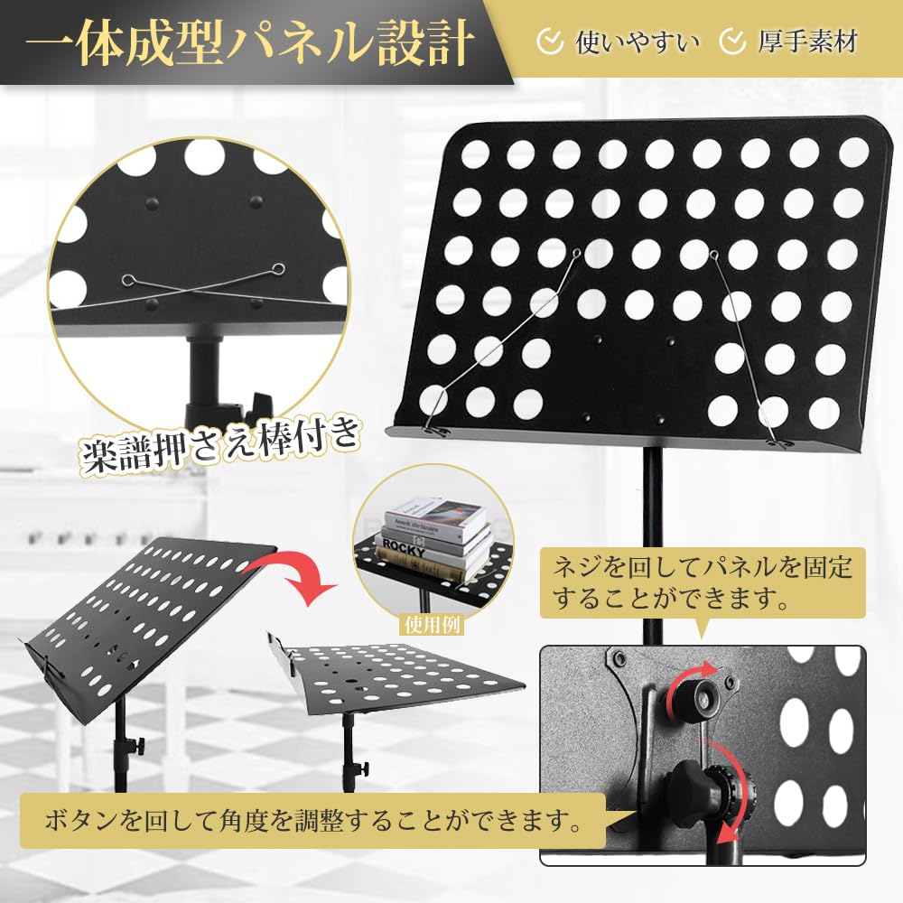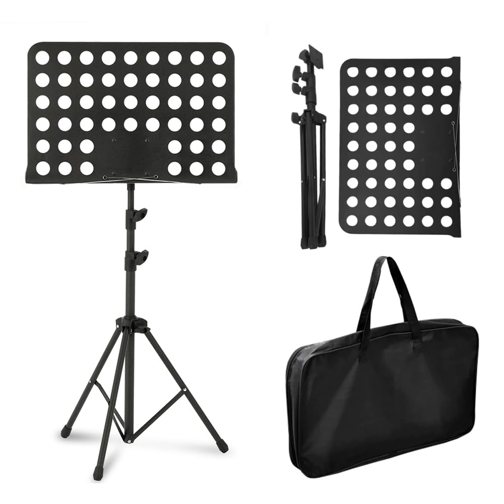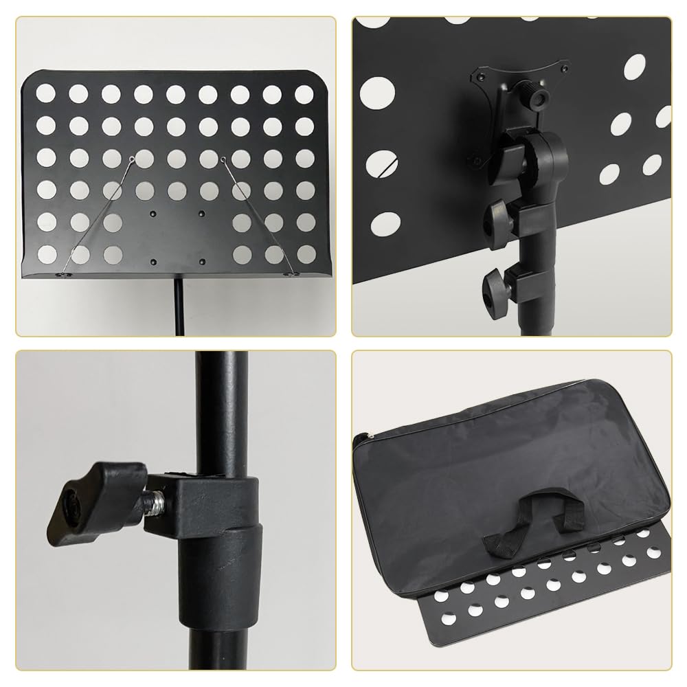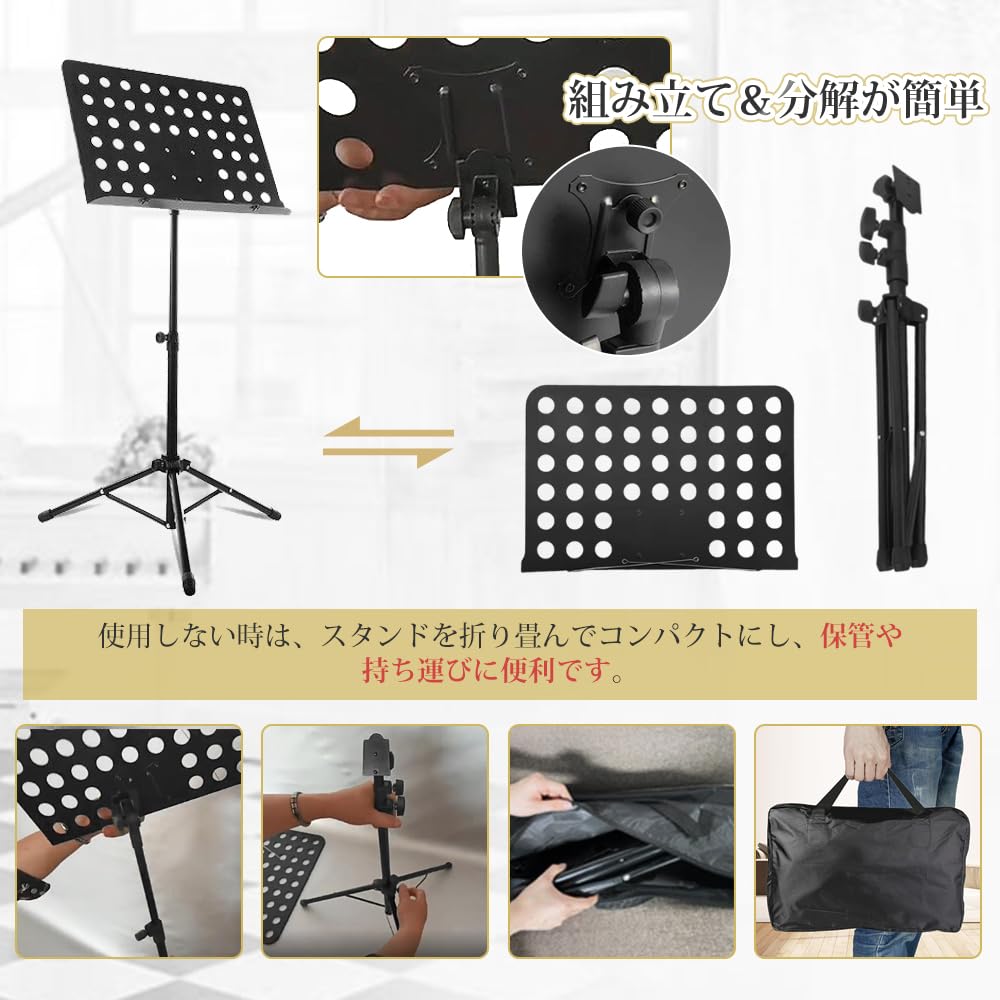 New Bee 譜面台 折りたたみ 楽譜スタンド 高さ70~135cm 調節可能 デスクトップスタンド 楽譜クリップと収納袋付 黒 MS21