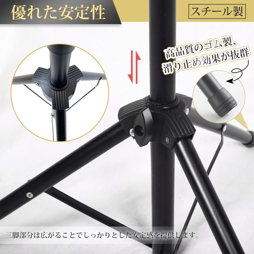 譜面台 折り畳み 楽譜立て 折畳み 軽量 黒 金属製 三脚 調整可能な譜面台 クランプ アー 楽譜クリップ付き 楽譜スタンド 折りたたみ 高さ50~150cm 調節可能 読書台 卓上 メニュースタンド 屋外 子供 大人用