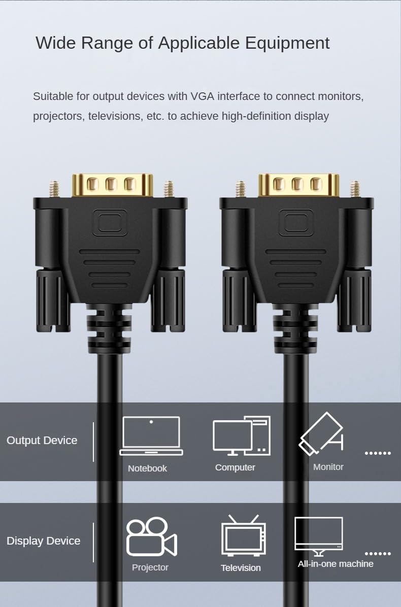 Pidwaok HD VGA (3+6) オス-オス 高解像度15ピン ビデオ接続ケーブル PC、プロジェクター、モニター、テレビ用(1メートル)