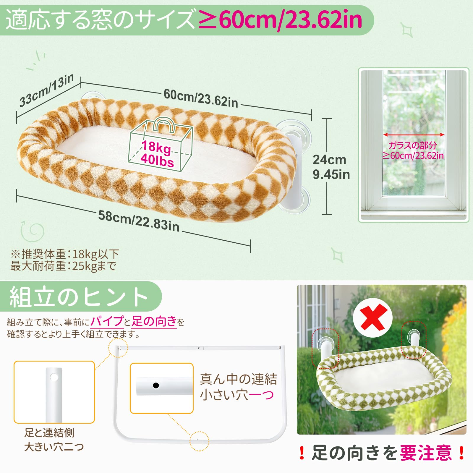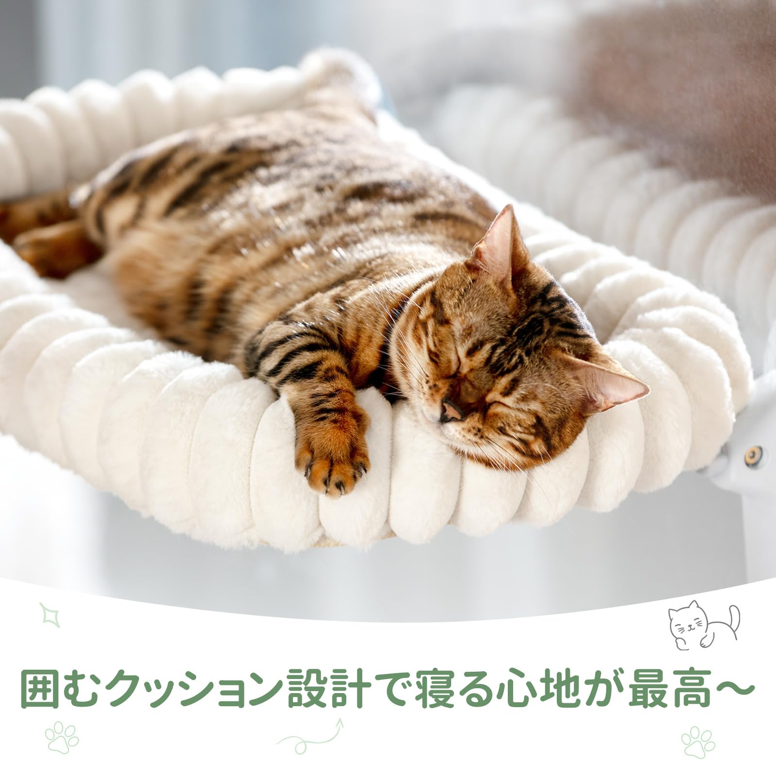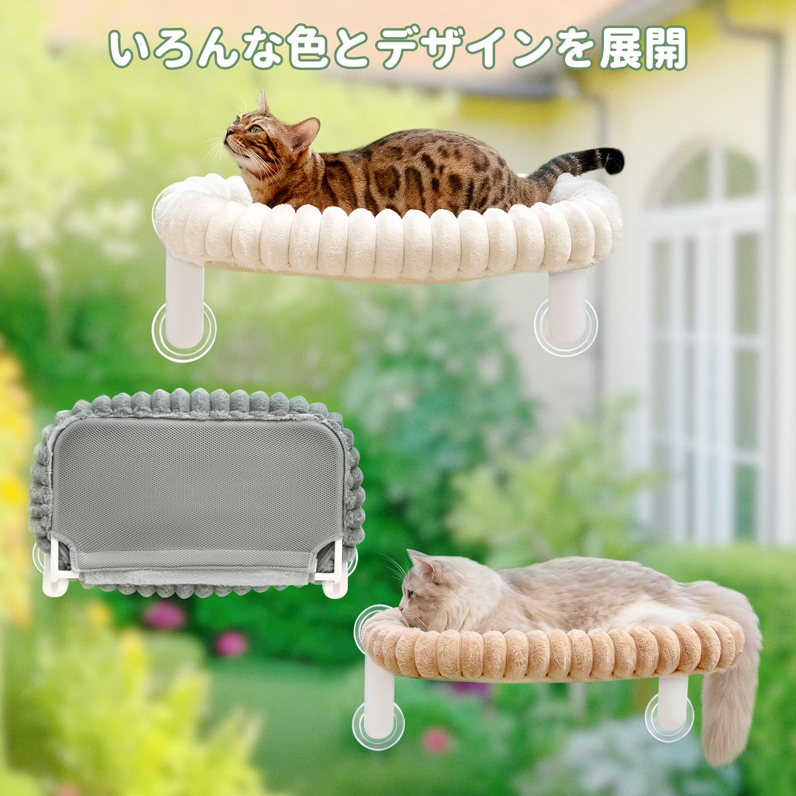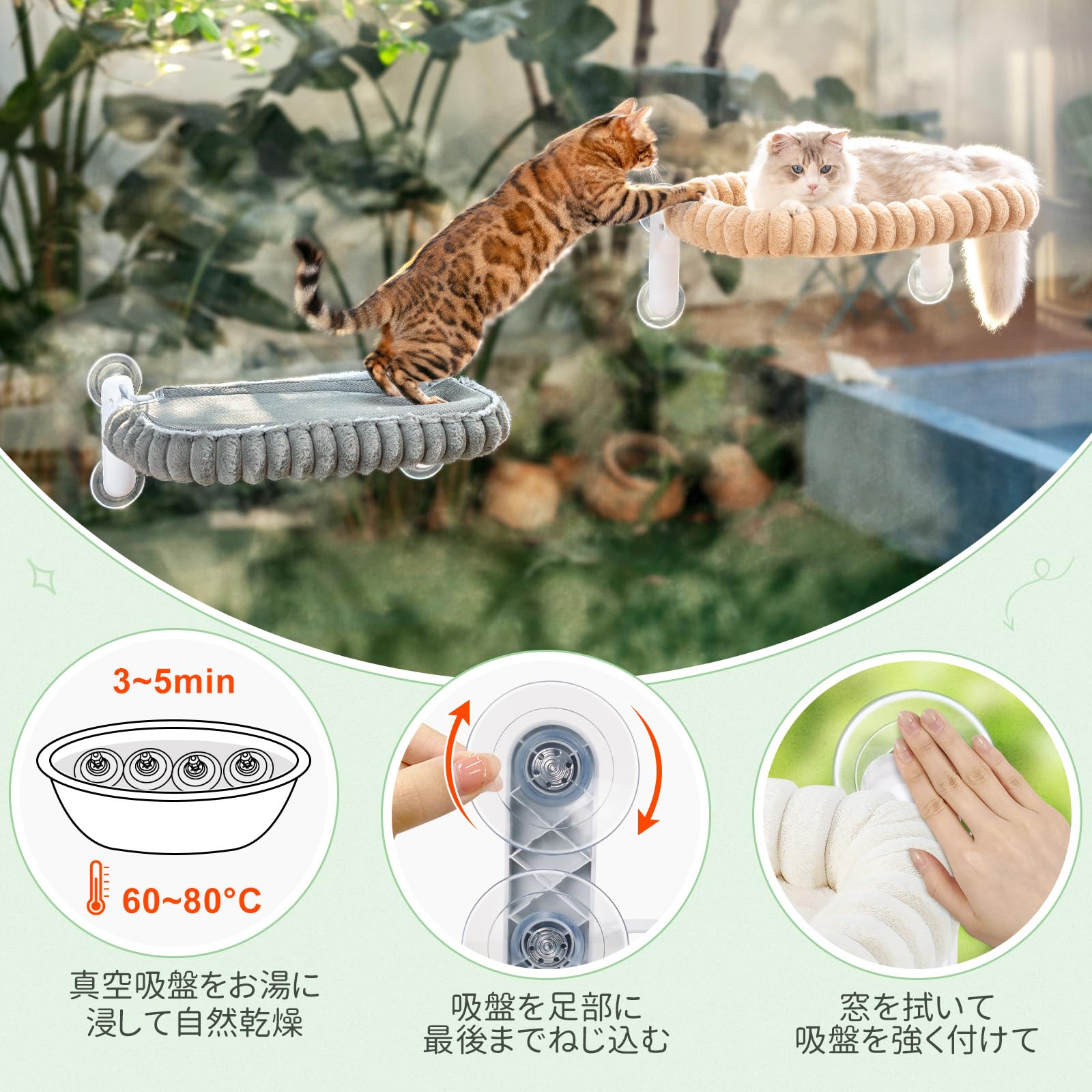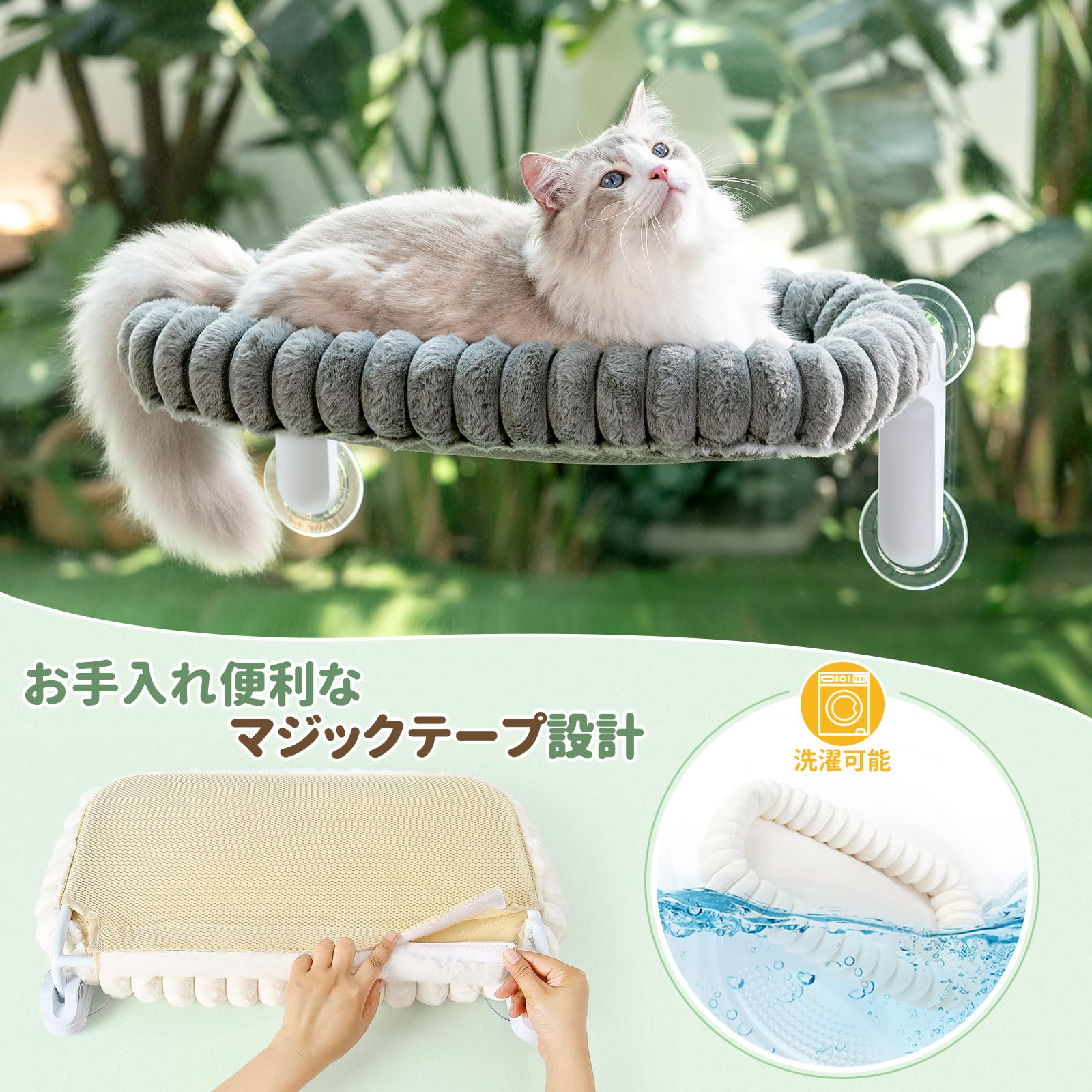 猫窓ハンモック ネコ用ハンモック ペットベッド【吸盤式・耐荷重20kg・サイズ30×52cm・折畳み式】省スペース 猫用品 窓用猫ベッド ストレス解消 四季通用 取付簡単 マットレス洗濯可 安定性が高い 日光浴 睡眠 遊び場 休憩 日本語説明書付 日本語対応スタッフ