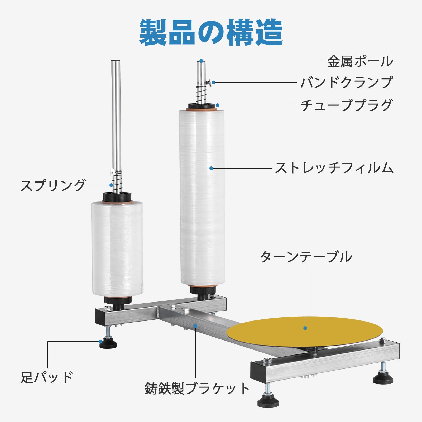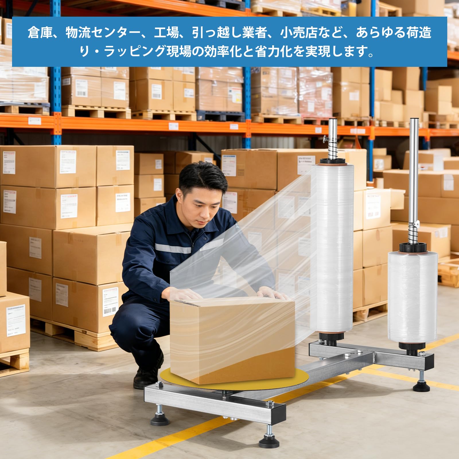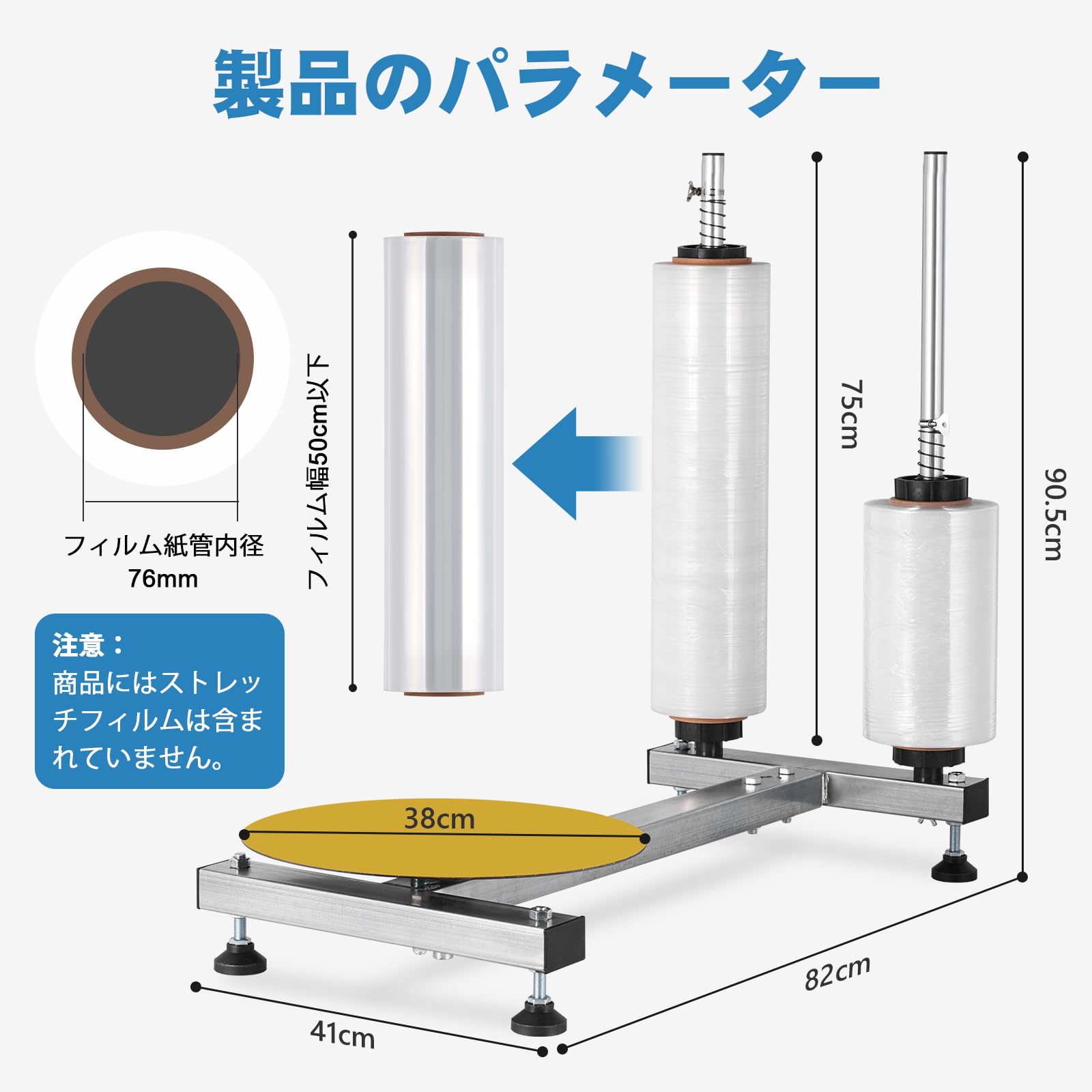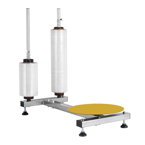 MXBAOHENG ストレッチフィルムホルダー 手動 幅50cmまで対応 ストレッチフィルム包装機 デュアルポール 回転台付き ストレッチフィルムディスペンサー 荷造り 引っ越し 業務用