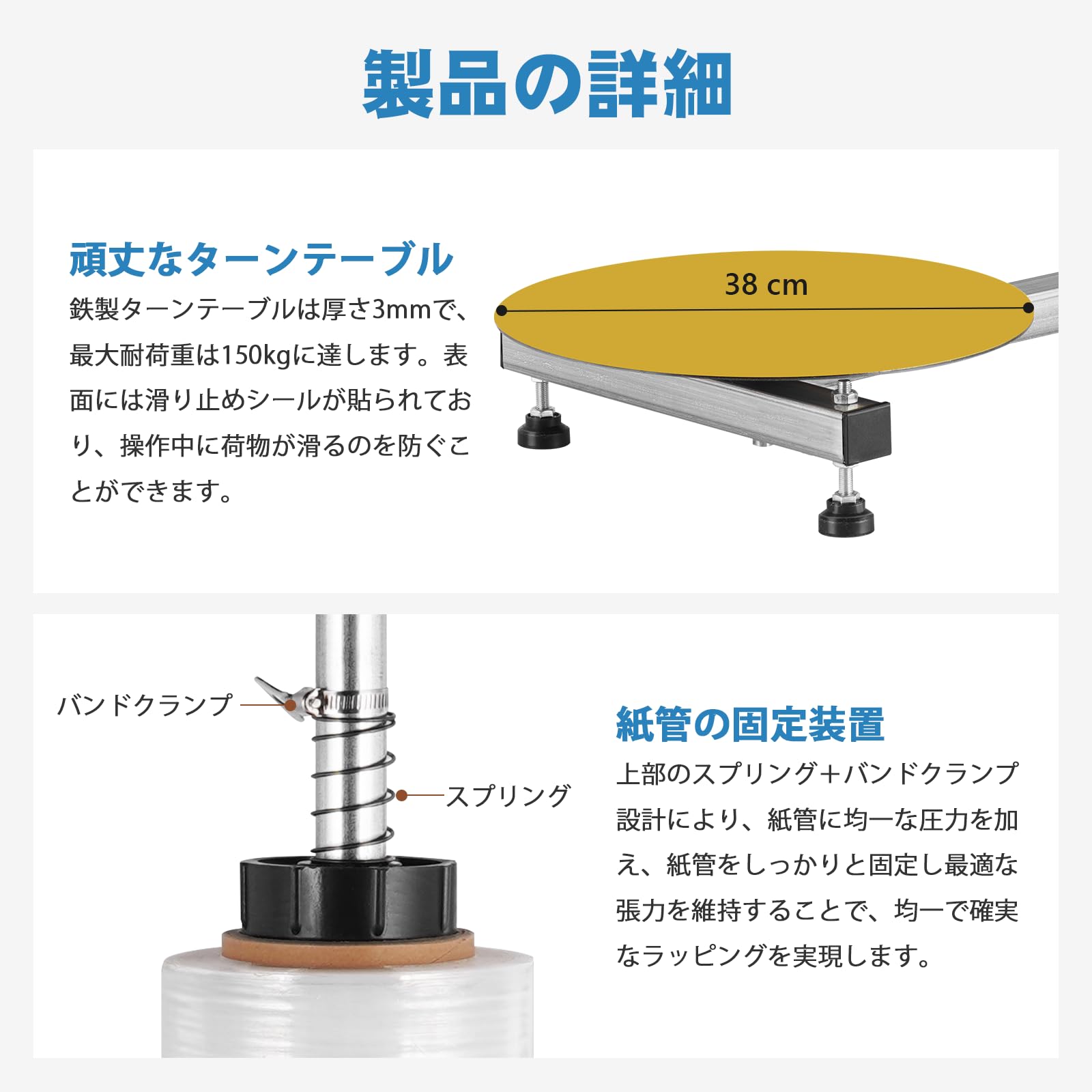 ストレッチフィルムホルダー 幅55cm以内適用 ストレッチフィルム包装機 ストレッチフィルム切断機 ステンレス鋼 大きな荷物を梱包できる