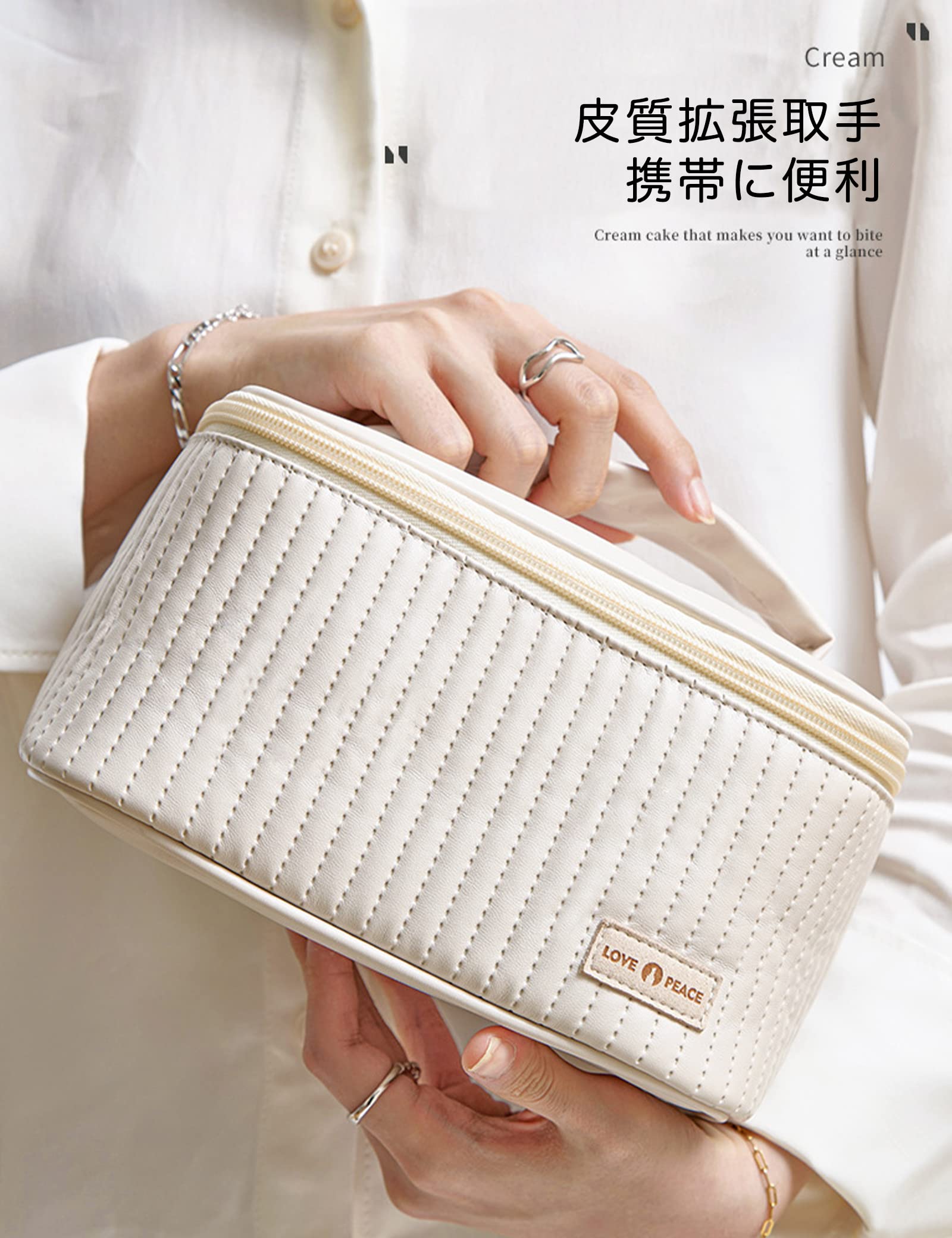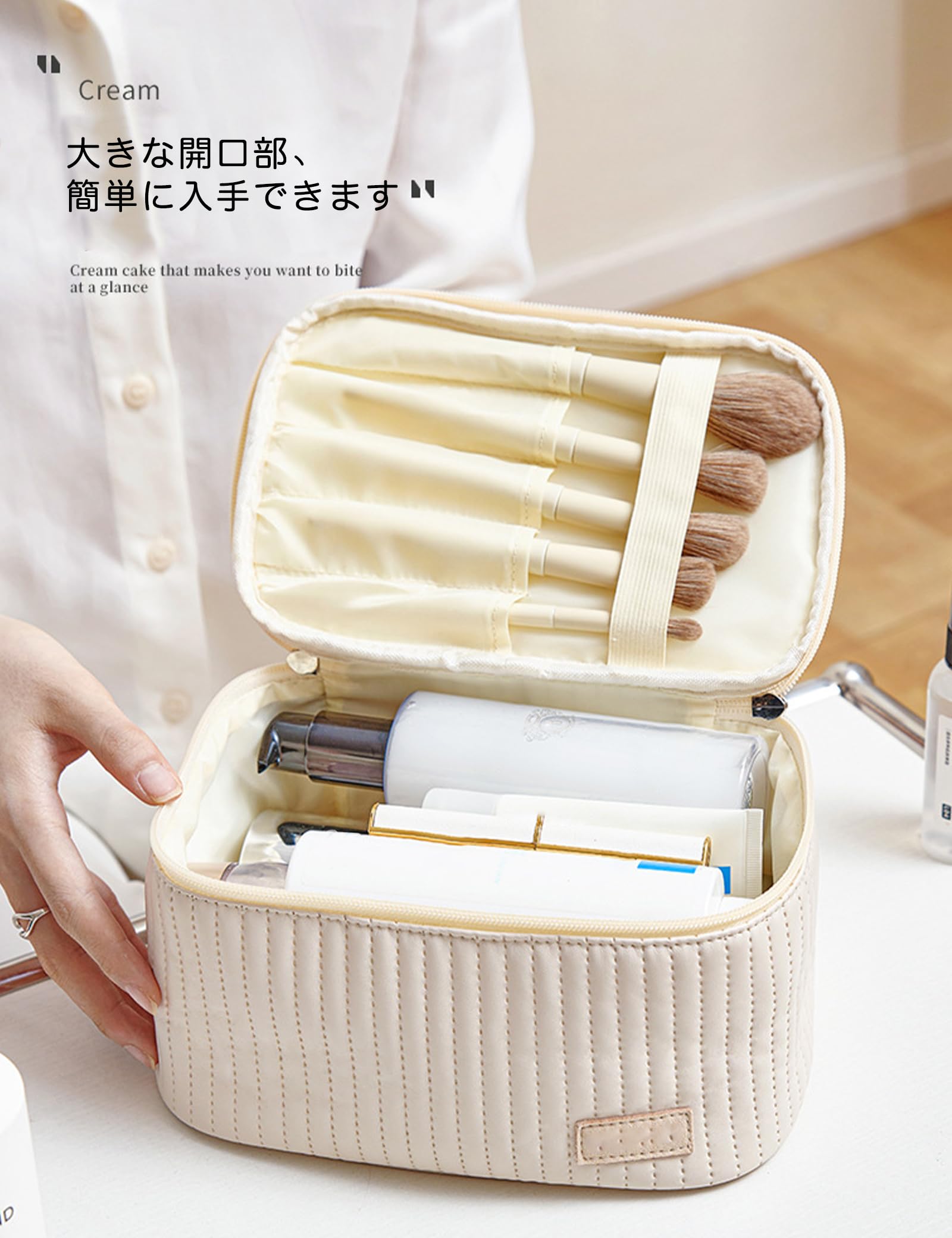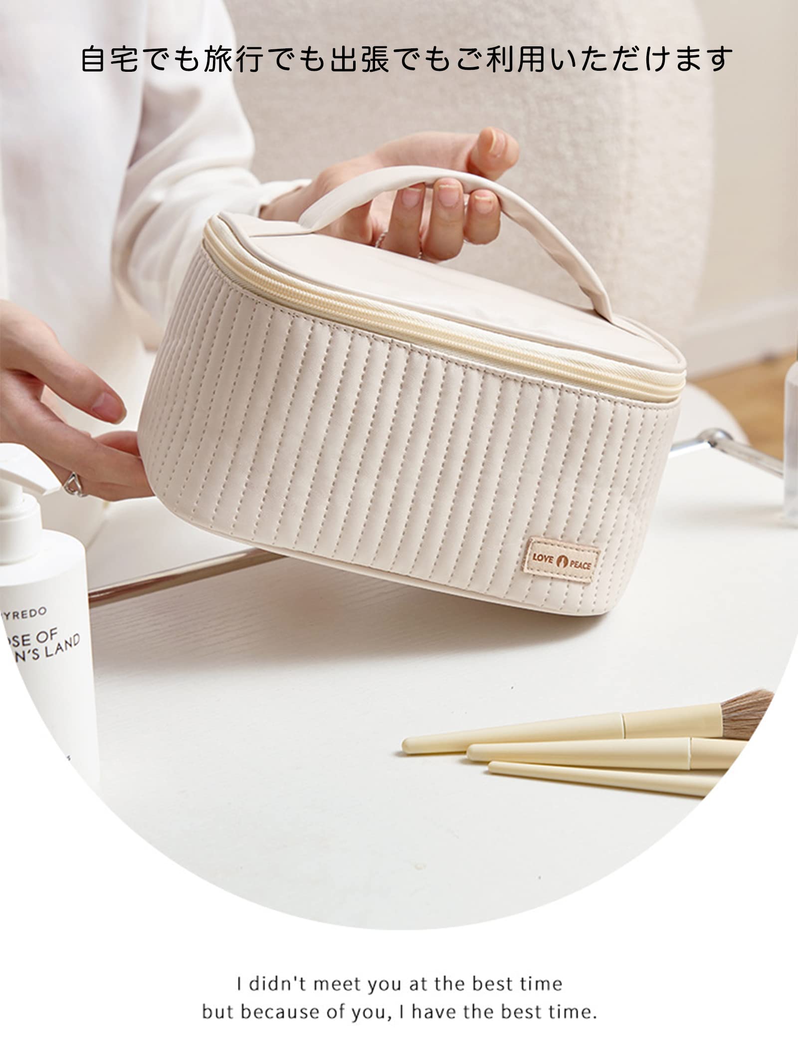 化粧ポーチ ROWNYEON メイクポーチ 大容量 コスメポーチ コスメティックバッグ バニティバッグ ブラシポケット トラベル 防水 軽量 持ち運び かわいい おしゃれ 化粧道具 (white)