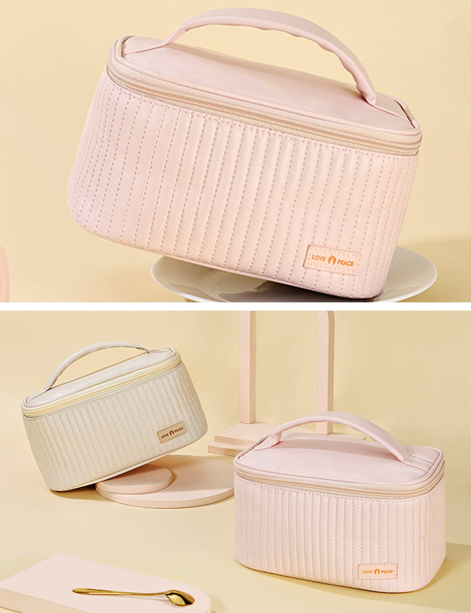Rownyeon 化粧ポーチ 大容量 メイクポーチ コスメポーチ ブラシ入れでき しきり付き かわいいピンク コスメ収納 旅行用 自宅用