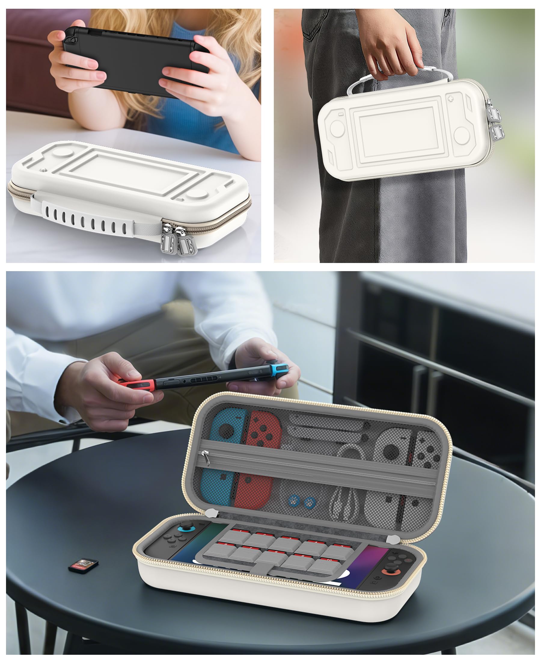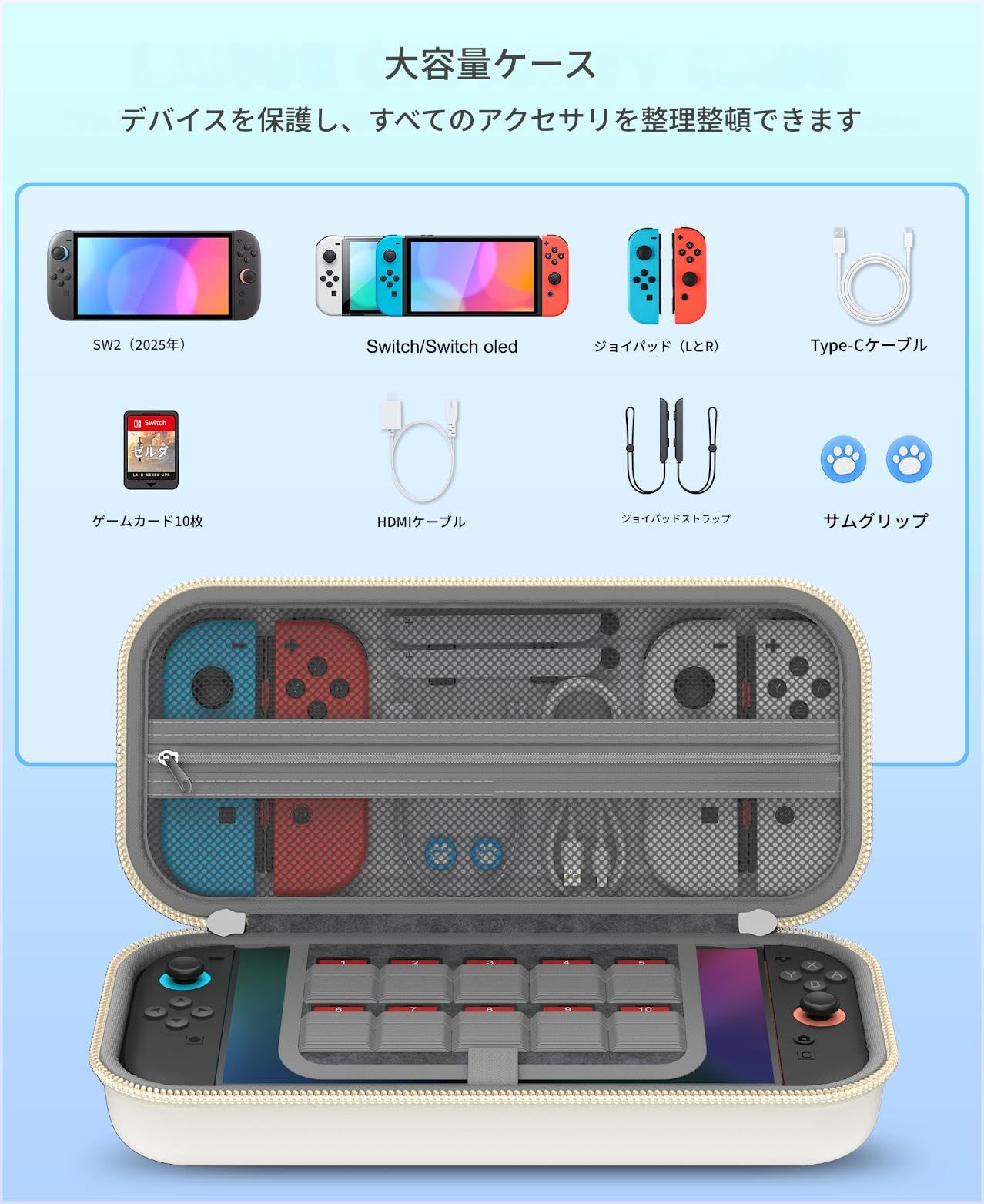【2025年新版】 Switch 2/Switch/OLED ケース 保護カバー 収納バッグ 防水 防塵 防汚 耐衝撃 ナイロン素材 全面保護型 消臭 ゲームカード20枚 持ち運び便利 大容量 収納バッグ スイッチ ケース 旅行 白
