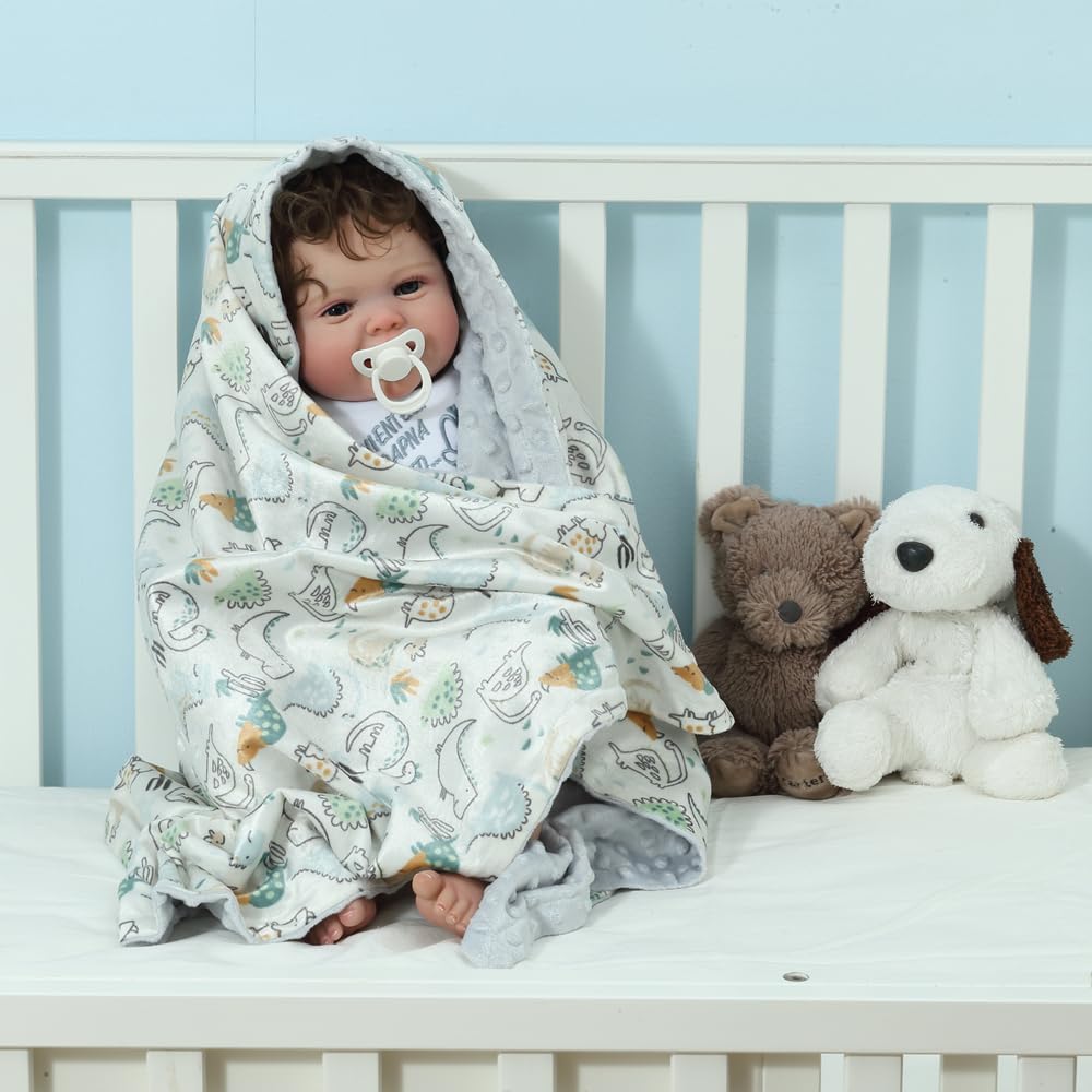 CREVENT 2枚セット 76 x 102 cm 可愛い ふわふわで温かい ベビー毛布 乳幼児用 ベビーベッド 布団 ベビーカー対応 - グレー クラウド + 恐竜