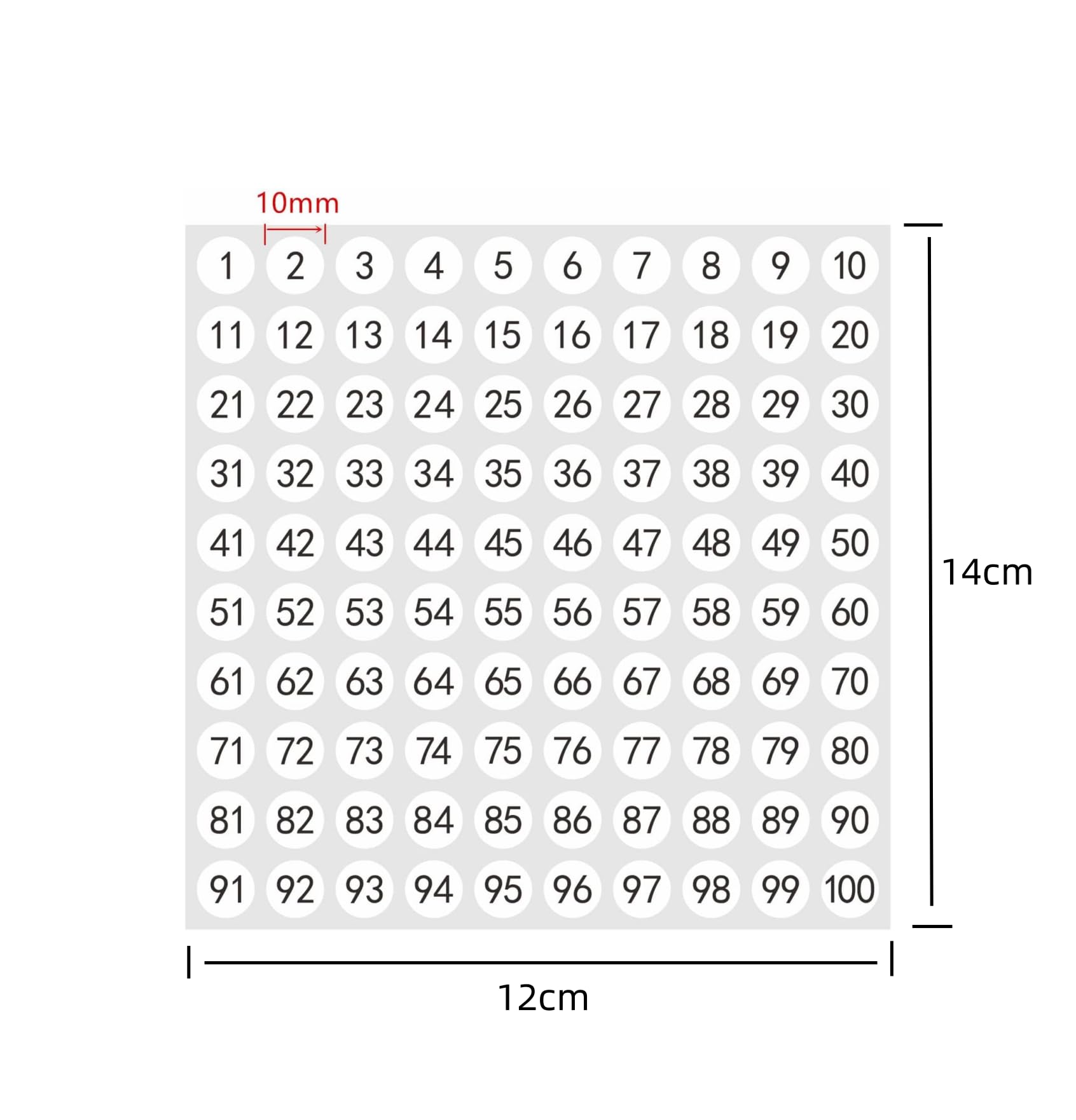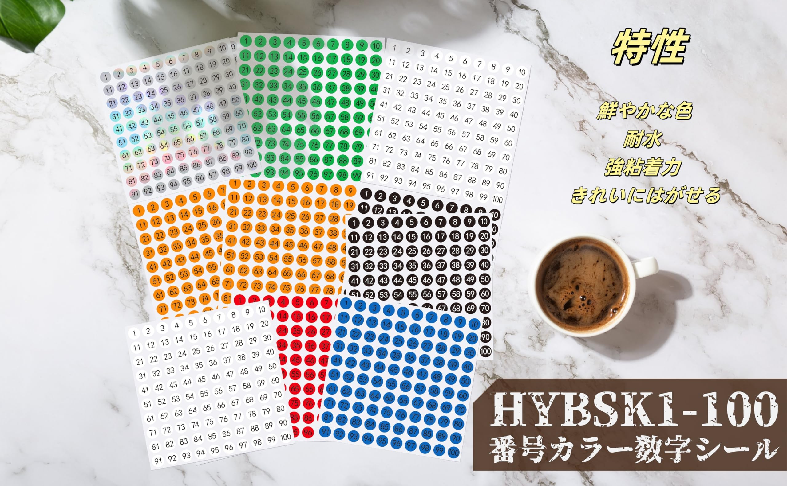 Hybsk 数字 シール 2000枚 番号シール 1~100 ナンバー 丸形 10mm 番号 タイプ セット 1~100 ナンバーラベル 数字 (白)