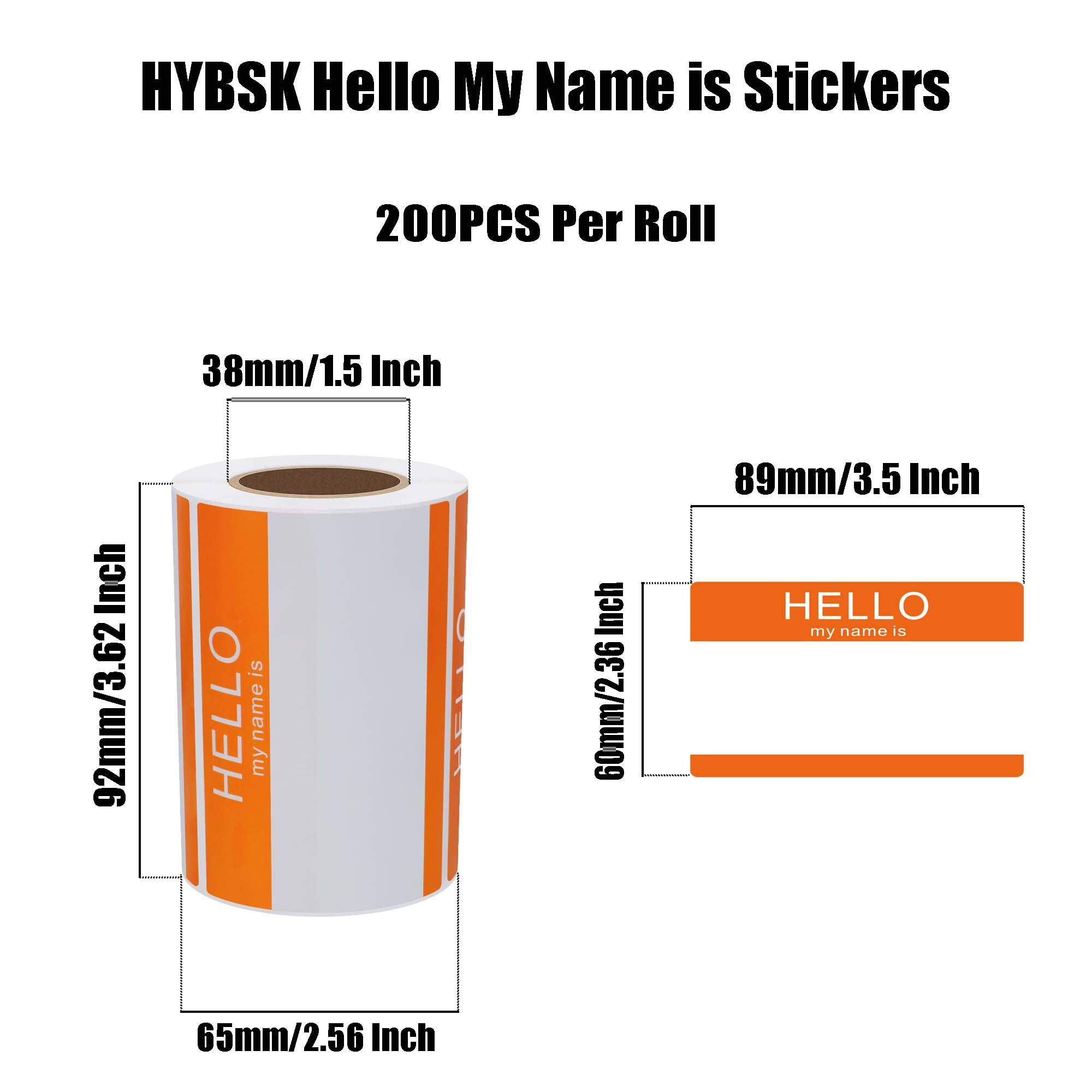 Hybsk 名札シール 服に貼る 名前シール 200枚 89 x 60 mm hello my name is ステッカー 名前ステッカー (オレンジ)