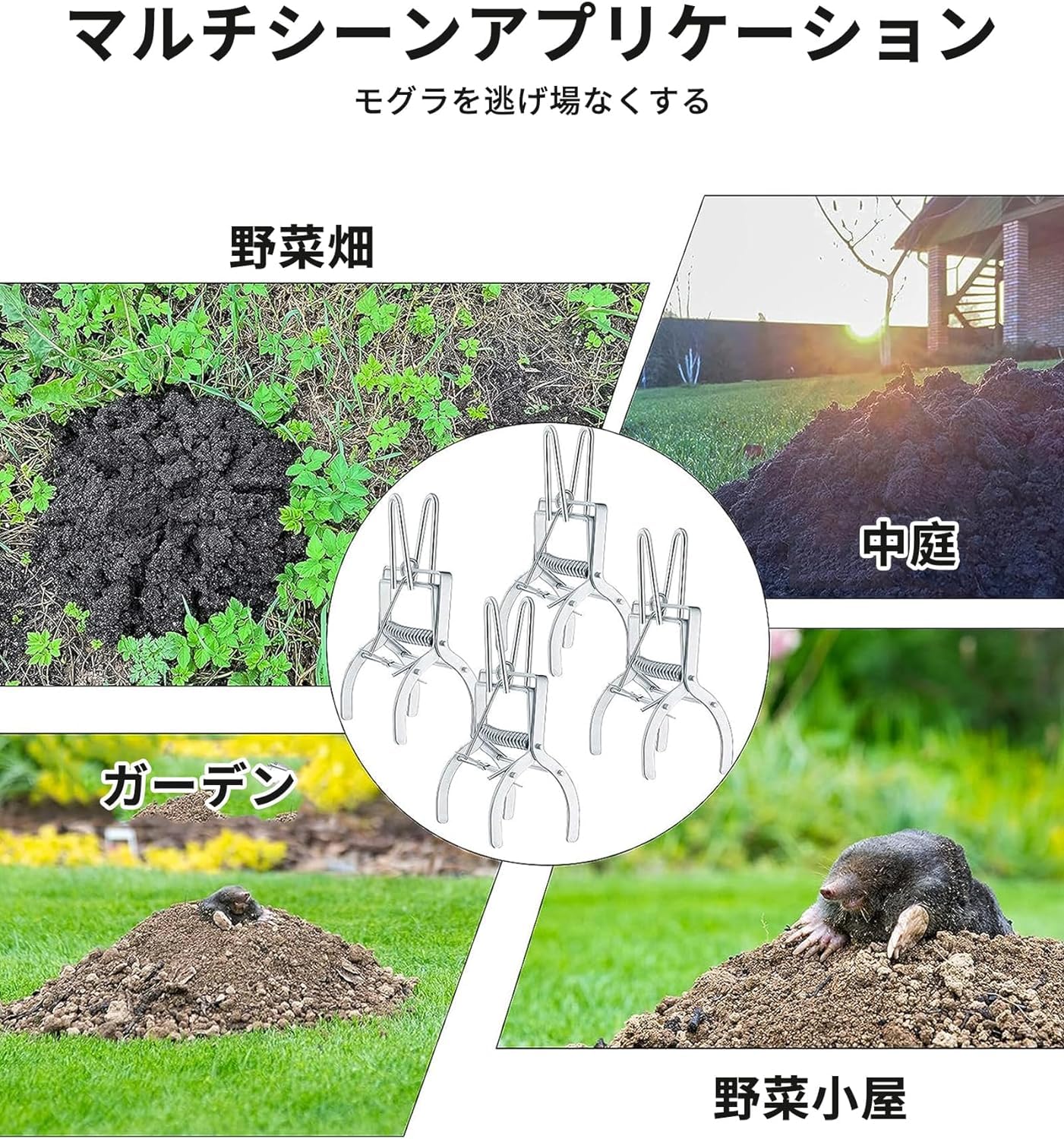 happykau モグラ 捕獲器 4個セット もぐら退治 モグラ捕り用クリップもぐら撃退地中埋め込み式撲滅にモグラ捕獲器強力 駆除 対策簡単設置 庭畑 (4個セット)