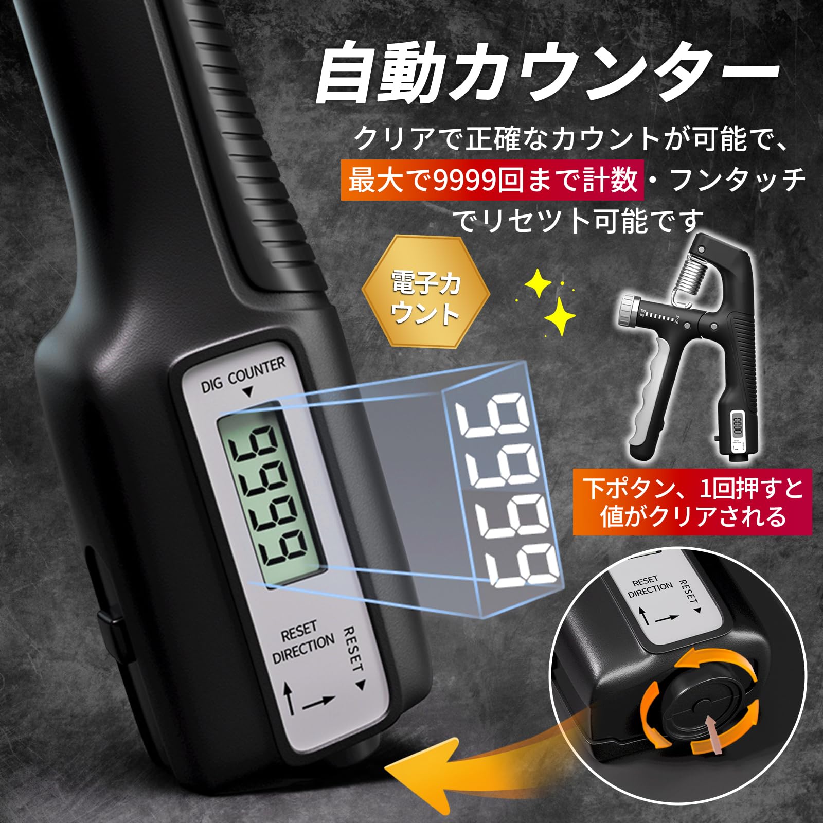 ハンドグリップ 握力トレーニング 筋トレ 回数記録機能 カウンター付き 負荷調整式 動きスムーズ リハビリ器具 ストレス解消 滑り止め 握りやすい 男女兼用 指・手・握力・腕の筋力をパワーアップ(負荷5-60kg,2個セット)