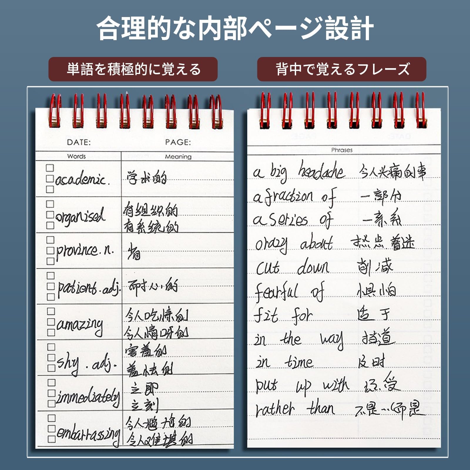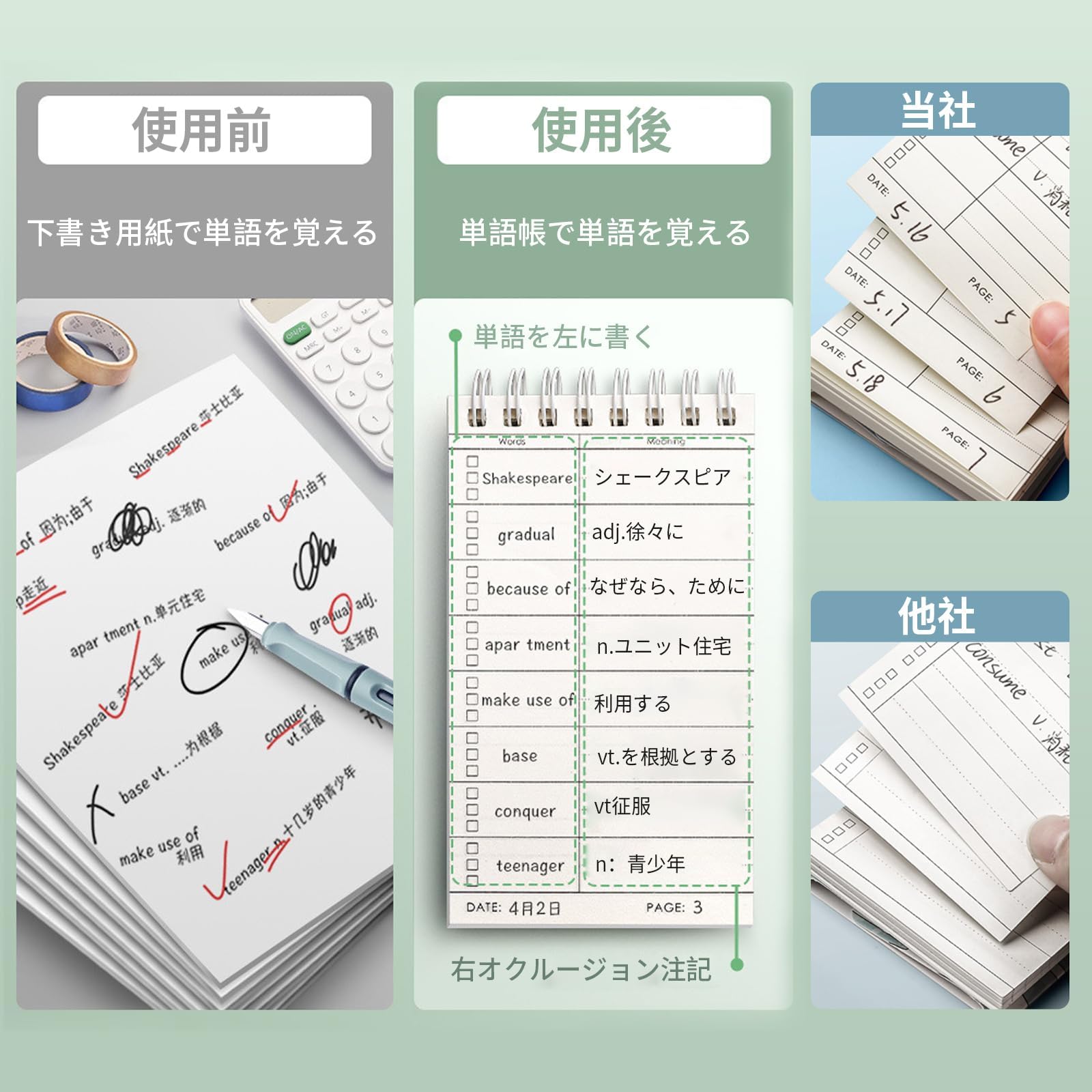単語カード 単語帳 暗記カード 学習帳 テスト 単語帳 大きめ メモ帳 暗記効率アップ 英語 語学 公式 歴史 試験資格 勉強 計画 漢字学習用品6冊*50枚