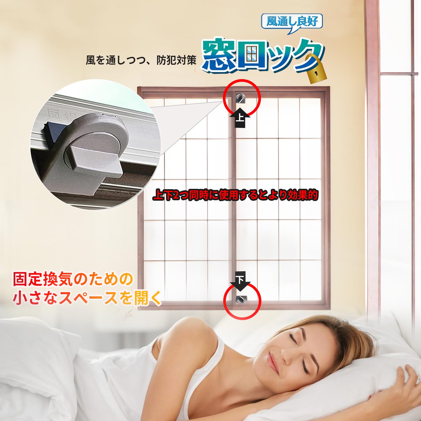 REBEAUQ 窓 ロック 網戸ロック 4個 セット窓 防犯グッズ ストッパー サッシ ベランダ 窓ロック 徘徊防止 子供 転落防止 猫脱走防止 高耐久性 設置簡単 サッシ窓補助錠 窓用補助錠 補助鍵 ブラック