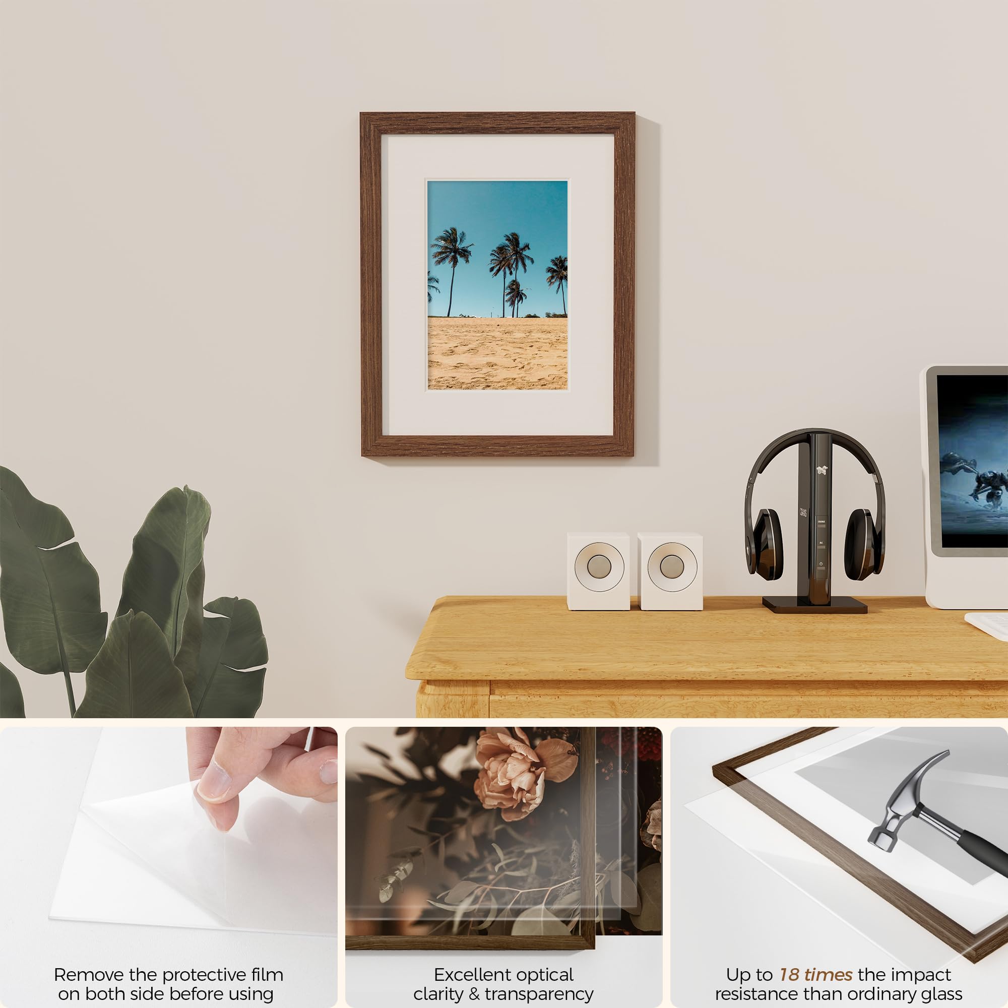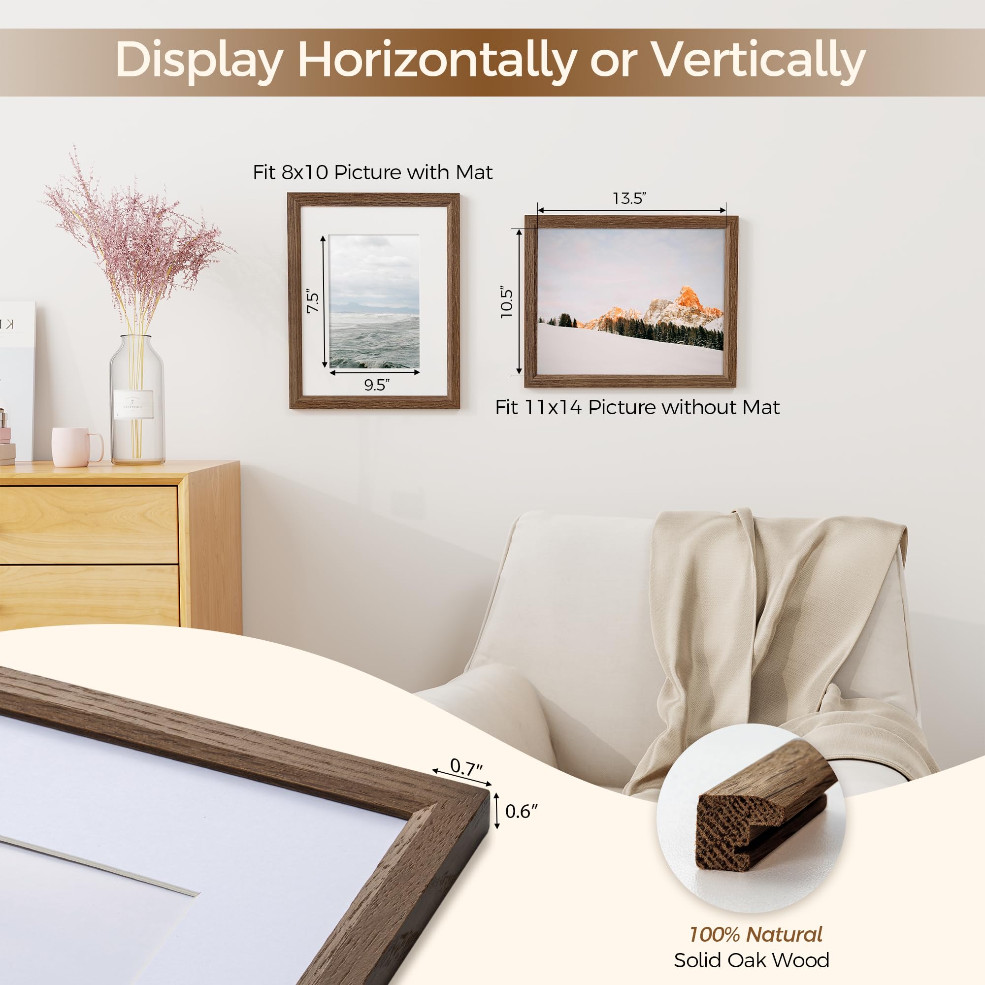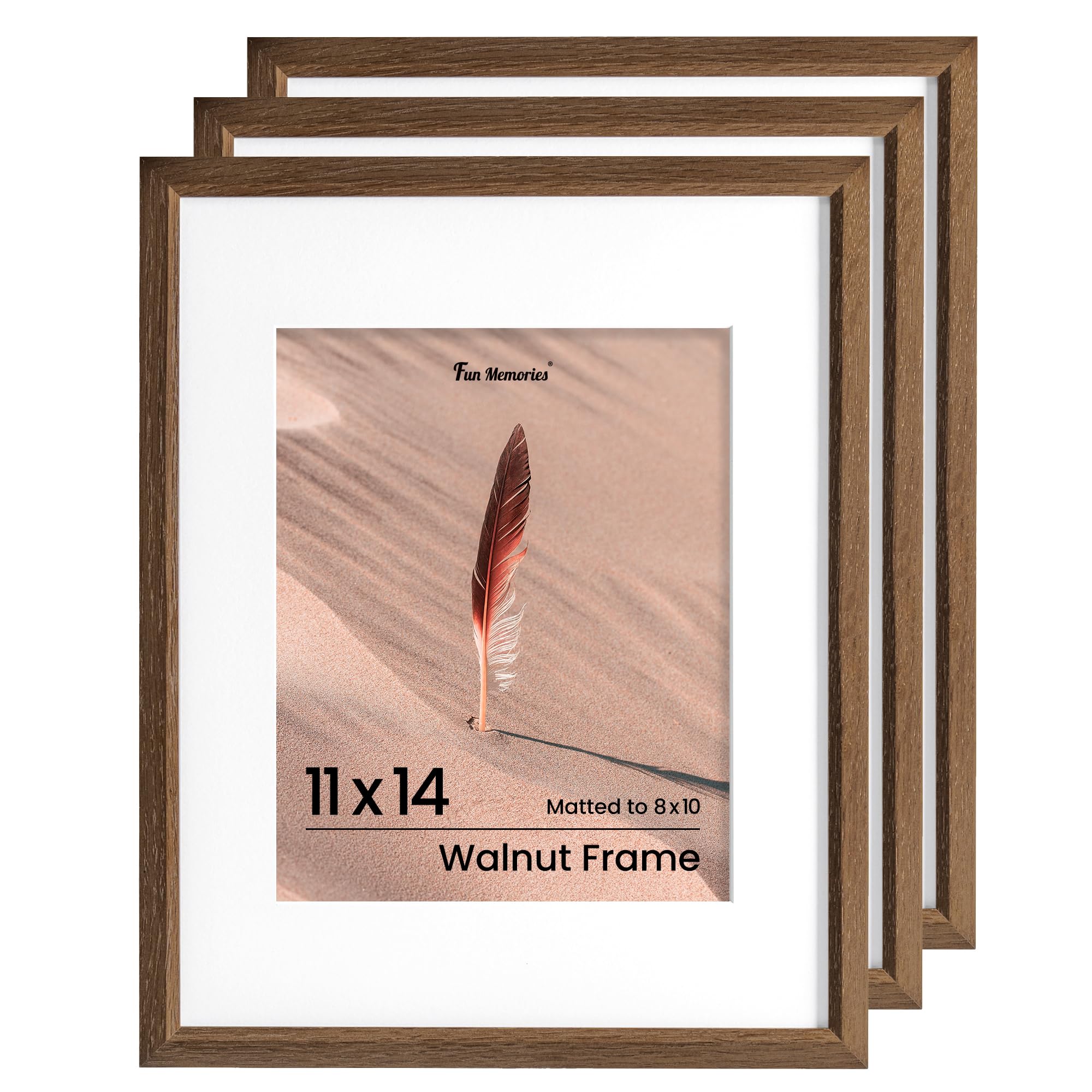 Fun Memories 壁用 11x14インチ オークフォトフレーム 11x14インチ マット仕上げ 8x10インチ ウォールアート 写真やプリント用 ウォールナット 無垢材 ポスターフレーム 3パック