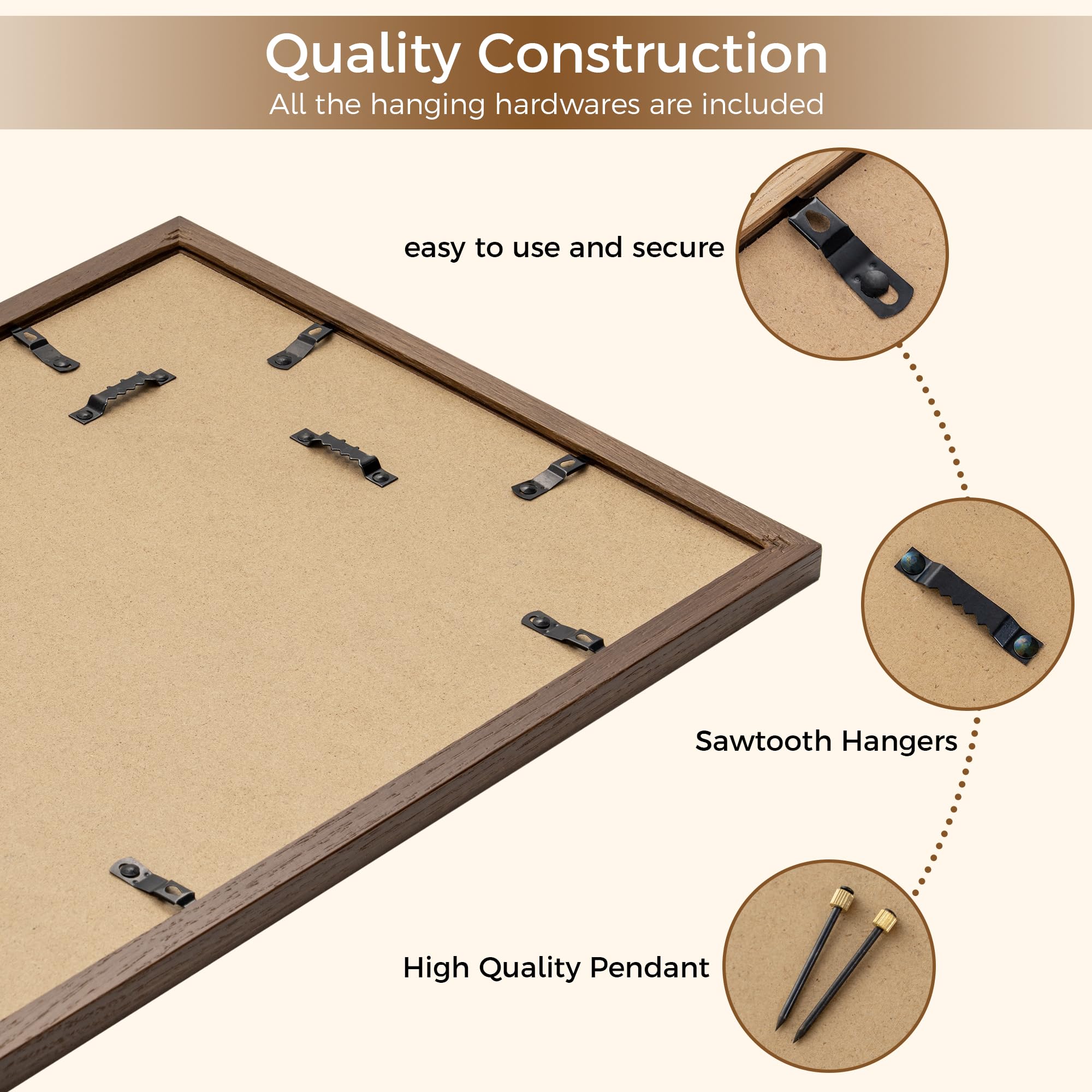12x12インチ 正方形 オーク無垢材 フォトフレーム 8x8インチ写真用マット・強化ガラス・吊り下げ金具一式付属 ウォールナット (1個)