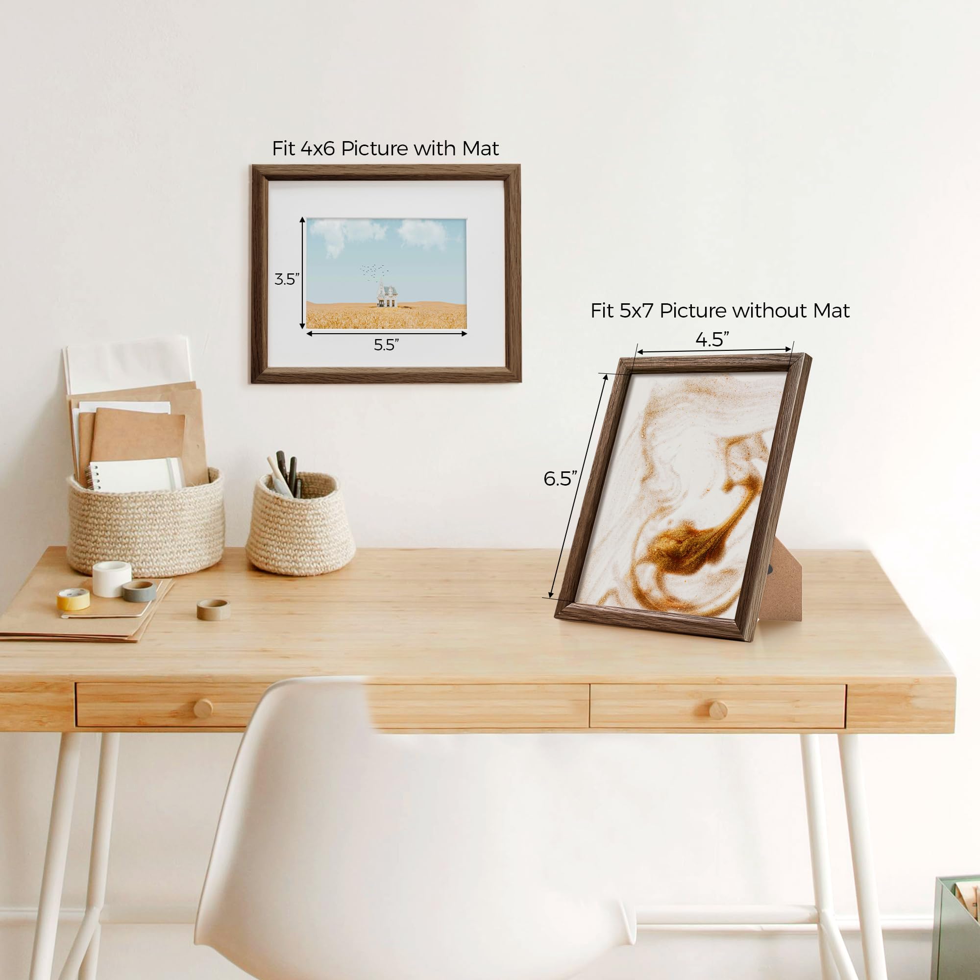 Fun Memories 5x7インチ オークフォトフレーム 壁用 5x7インチ マット仕上げ 4x6インチ 無垢材フォトフレーム ウォールアート写真やプリント用 (ウォールナット、3パック)
