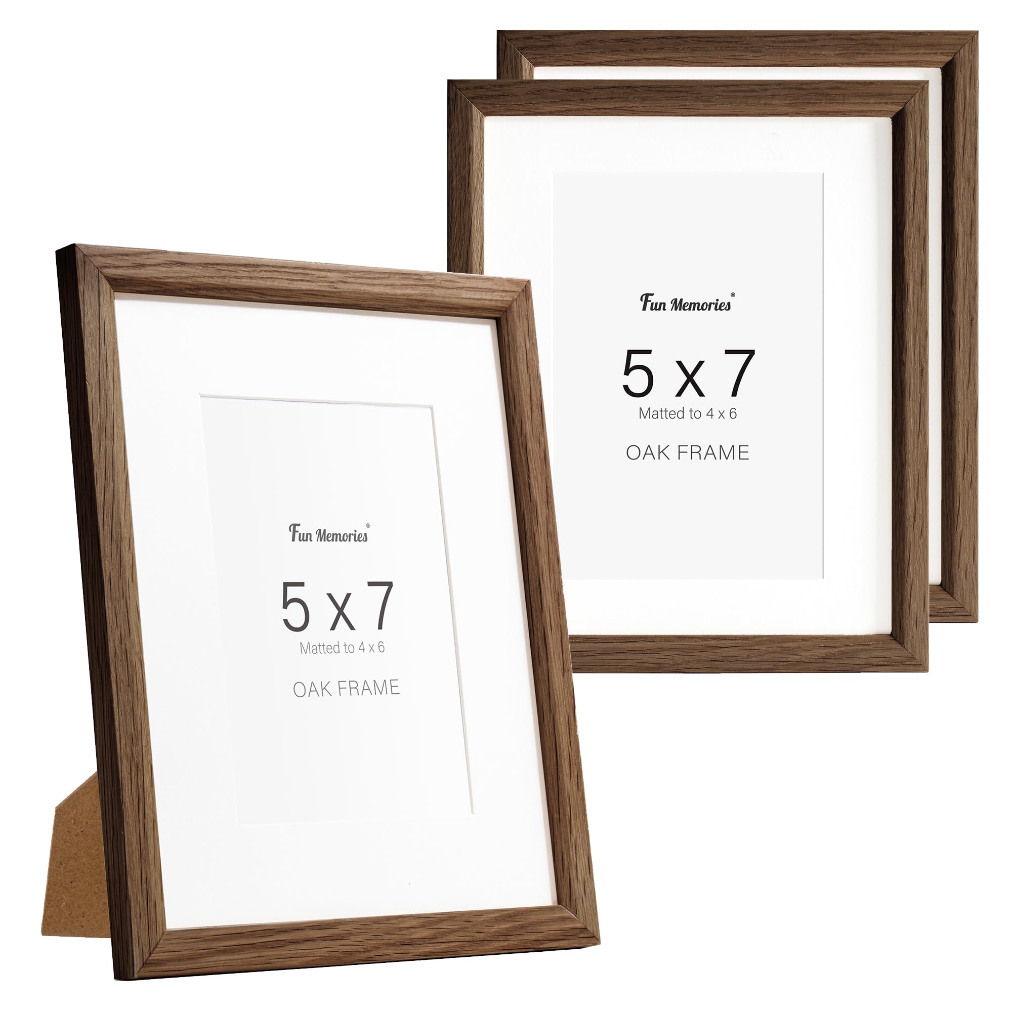 Fun Memories 5x7インチ オークフォトフレーム 壁用 5x7インチ マット仕上げ 4x6インチ 天然無垢材フォトフレーム ウォールアート写真やプリント用 3パック
