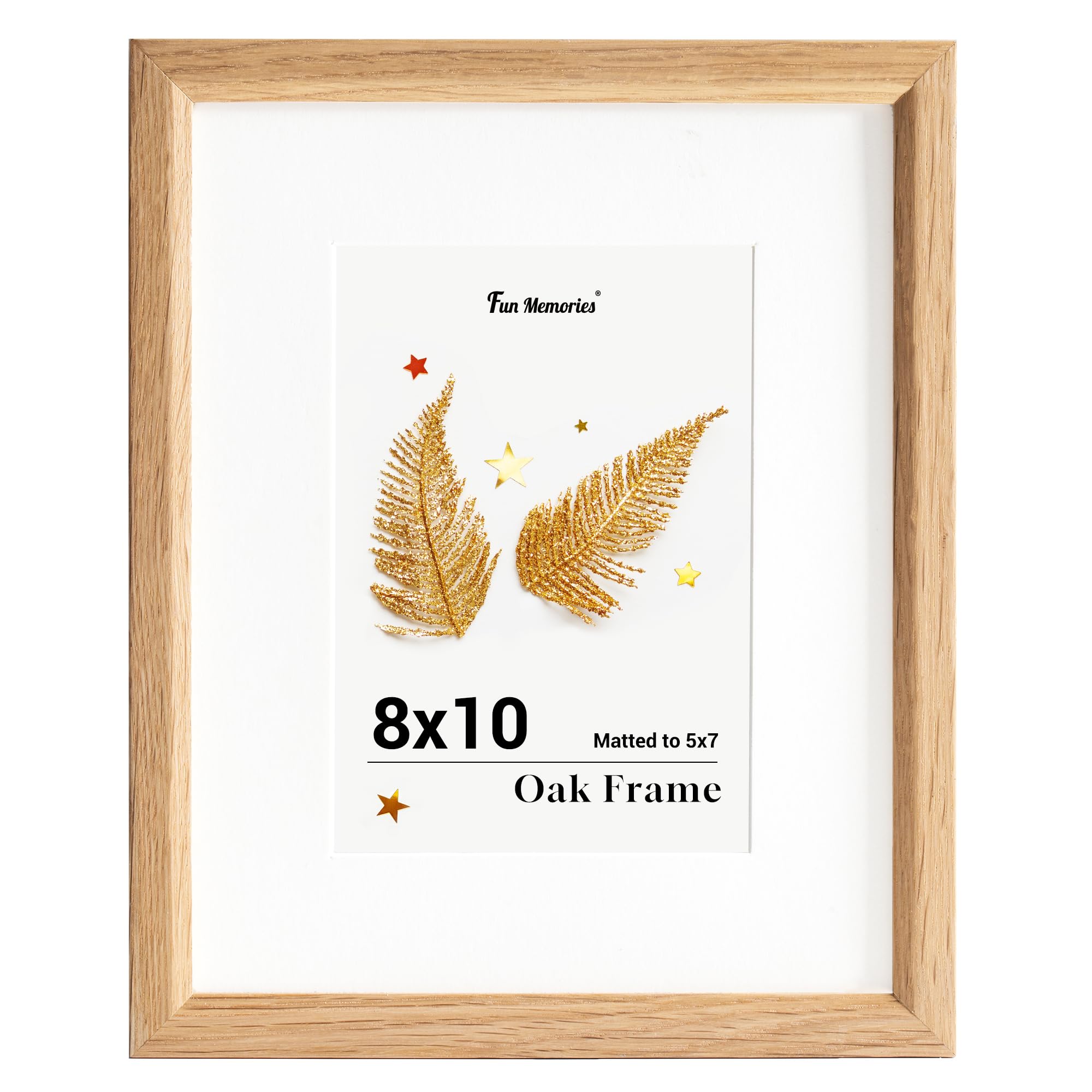 Fun Memories 8x10インチ オークフォトフレーム 壁用 8x10インチ マット仕上げ5x7インチ 無垢材フォトフレーム ウォールアート写真やプリント用 (ベージュ、1パック)