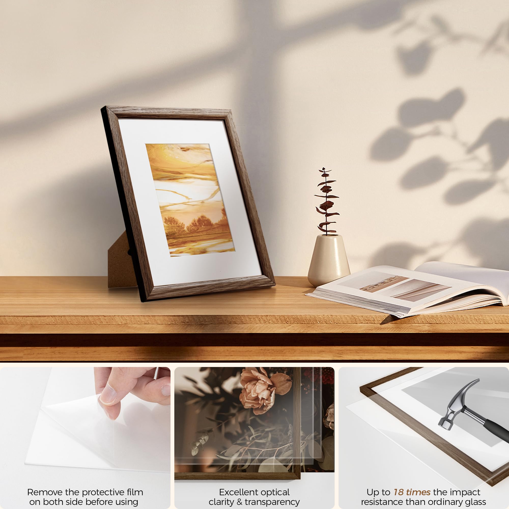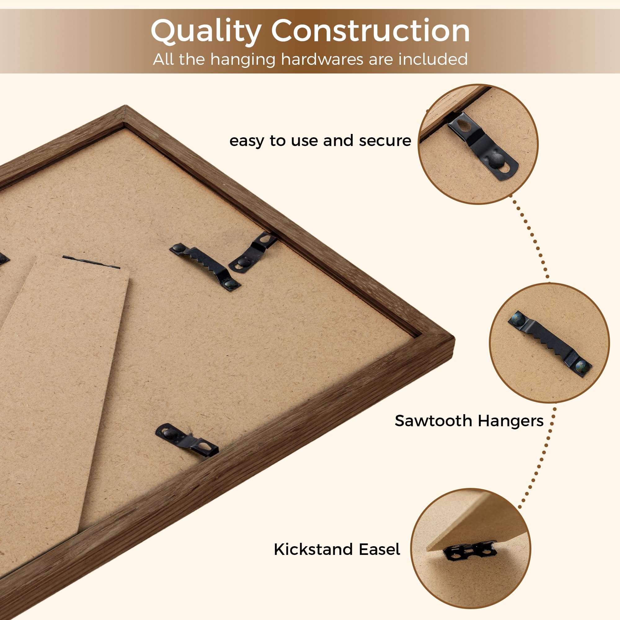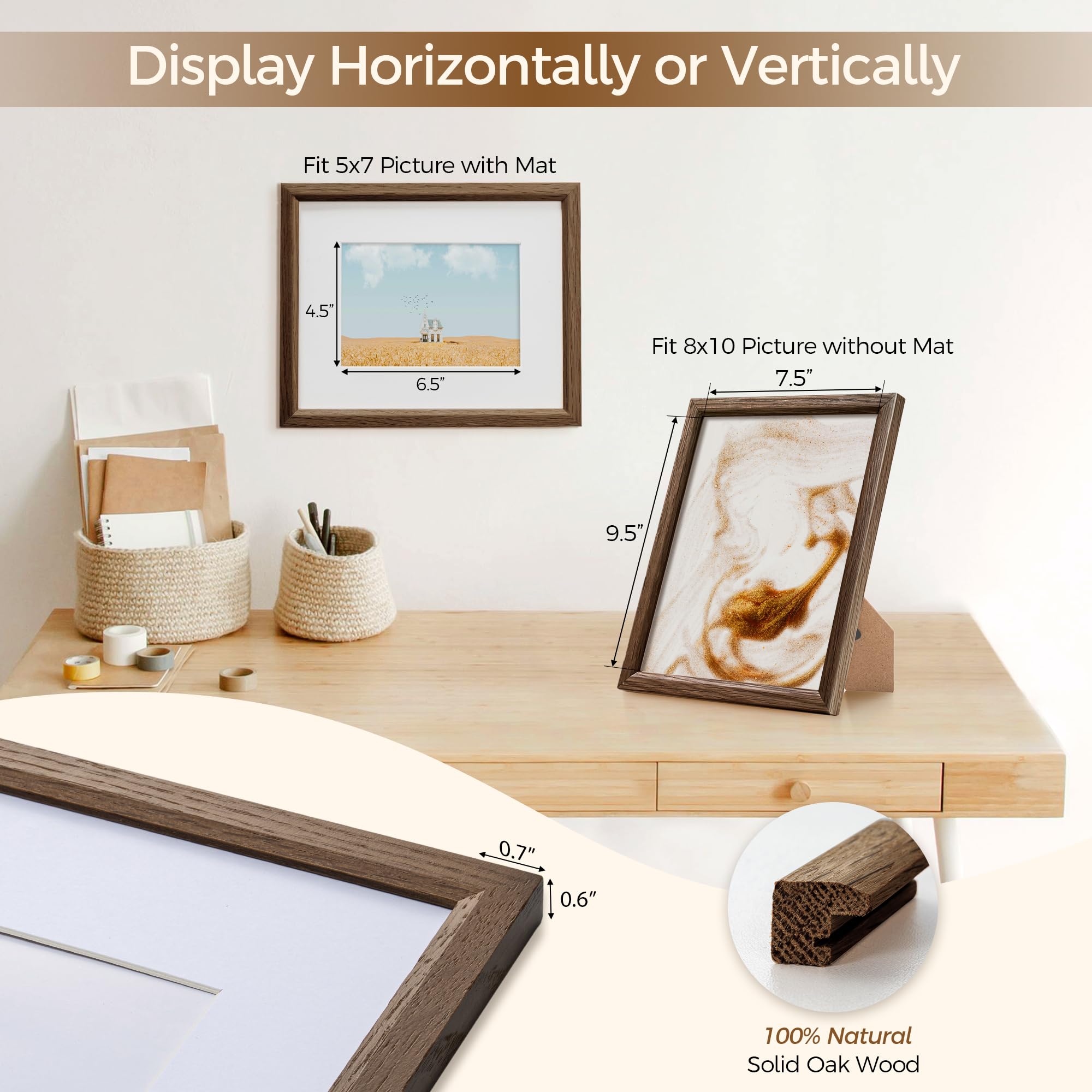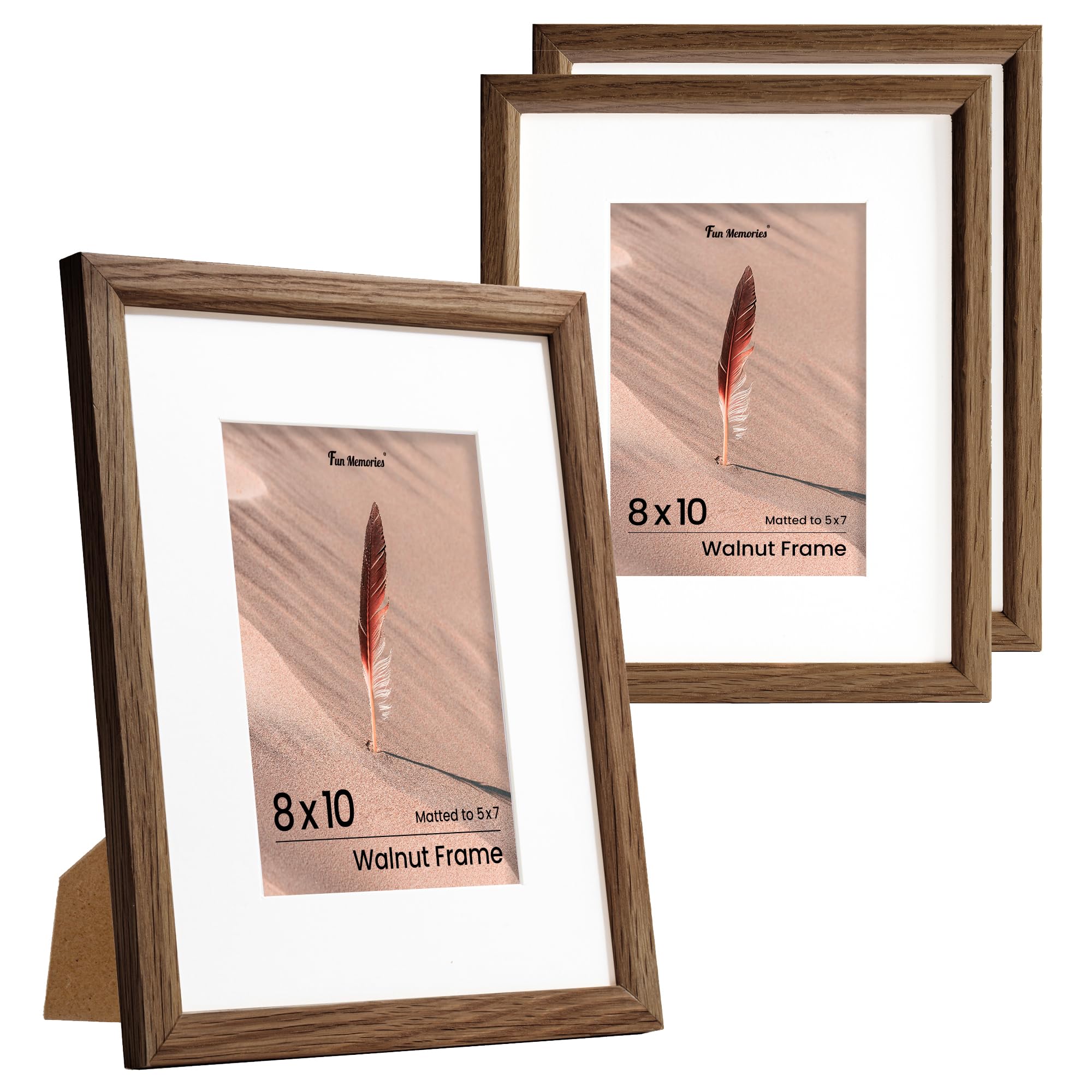 Fun Memories 8x10インチ オークフォトフレーム 壁用 8x10インチ マット仕上げ5x7インチ 無垢材フォトフレーム ウォールアート写真やプリント用 (ウォールナット、3パック)