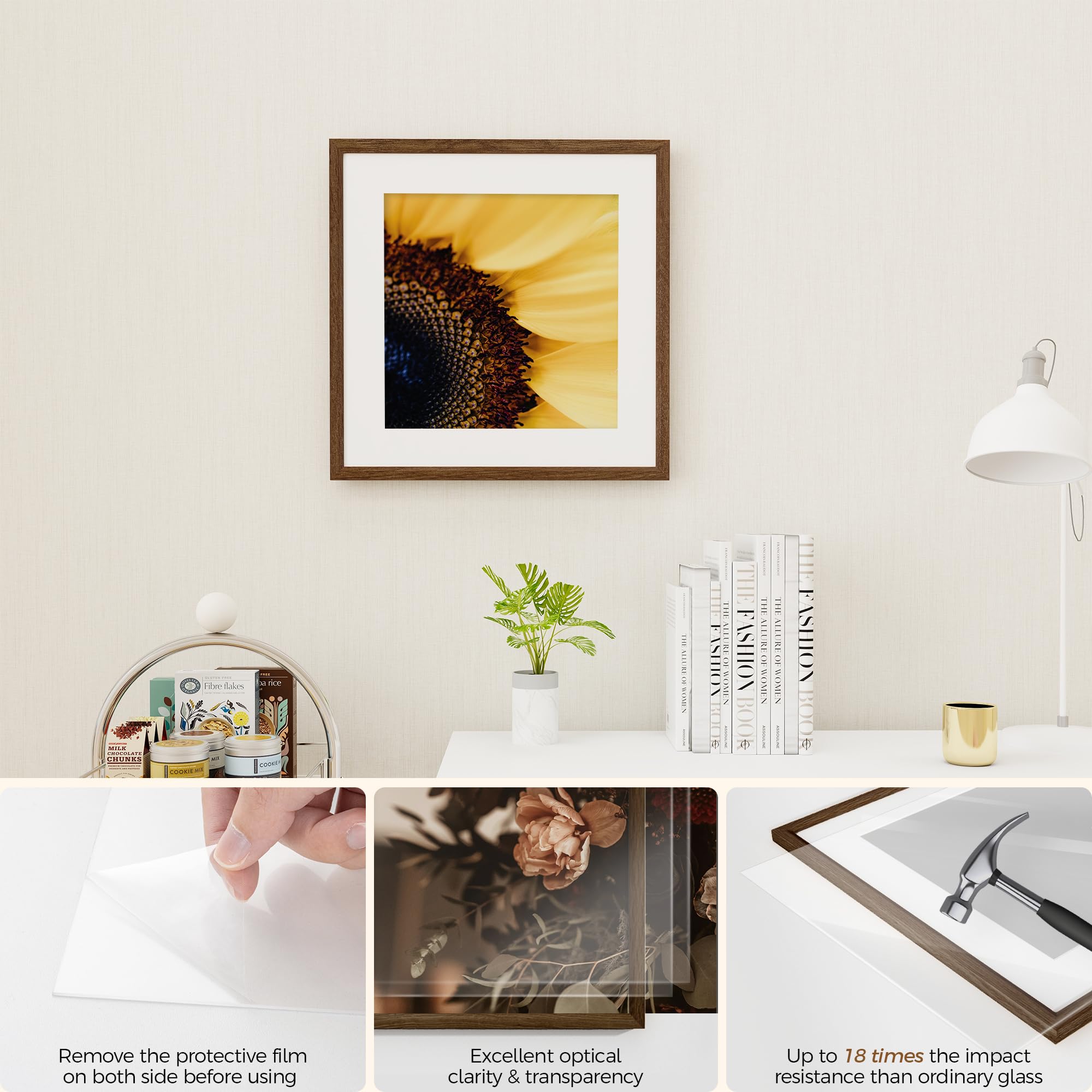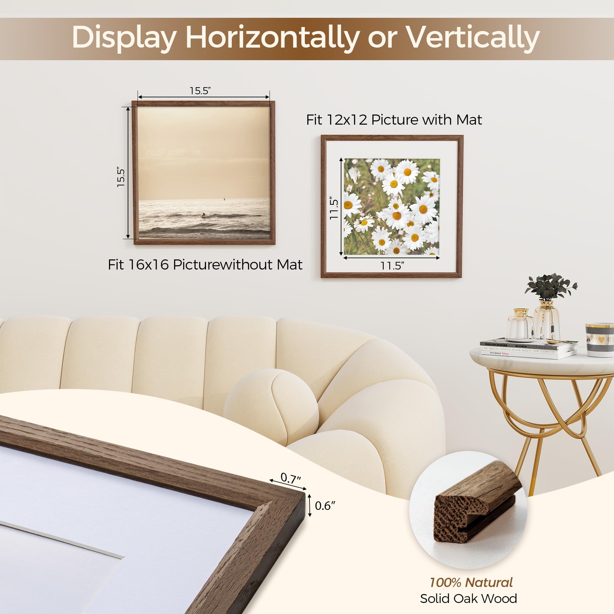 Fun Memories 16x16インチ 写真フレーム - 16x16インチ オークウッドフレーム、16インチx16インチ 写真フレーム 木製 16x16インチ 無垢木製写真フレーム ウォールアート写真やプリント用 (1パック、ウォールナット)