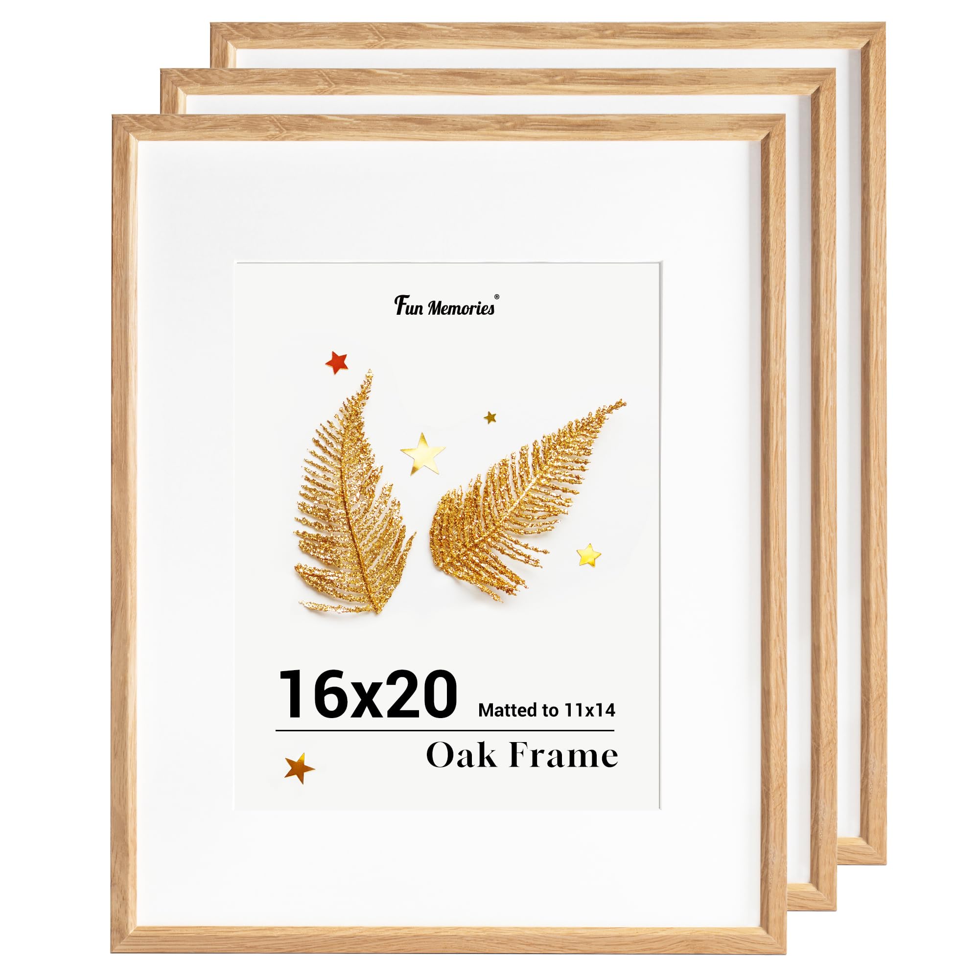 16x20インチの壁用写真フレーム、オークウッドポスターフレーム、16x20インチ、11x14マット付き、16インチx20インチの天然木ポスターフレームアートフレーム、壁装飾用、壁掛けフック付き、3個セット。