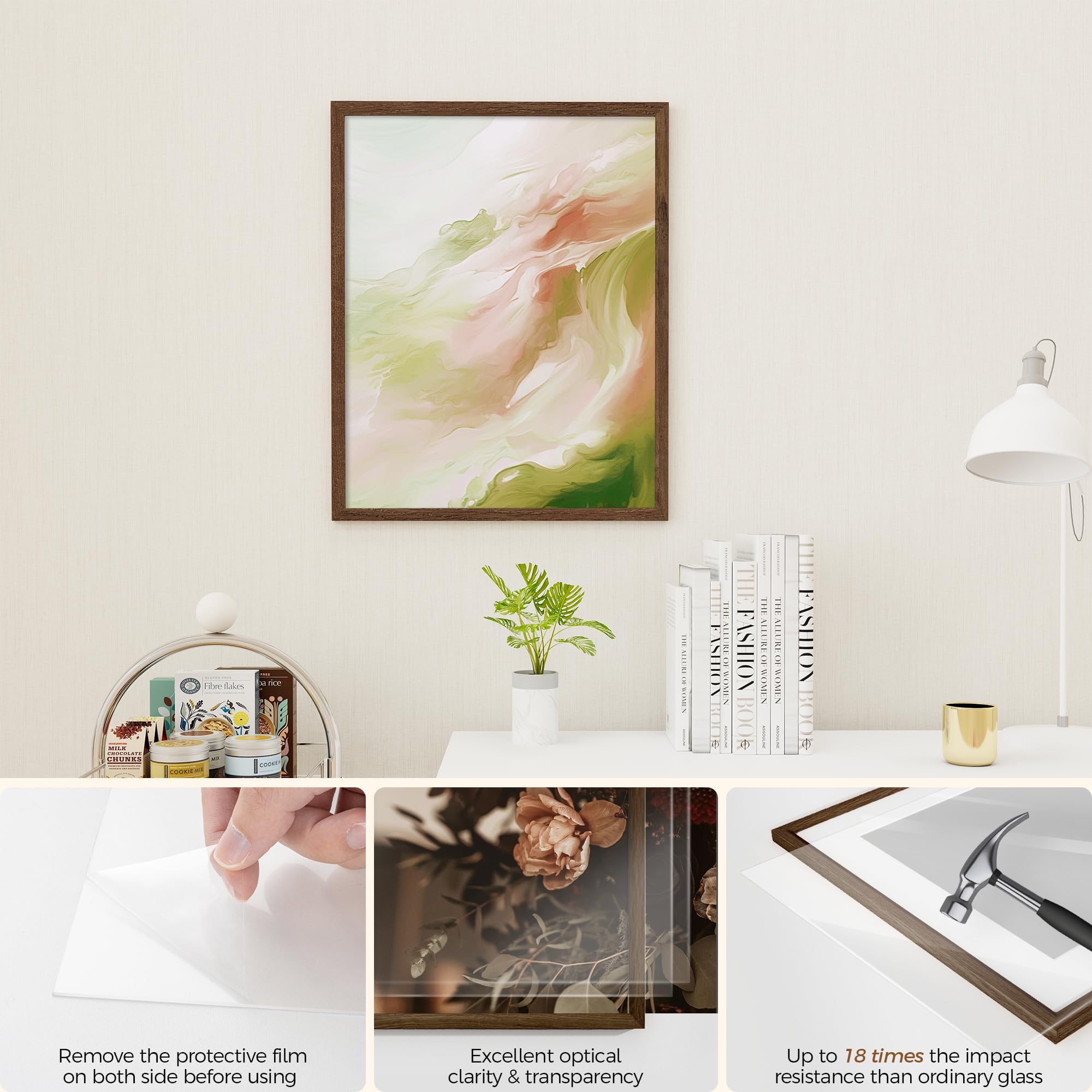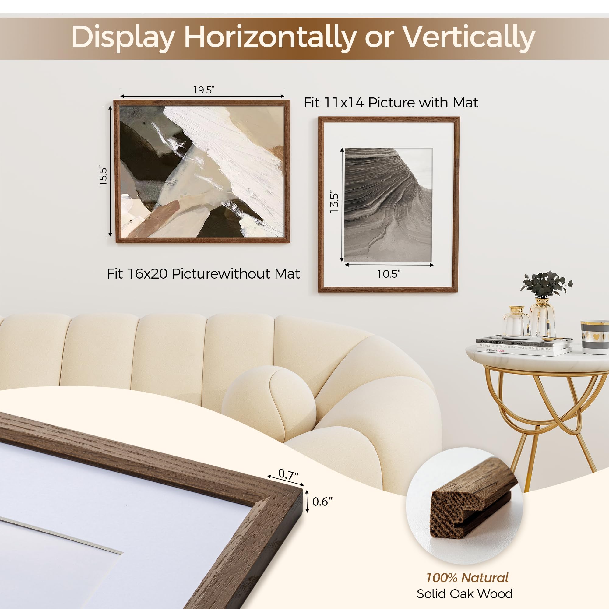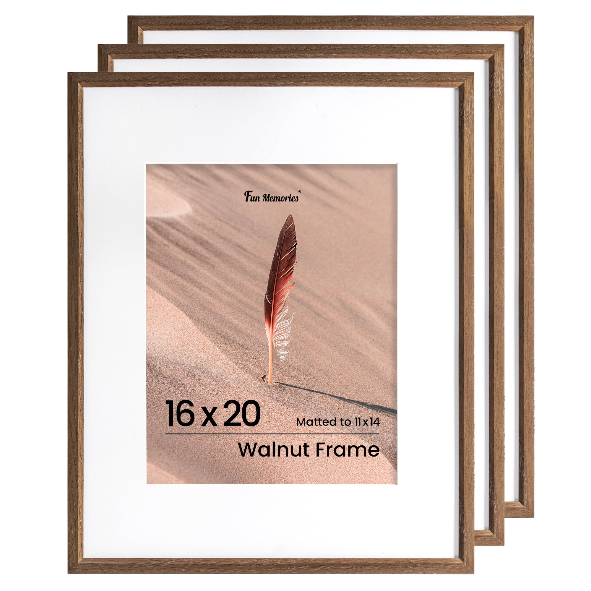 Fun Memories 16x20インチ 写真フレーム オーク無垢材ポスターフレーム モダンフォトフレーム 16x20インチ 11x14マット付き 高解像度プレキシガラス&壁掛けフック付き(ウォールナット、3パック)