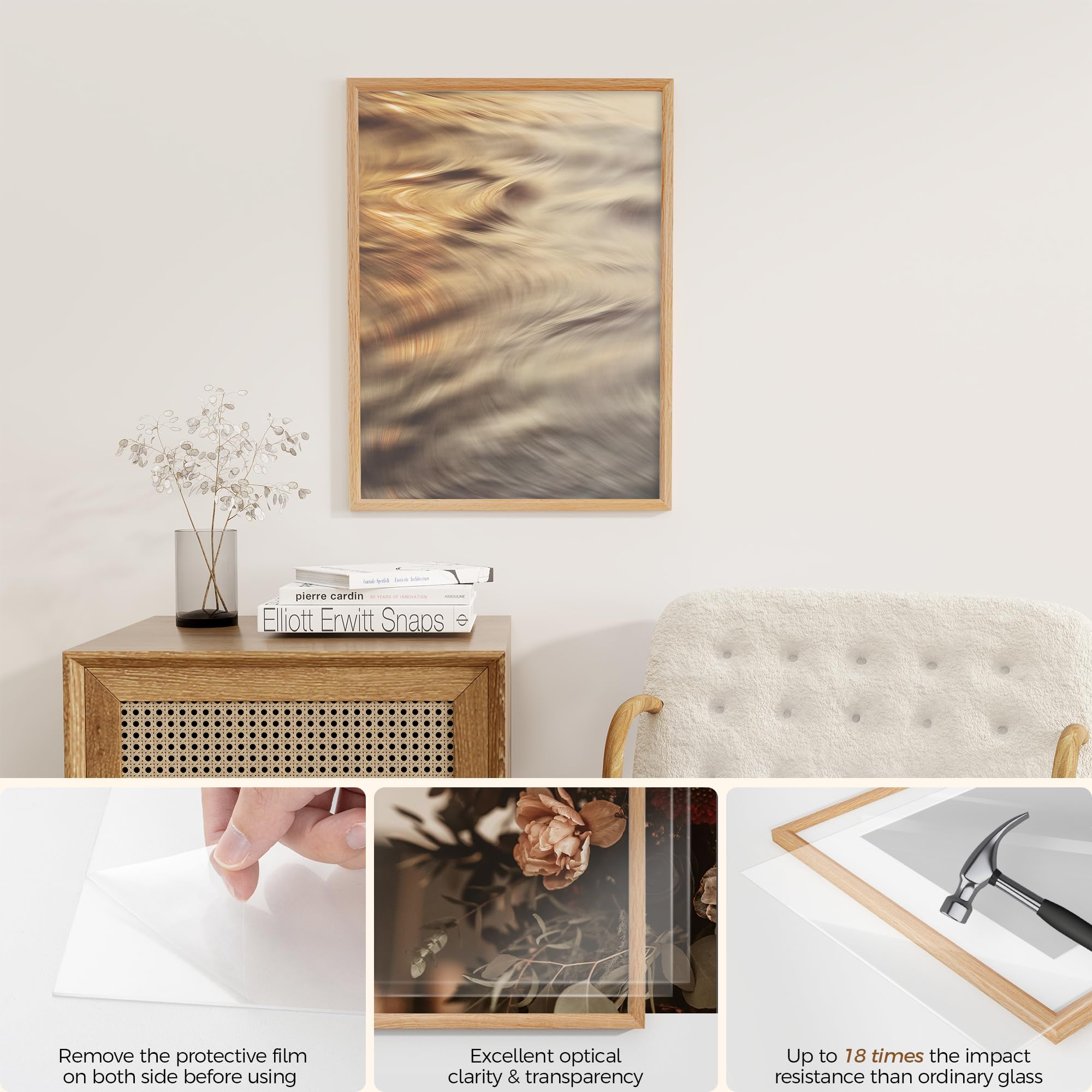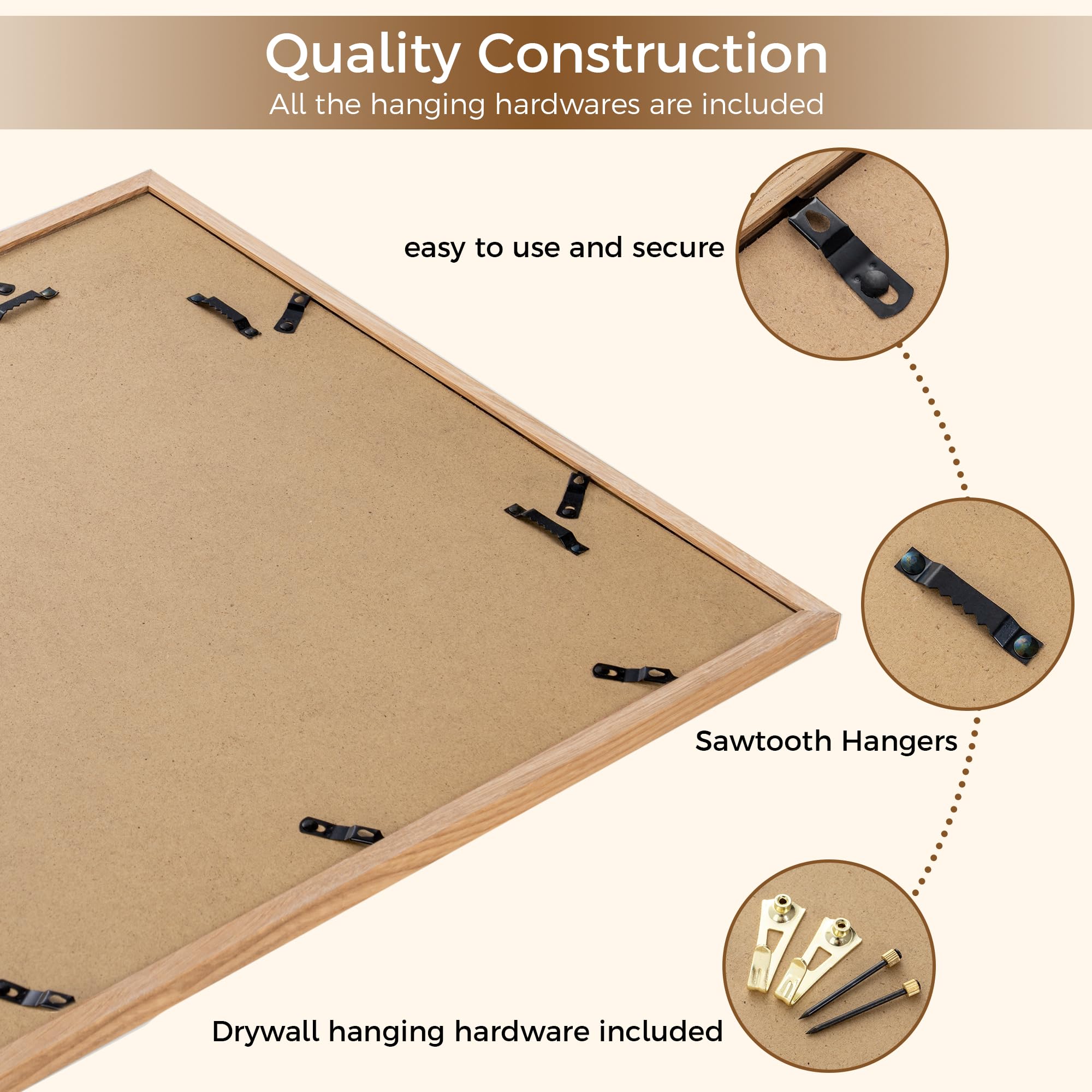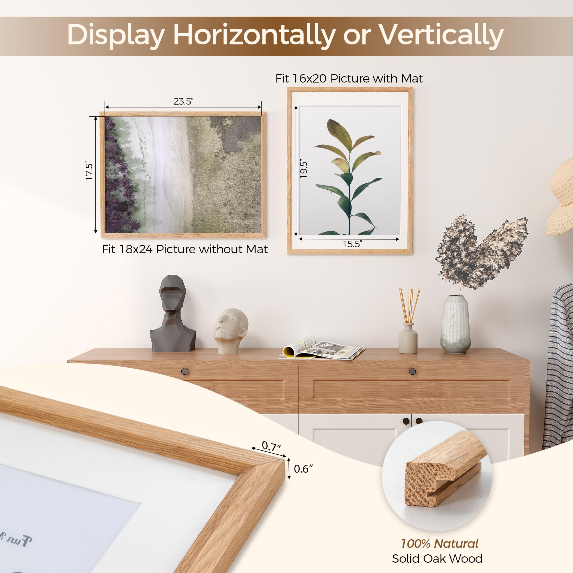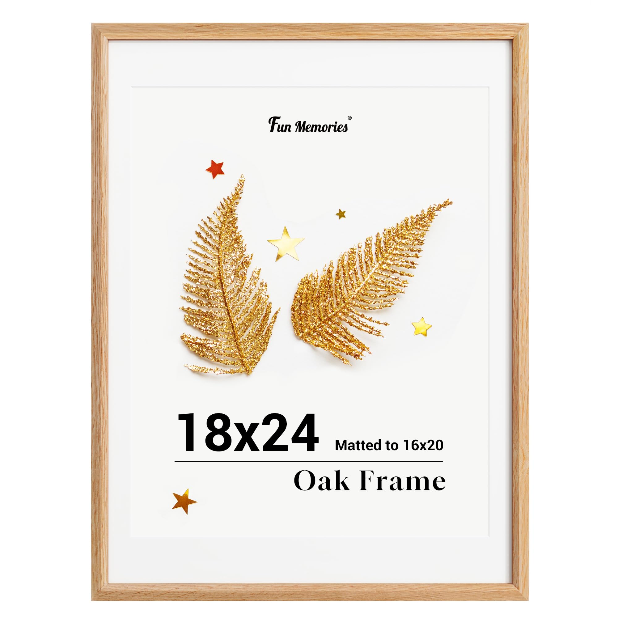 Fun Memories 18x24インチ ポスターフレーム、オーク無垢材ポスターフレーム、モダンフォトフレーム 18x24インチ 壁用 16x20マット、高解像度プレキシガラス&壁掛けフック付き(ベージュ、1パック)