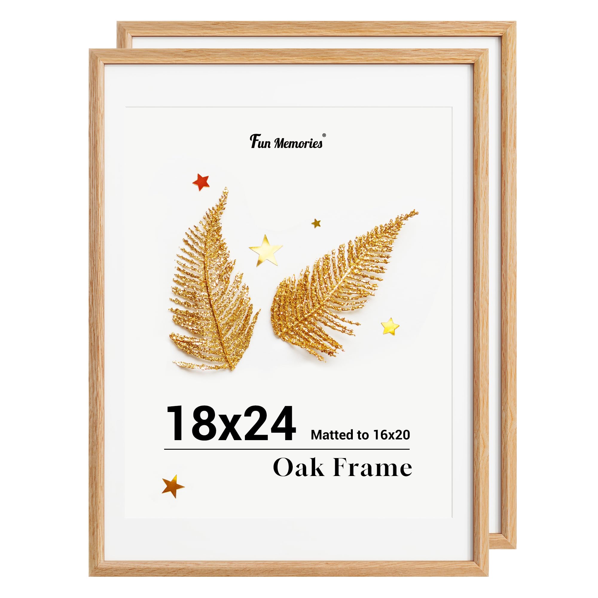 壁用18x24インチの写真フレーム、オークウッドポスターフレーム、18x24インチ、16x20インチのマット付き、18インチx24インチの天然木ポスターフレームアートフレーム、壁装飾用、壁掛けフック付き、2個セット。
