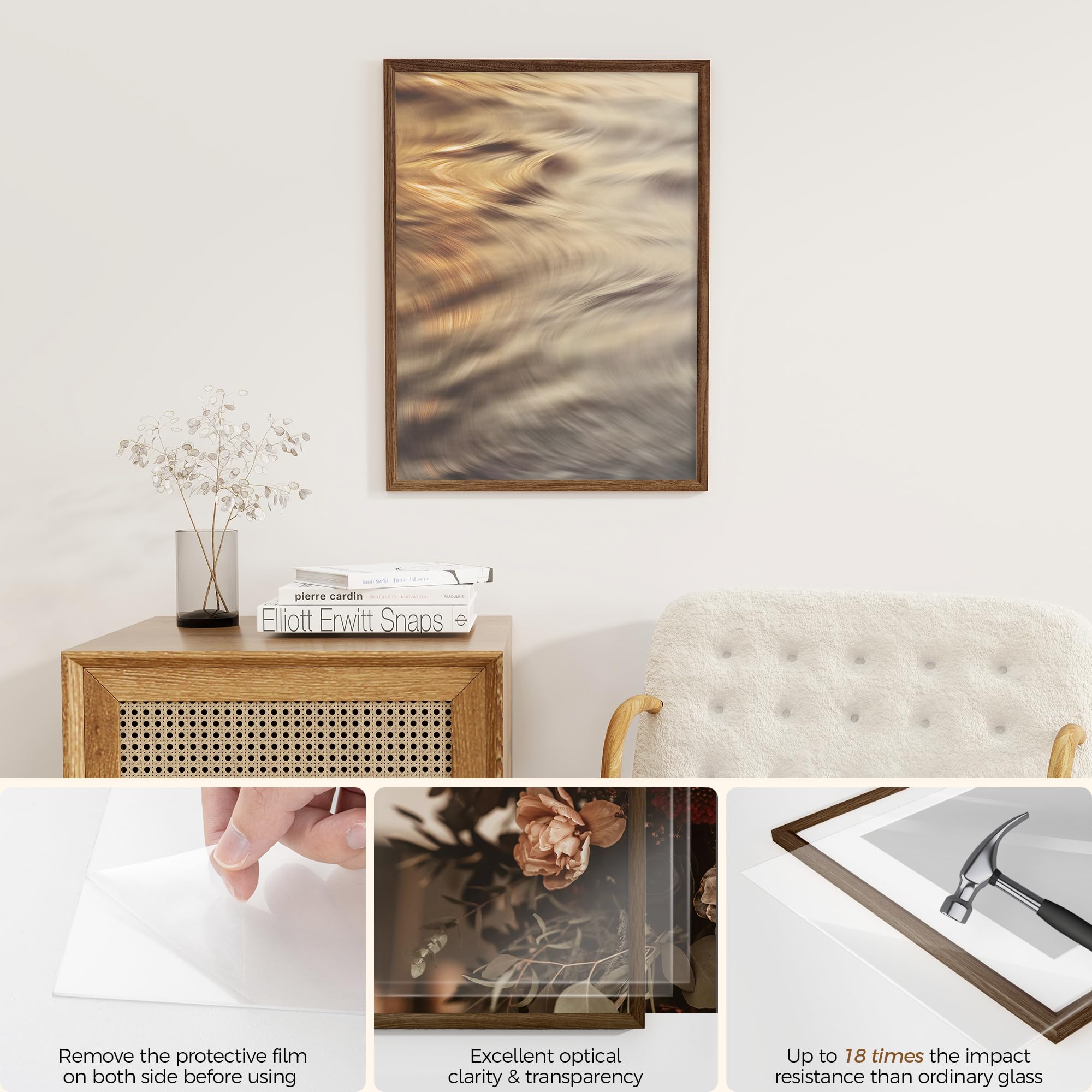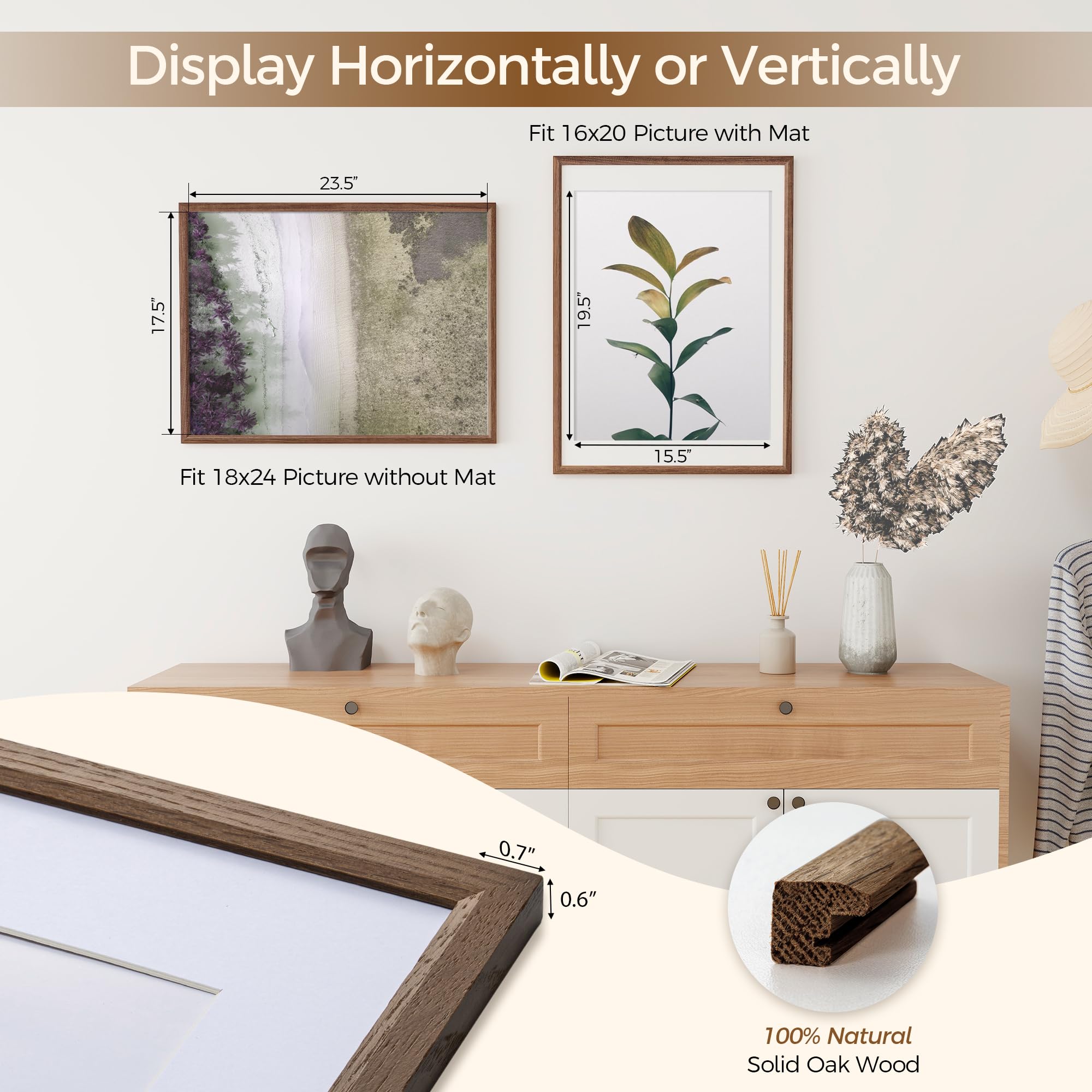 Fun Memories 18x24インチ ポスターフレーム、オーク無垢材ポスターフレーム、モダンフォトフレーム 18x24インチ 壁用 16x20マット、高解像度プレキシガラス&壁掛けフック付き(ウォールナット、2パック)