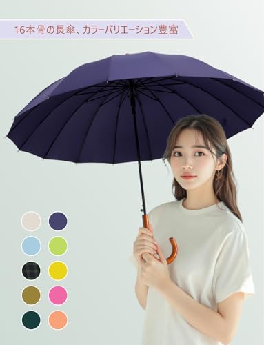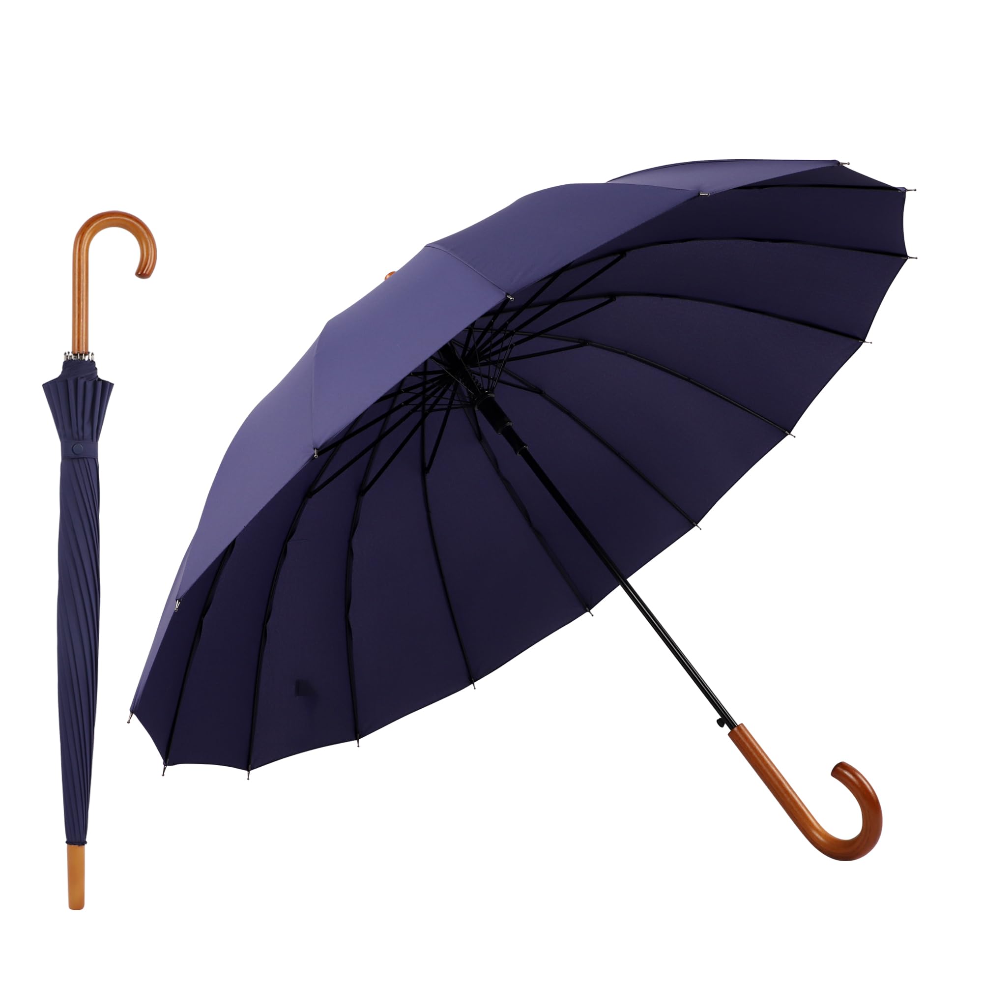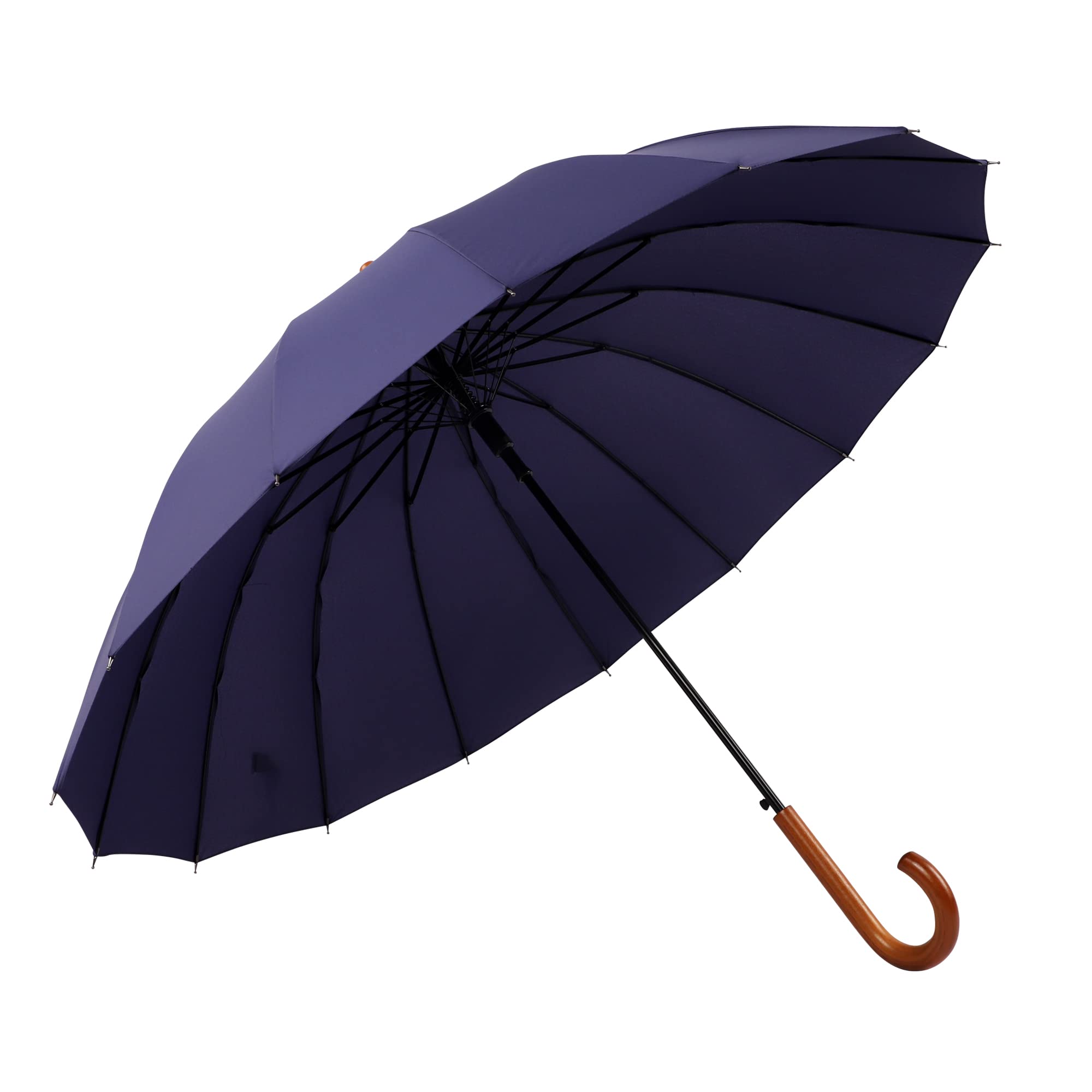 SoulRain 16本骨 48インチ スティック傘 自動オープン 無地 ファッショナブルでシンプル、アーククラシックウッドハンドル、防風、壊れないスティックレイン傘