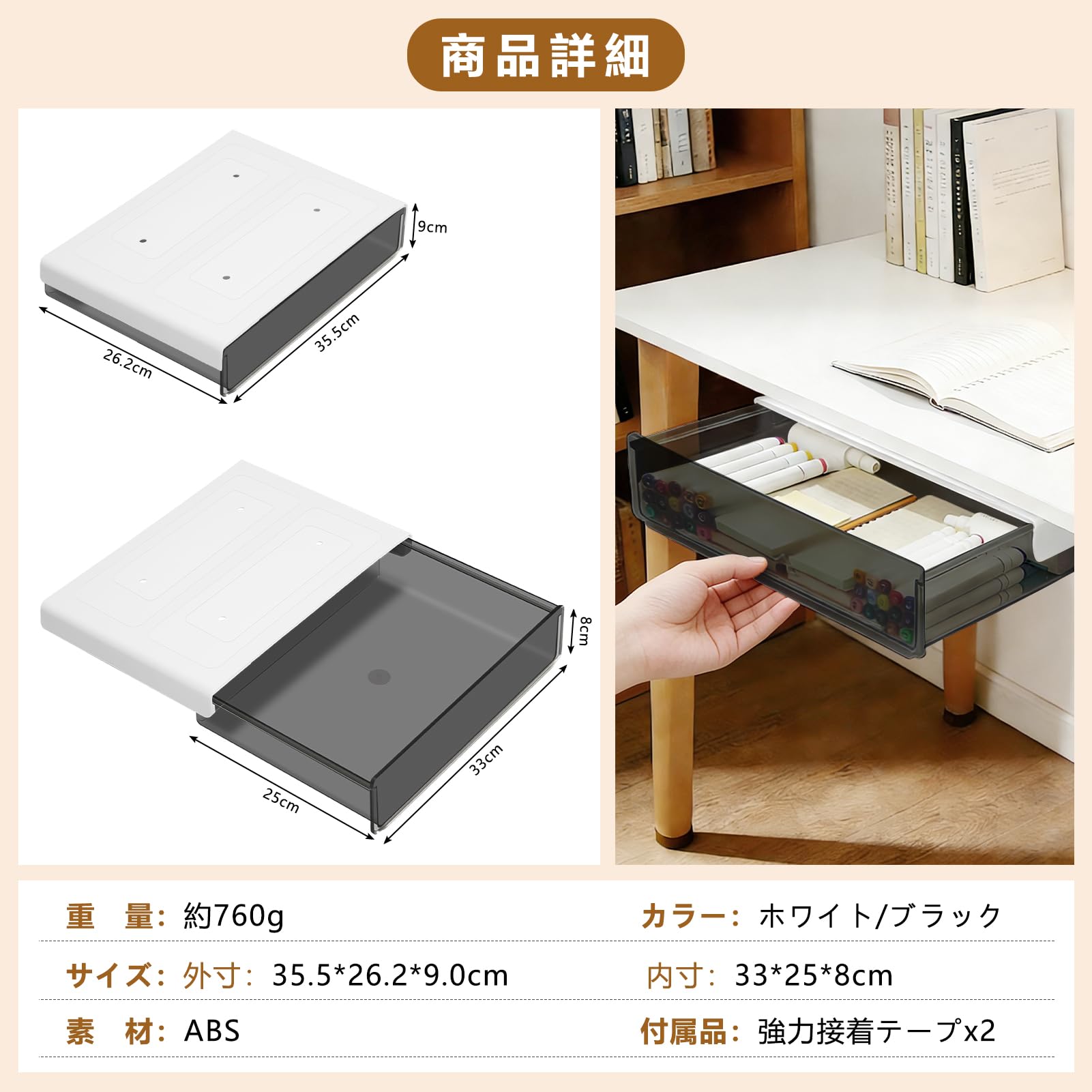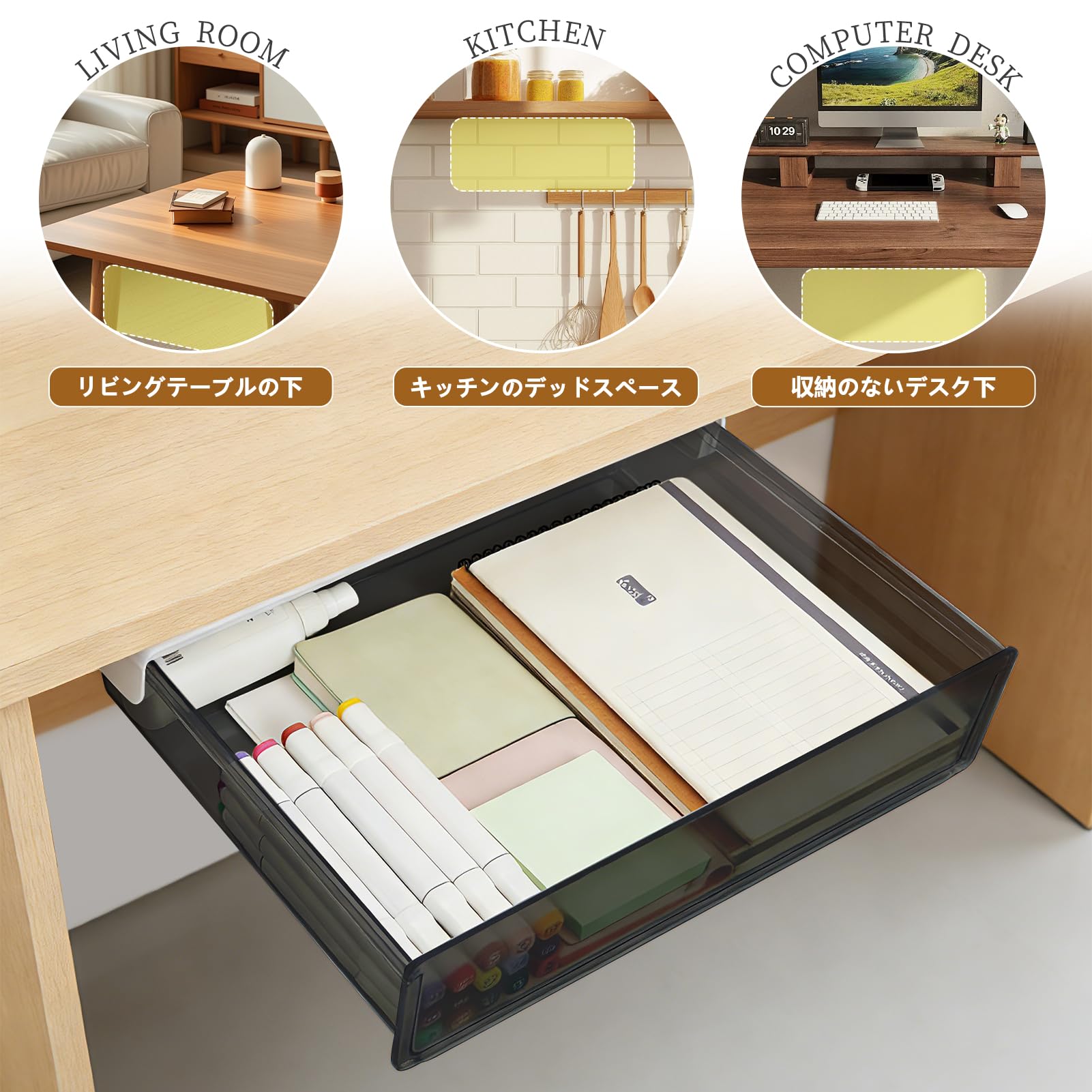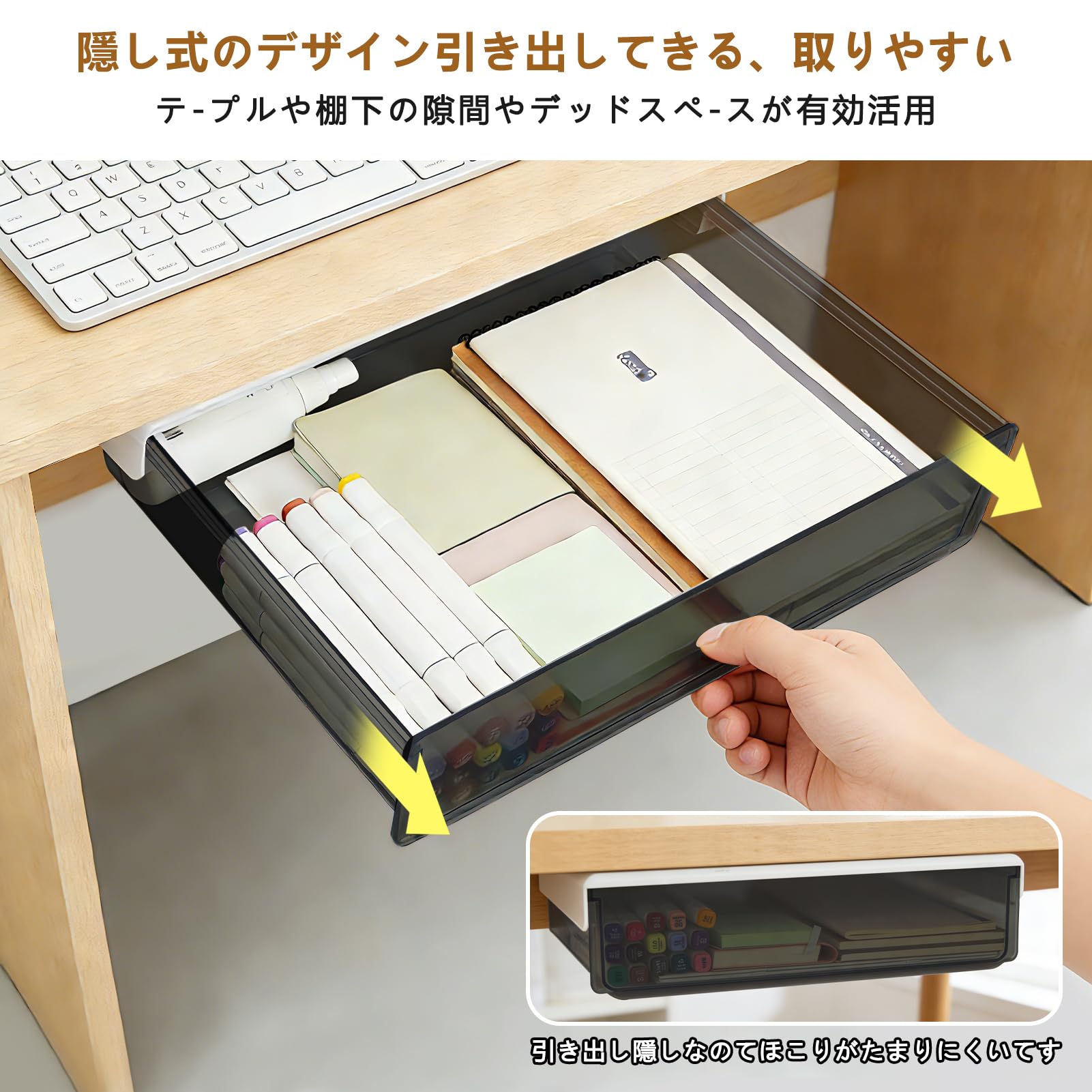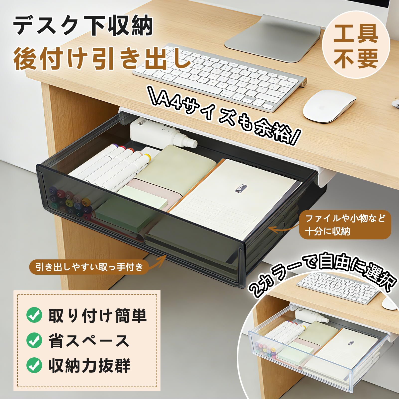 デスク下引き出し 後付け引き出し 穴あけ不要 テーブル下収納ラック テーブル収納 ラック 机下収納 机用引き出し スペース活用 文房具アクセサリー 事務用品 小物 収納 整理 便利 テーブルを壊さずに使用できます 取り付け簡単 (typeA)