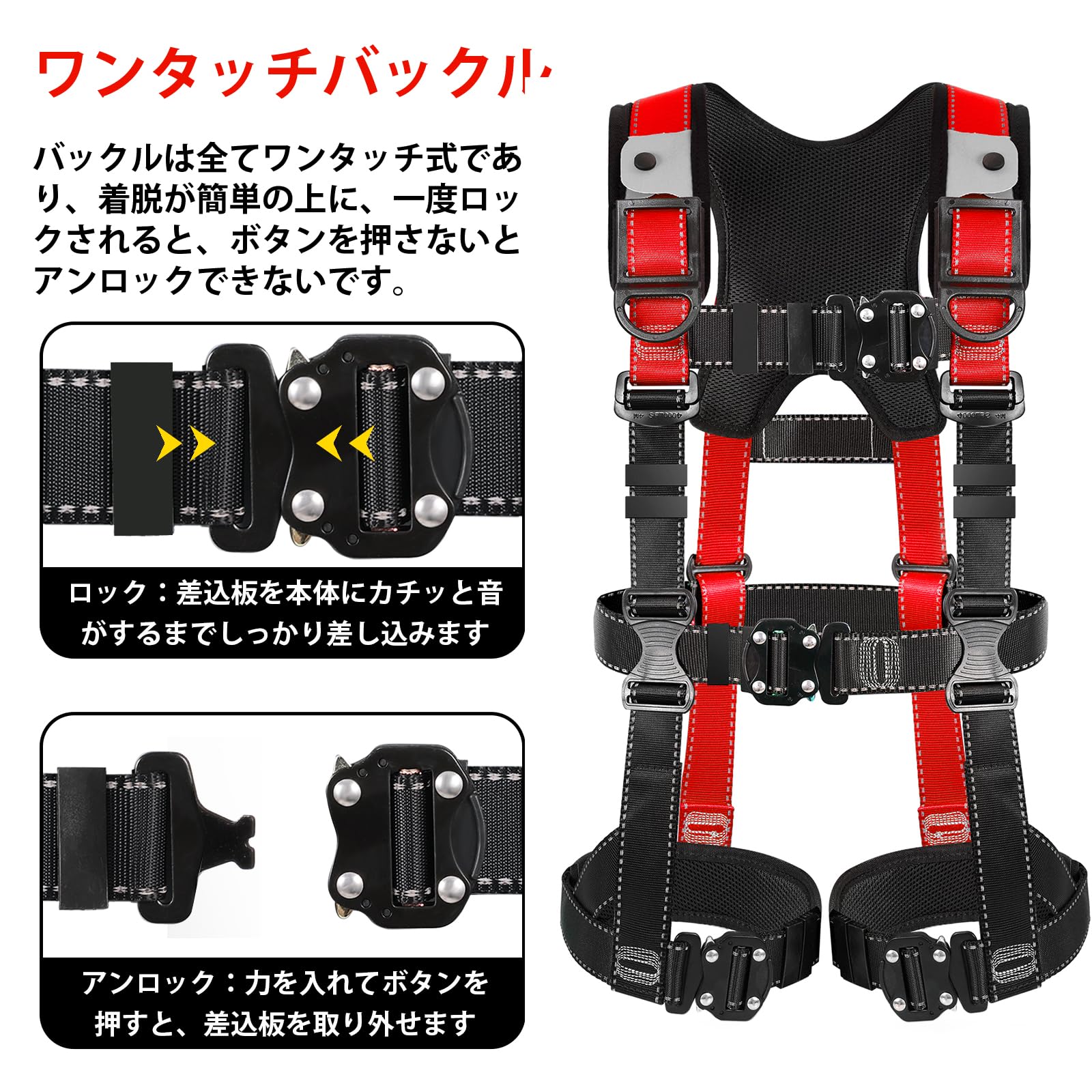 [UIANSP] フルハーネス安全帯 新規格 セット 墜落制止用器具 ランヤード一体型 落下防止全身保護キット、 全身反射 安全保護 デュアルハーネス脱着簡単 ハーネス安全帯 建設工学、高安全作業(合金钢)