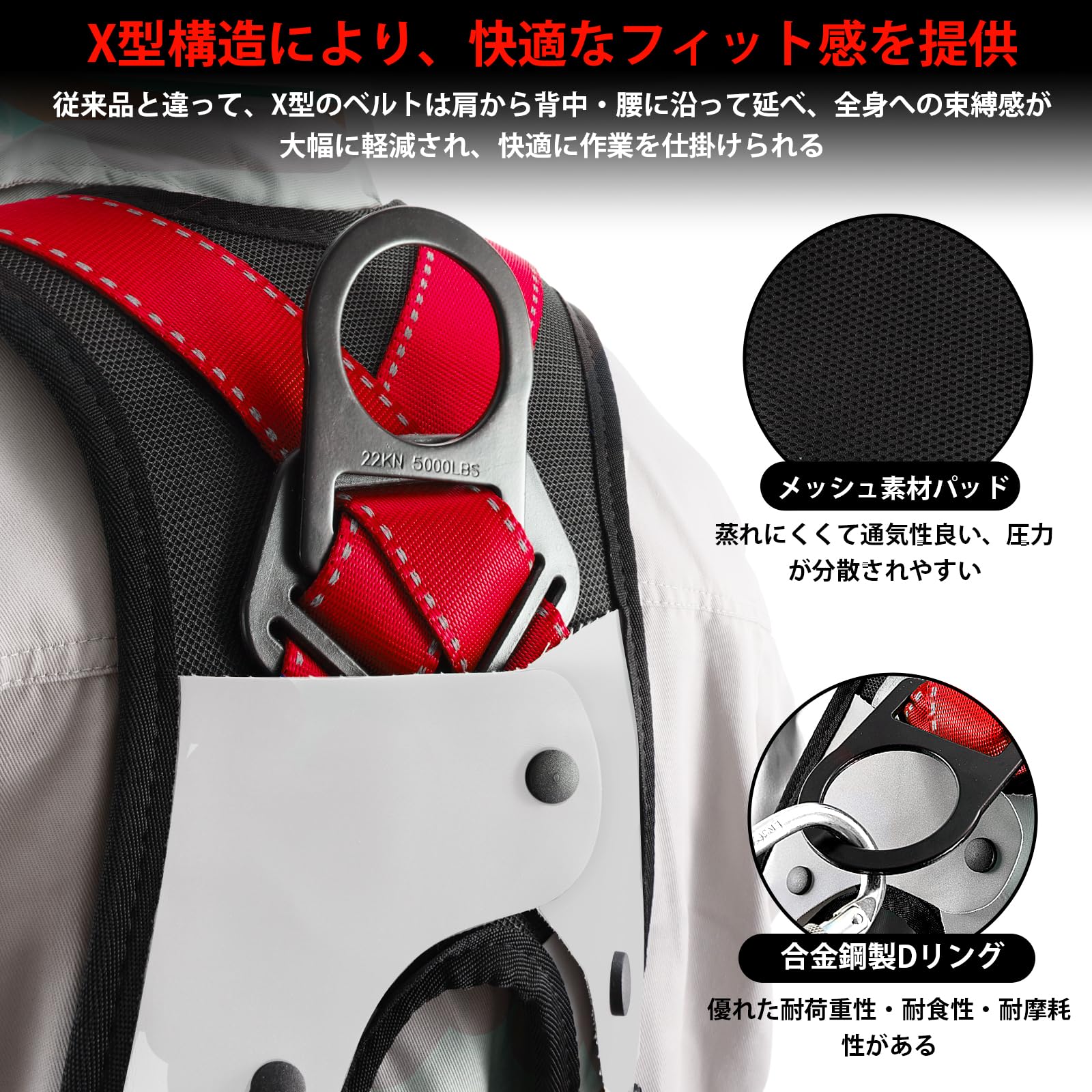 [lifning] 安全帯 フルハーネス ハーネス フルハーネス安全帯 新規格 セット 墜落制止用器具 サイズ調整可能