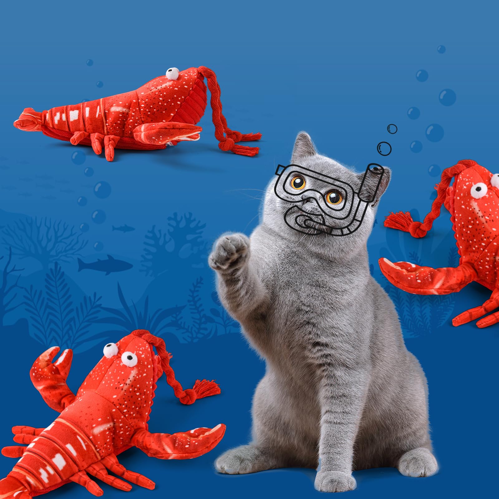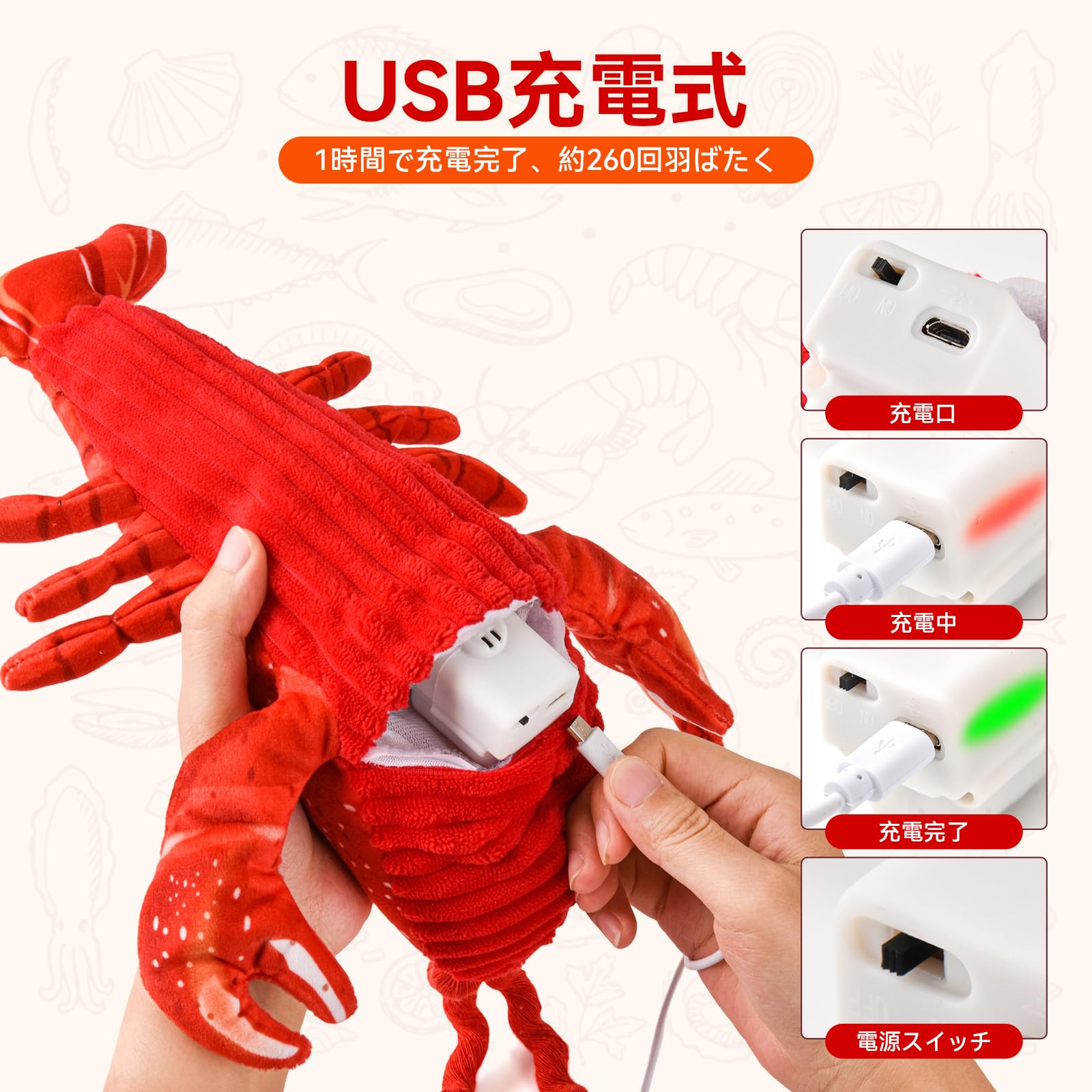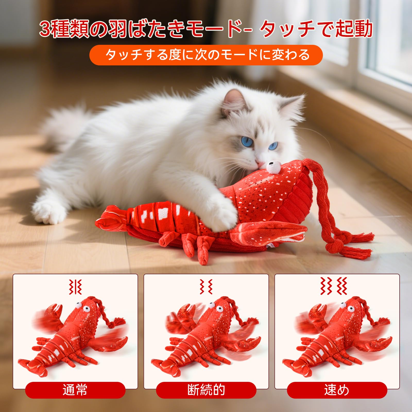 LIFLIX 猫 おもちゃ またたび玩具 電動 動くぬいぐるみ 猫じゃらし 音が出る 羽ばたく 充電式 ロブスター