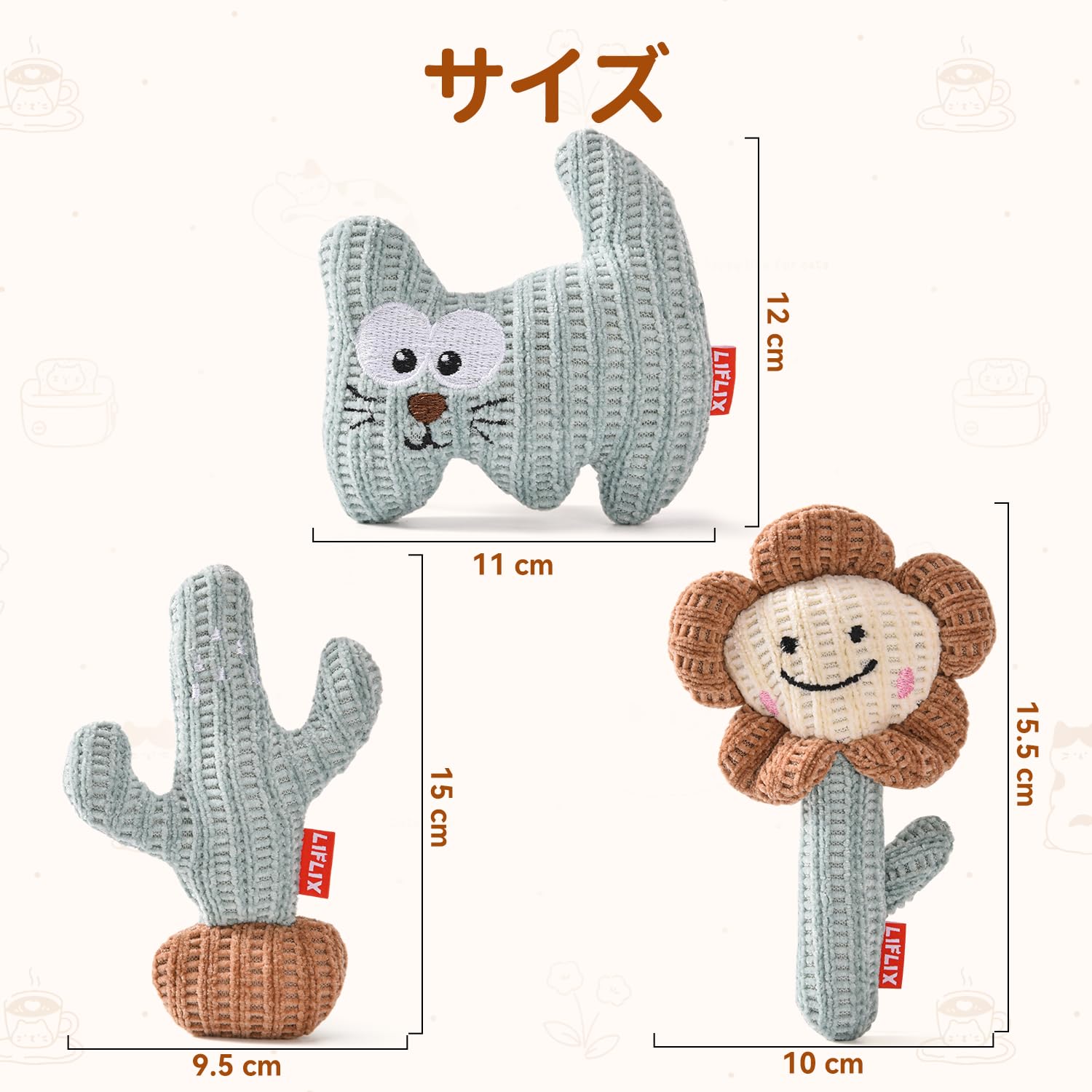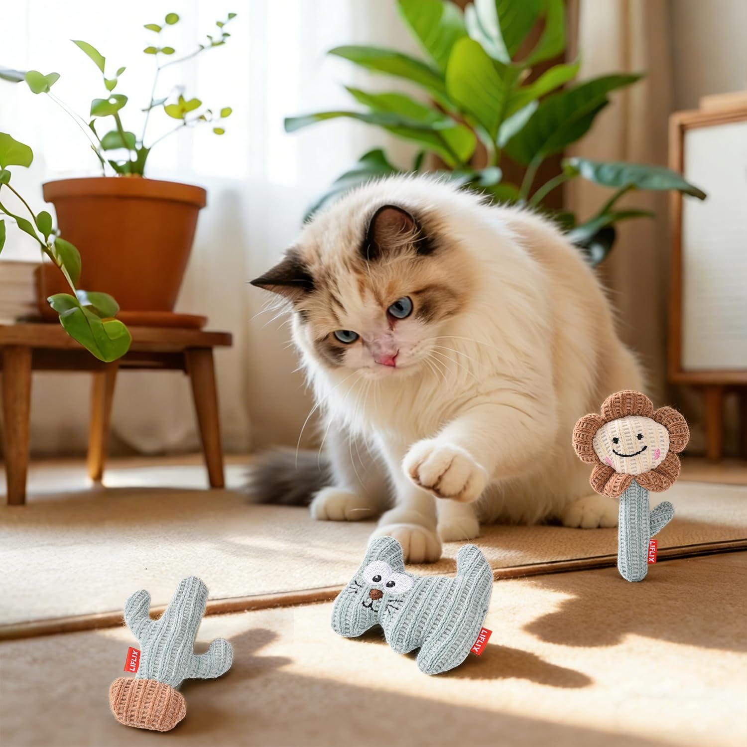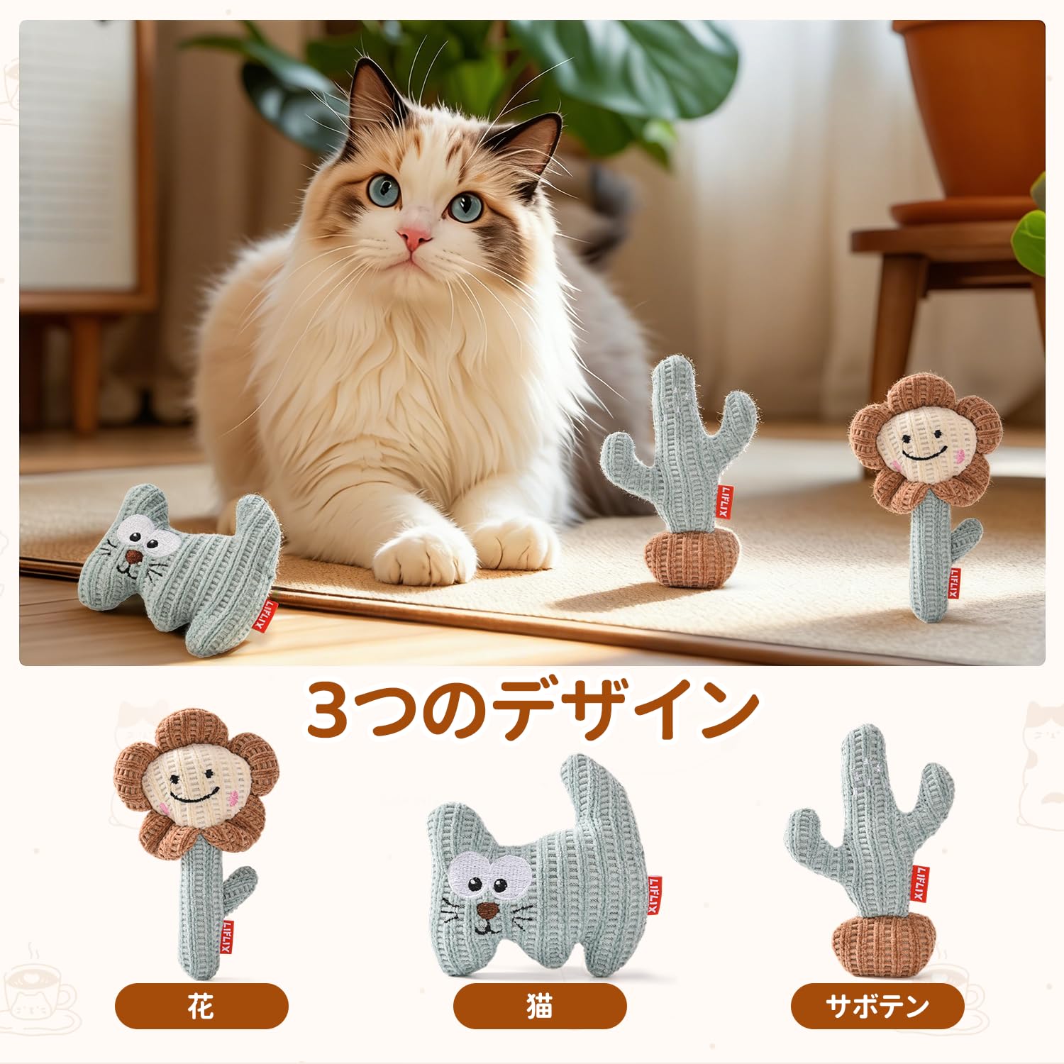 LIFLIX 猫 おもちゃ ひとり遊び 猫用ぬいぐるみ 3点セット