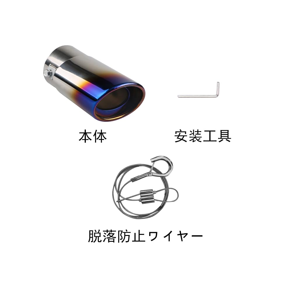 BYTAKUSI 車用 汎用 マフラー カッター オーバル 38mmΦ-53mmΦに対応 ステンレス製 大口径 排気管 軽自動車 乗用車 外装パーツ 脱落防止ワイヤー付き チタン焼き調 2個セット