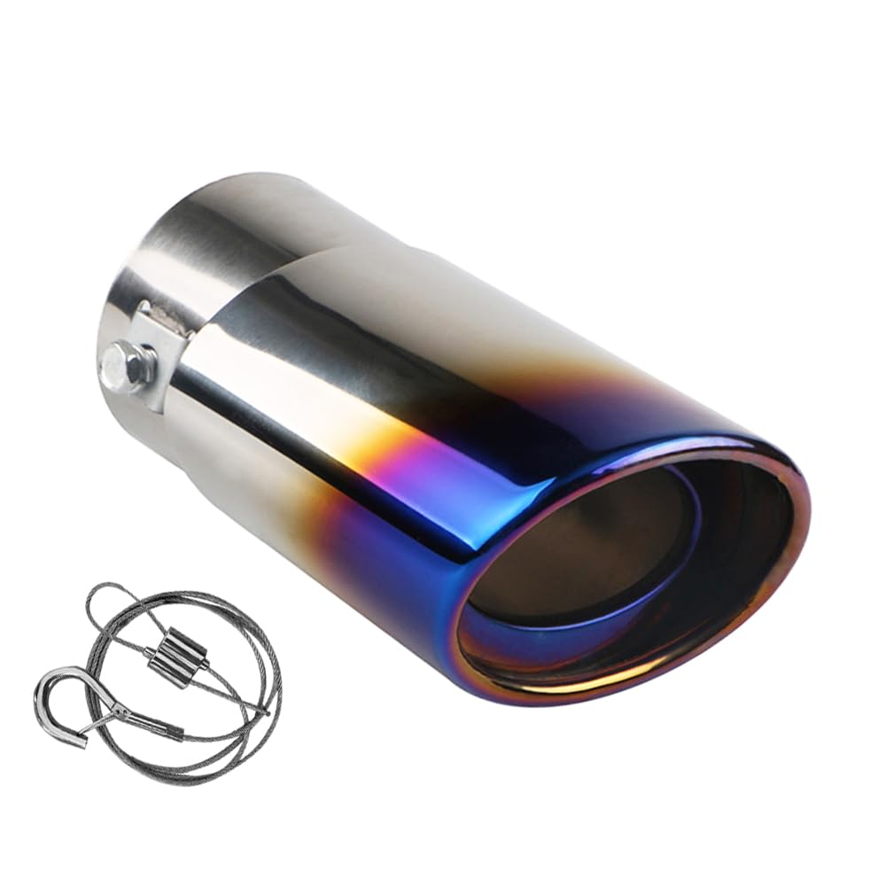 tpnidaii 車外用品 ストレート式 マフラーカッター 排気管 エキゾーストチップ マフラー パイプ テールパイプ径38-53mm適応 口径2.5インチ 斜めカット 外装 パーツ ドレスアップ ステンレス製 脱落防止ワイヤー付き (ブルー)