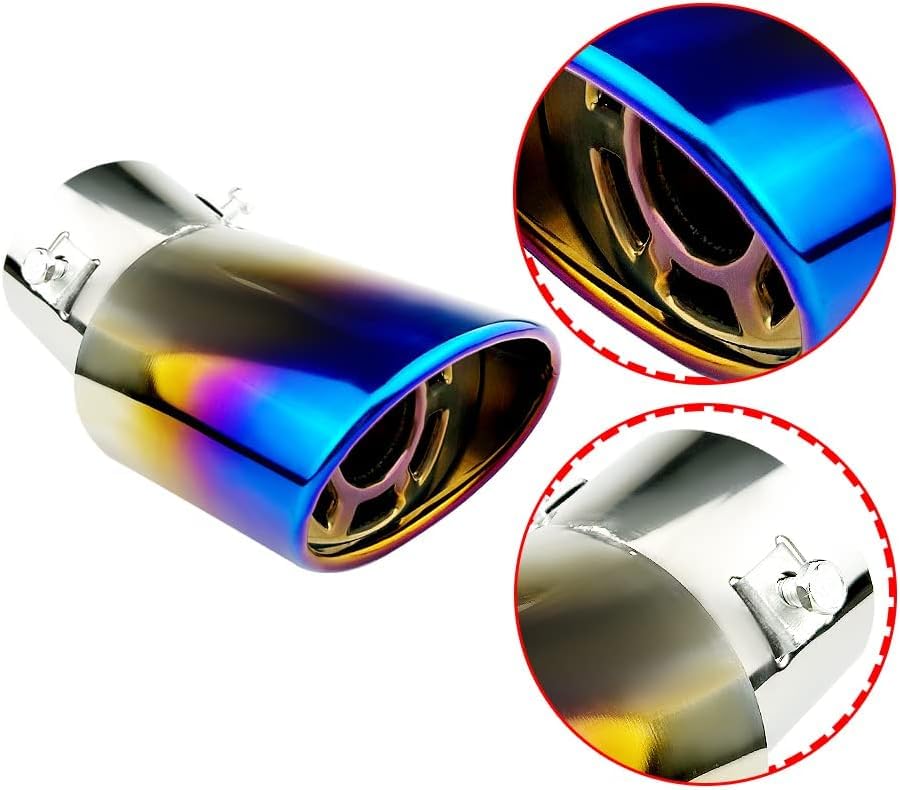 srasakan 車用 マフラーカッター 下向き式 口径2.5インチ エキゾーストチップ ステンレス製 斜めカット 排気管 マフラー パイプ テールパイプ 外装 パーツ カスタム 大型車 軽自動車 取付直径38-53mmに対応 ブルー
