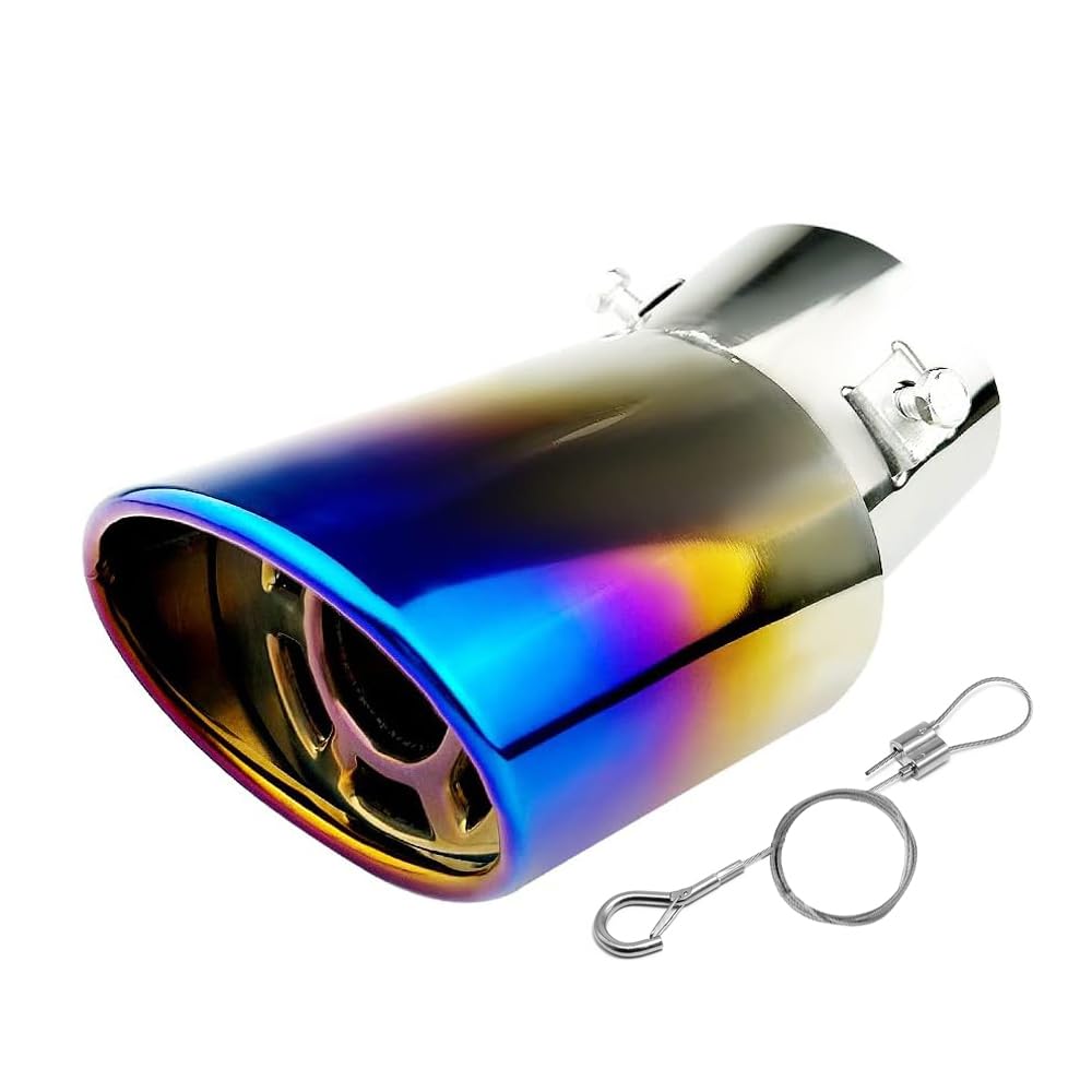 srasakan 車用 マフラーカッター 下向き式 マフラーチップ 口径2.5インチ 落下防止ワイヤー付き エキゾーストチップ 斜めカット ステンレス製 排気管 マフラー パイプ テールパイプ 外装 パーツ カスタム 大型車 軽自動車 取付直径38-53mmに対応 ブルー