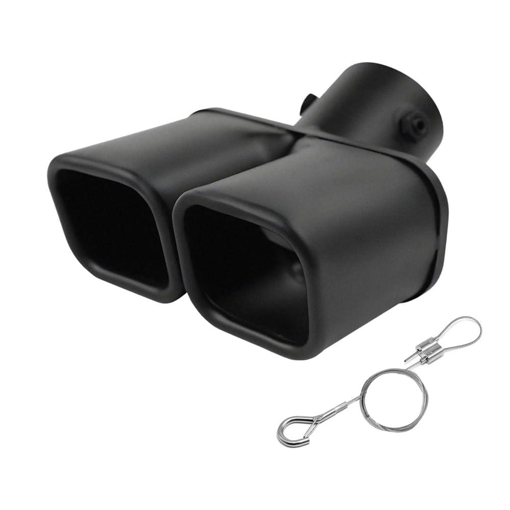 srasakan 車用 マフラーカッター 下向き式 2本出し スクエア 口径2.5インチ 落下防止ワイヤー付き エキゾーストチップ ステンレス製 排気管 マフラー パイプ テールパイプ 外装 パーツ カスタム 大型車 軽自動車 取付直径38-53mmに対応 ブラック