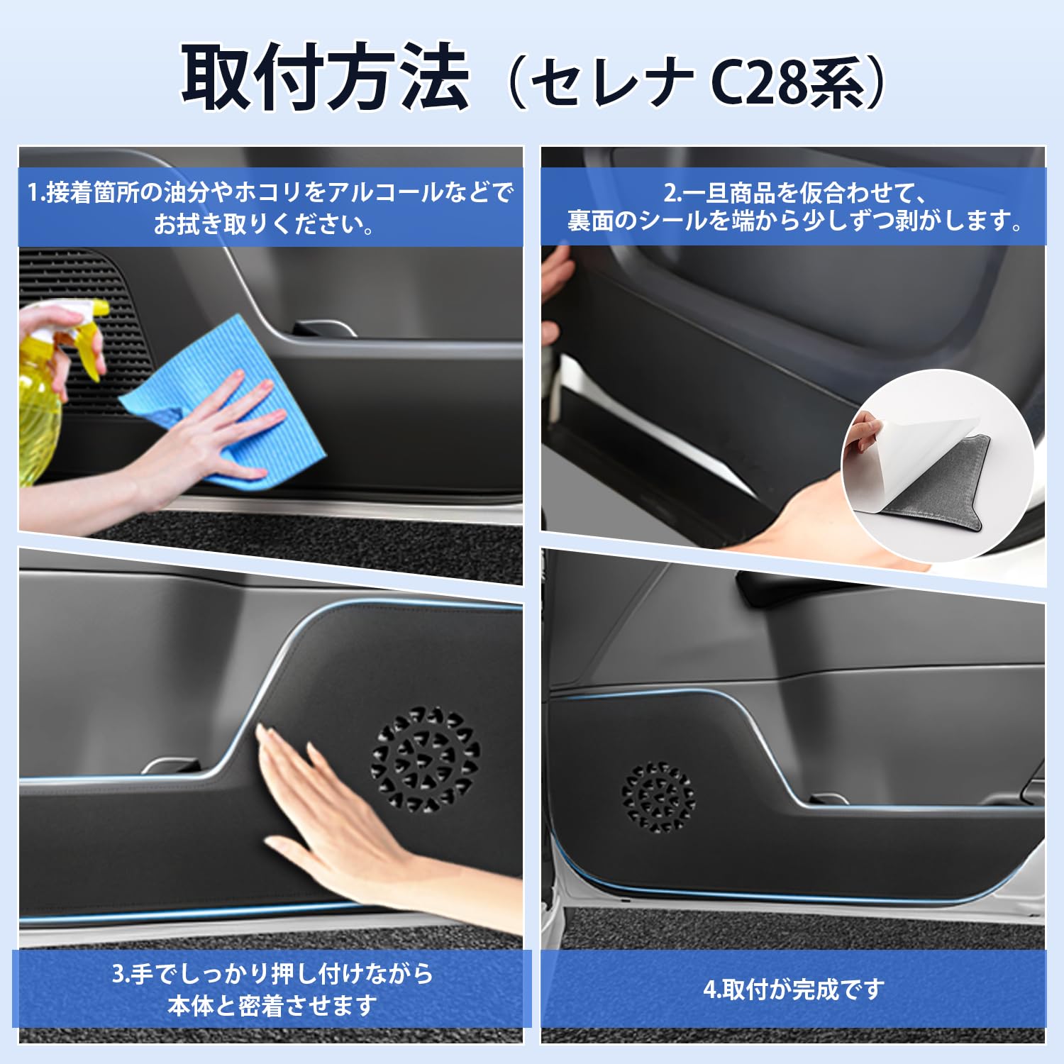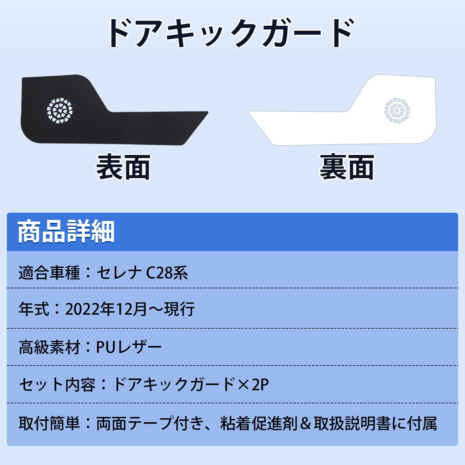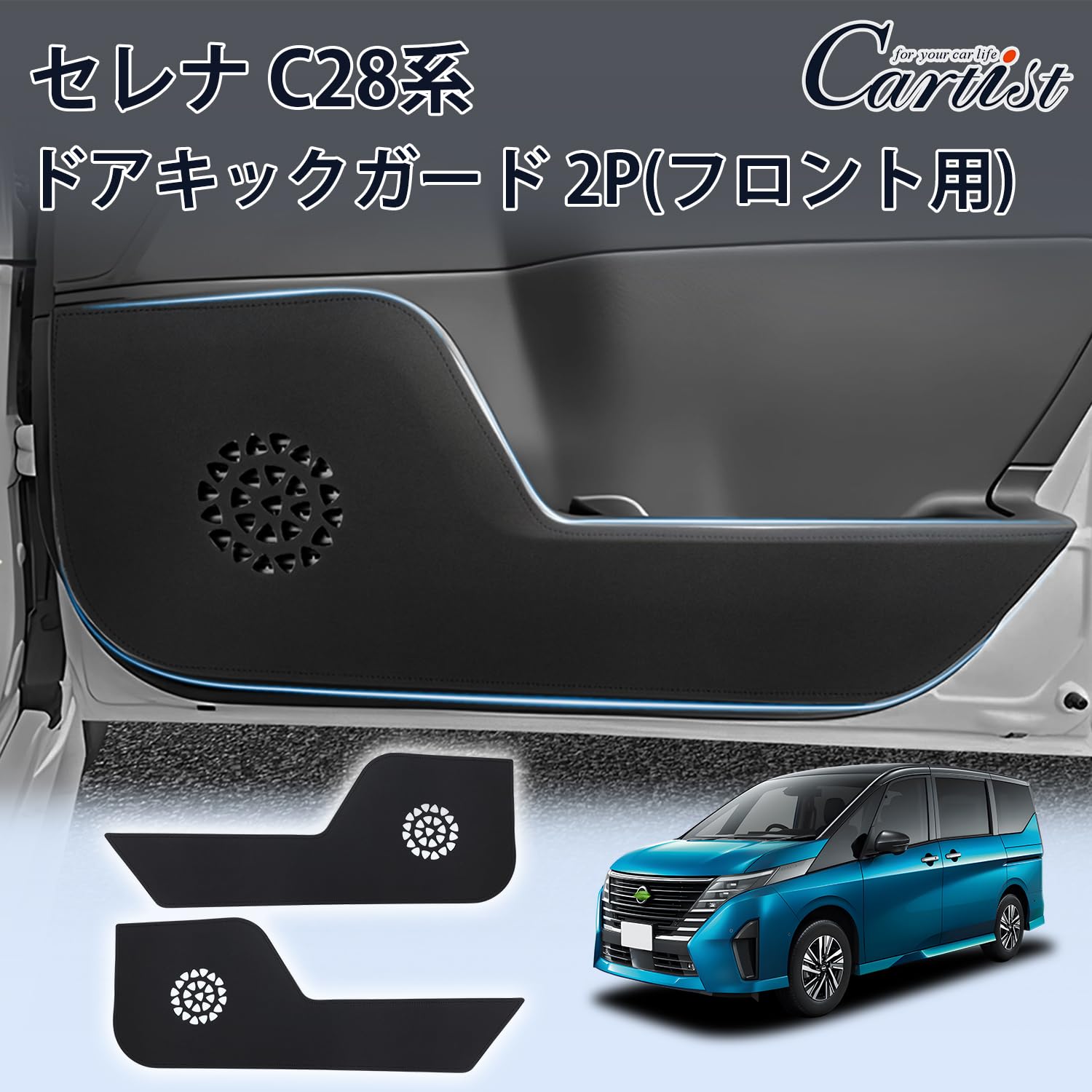 Cartist セレナ C28系 ドアキックガード ドアトリムガード ドアプロテクター ドア保護 SERENA e-POWER C28 FC28 NC28 FNC28 GC28 GFC28 SNC28 FNC28 2022年12月~現行 車種専用設計 ドアトリムカバー PUレザー 汚れ防止 キズ防止 蹴り防止 フロント用 内装ハーツ カスタムハーツ セレナアクセサリー 2PCS ブラック