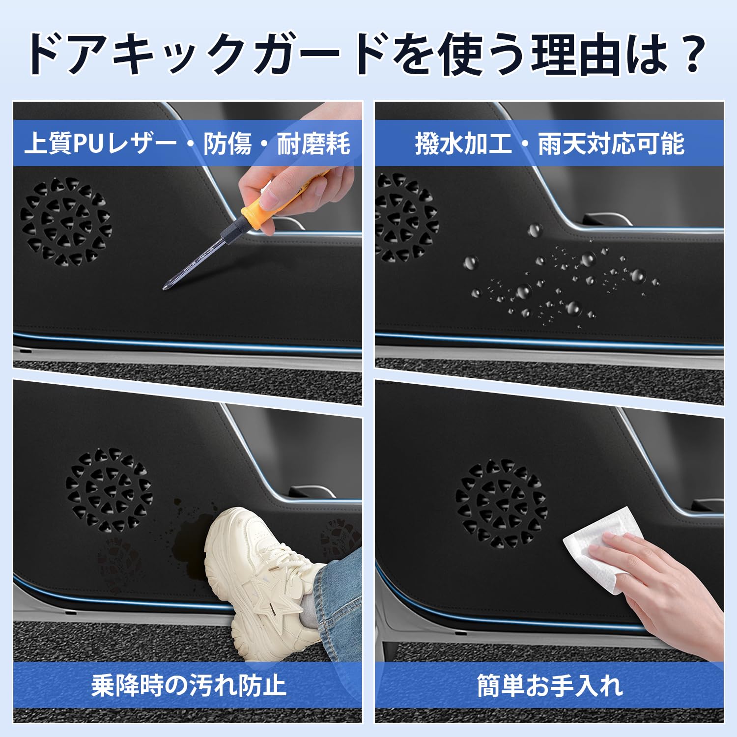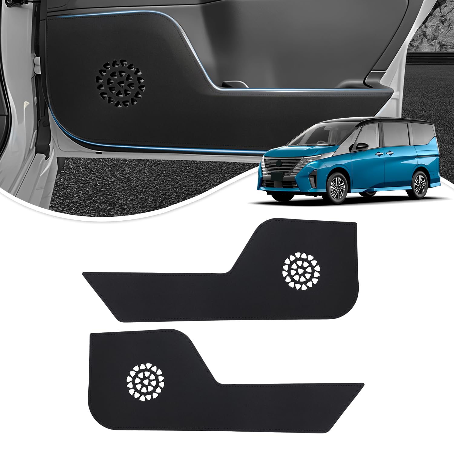 Cartist ニッサン セレナ C28型 新型 6代目 ドアキックガード ドアトリムガード ドアプロテクター ドア保護 SERENA R4.12~車種専用設計 ドアトリムカバー PUレザー 汚れ防止 キズ防止 蹴り防止 フロント用 内装パーツ 2PCSセット(ブラック)