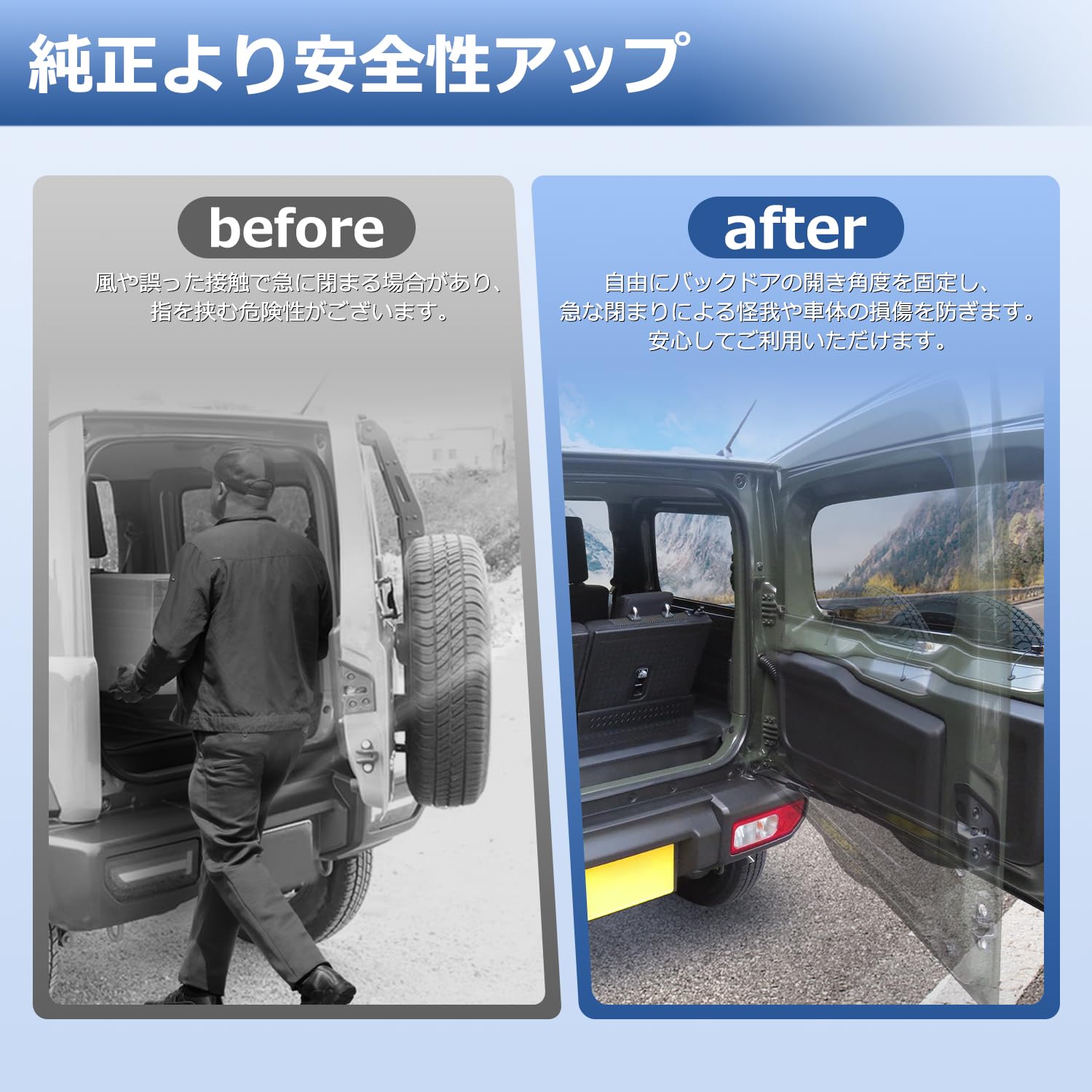 Virauto スズキ ジムニー JB64W バックドアダンパー JB74W 自由にドア開閉 バックドアバランサー SUZUKI Jimny JB64W JB74W 2018年7月~現行 リアゲートダンパー 車検対応 純正交換 ツーストップドアオープナー リアゲート リアハッチ 取り付け簡単 穴あけ不要 ドアパンチ対策 (スズキ ジムニー JB64W JB74W, バックドアダンパー)